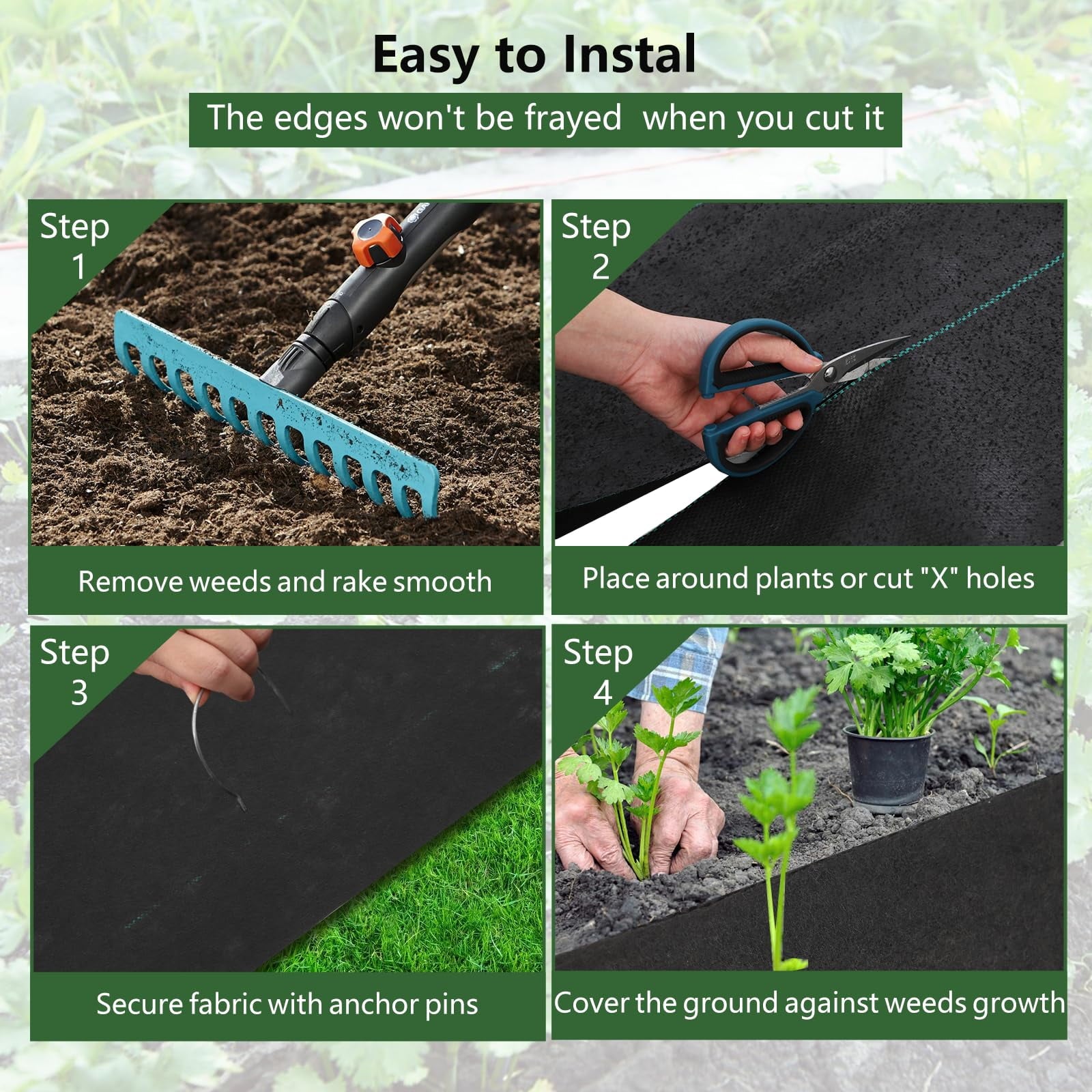 - Wide Application: Our durable garden weed cloth will keep annoying weeds away from your garden. The weed mat fabric is ideal for garden, agriculture, industrial uses, such as a greenhouse, vegetable patch, flower bed, artificial grass, sidewalk, gravel, driveway, stones, etc.