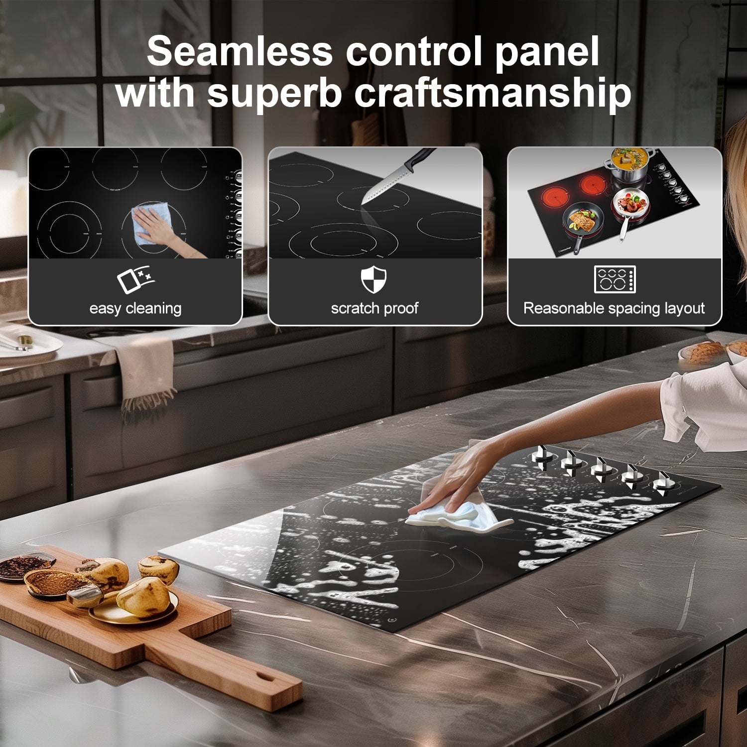 3. Easy Maintenance: This 5 burners electric stove features vitro ceramic glass surface and resistant knobs for effortless cleaning and maintenance.
