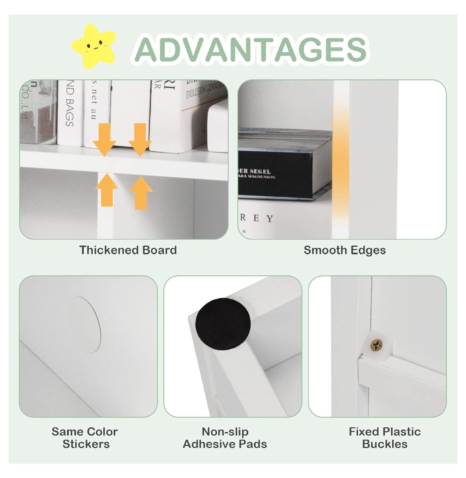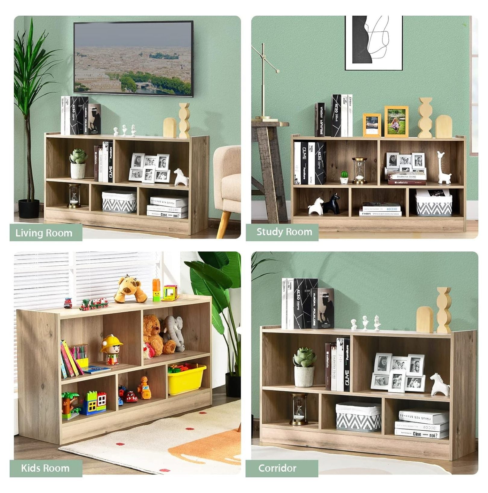 - [Well-Considered Design for Safety]: Our library bookcase features plastic buckles on the back panel for added sturdiness. The horizontal cabinet has rounded edges and corners to prevent wood chip scratches. Non-slip foot pads provide stability and a 4″ base prevents stains.