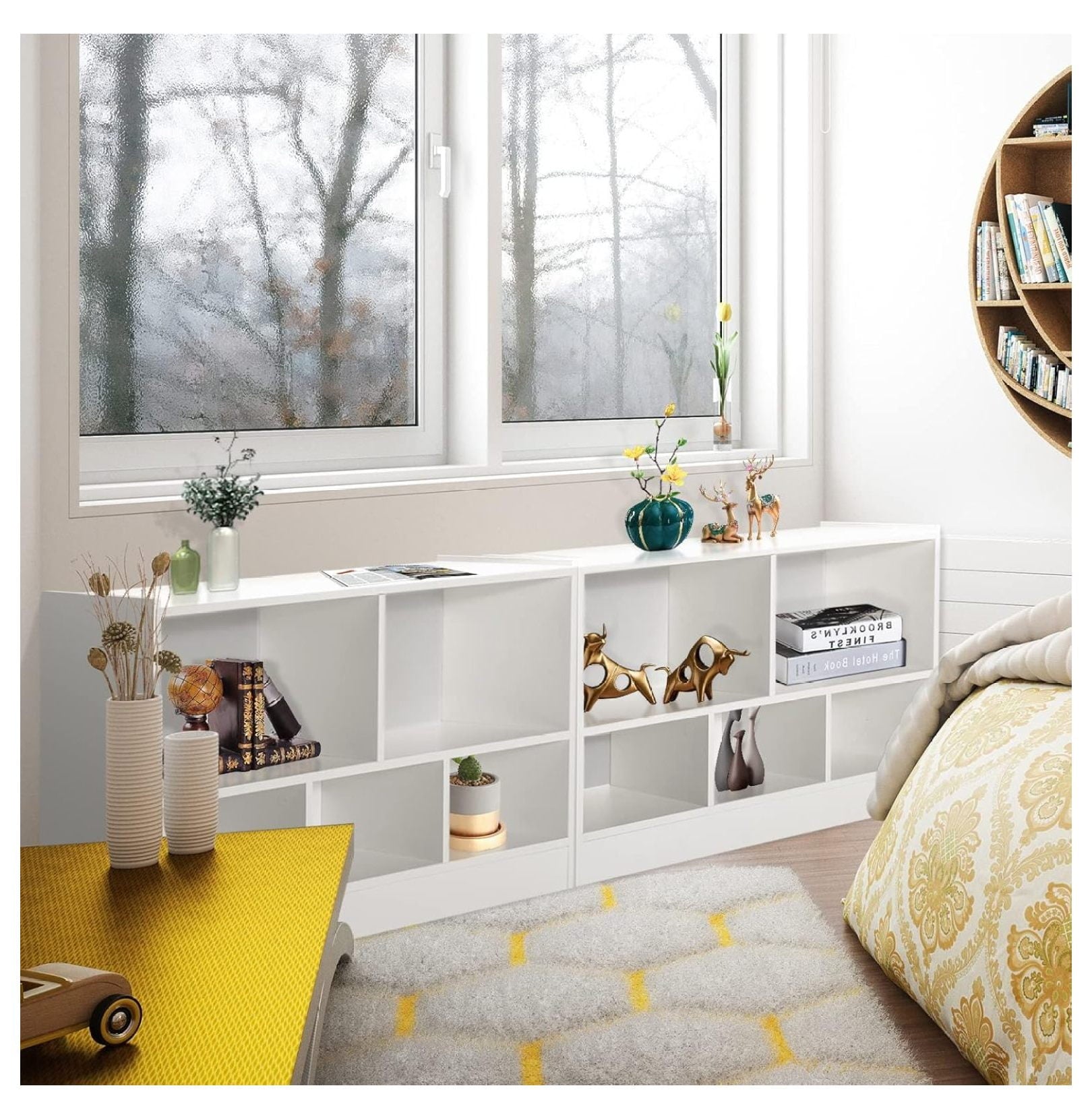 - [Flexible Horizontal Book Shelf]: Whether used individually or paired for a custom storage solution, this cube bookcase’s versatile design meets a variety of needs, serving as a display unit, filing cabinet, toy organizer, or general storage facility. Perfect for bedrooms, living rooms, offices, and more!