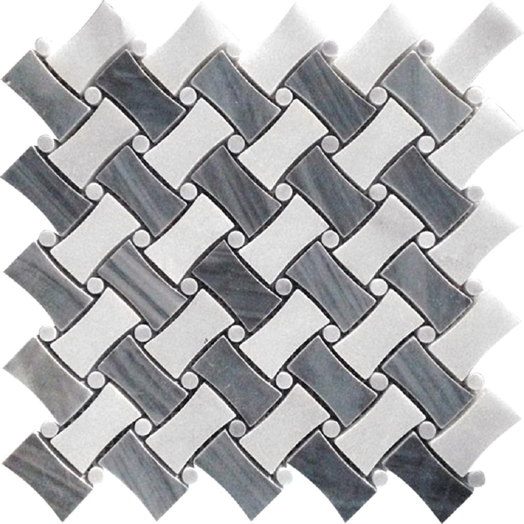 5 pack White and Gray 11-in x 11-in Polished Natural Stone Marble Basketweave Floor and Wall Tile (4.20 sq. ft./Case)