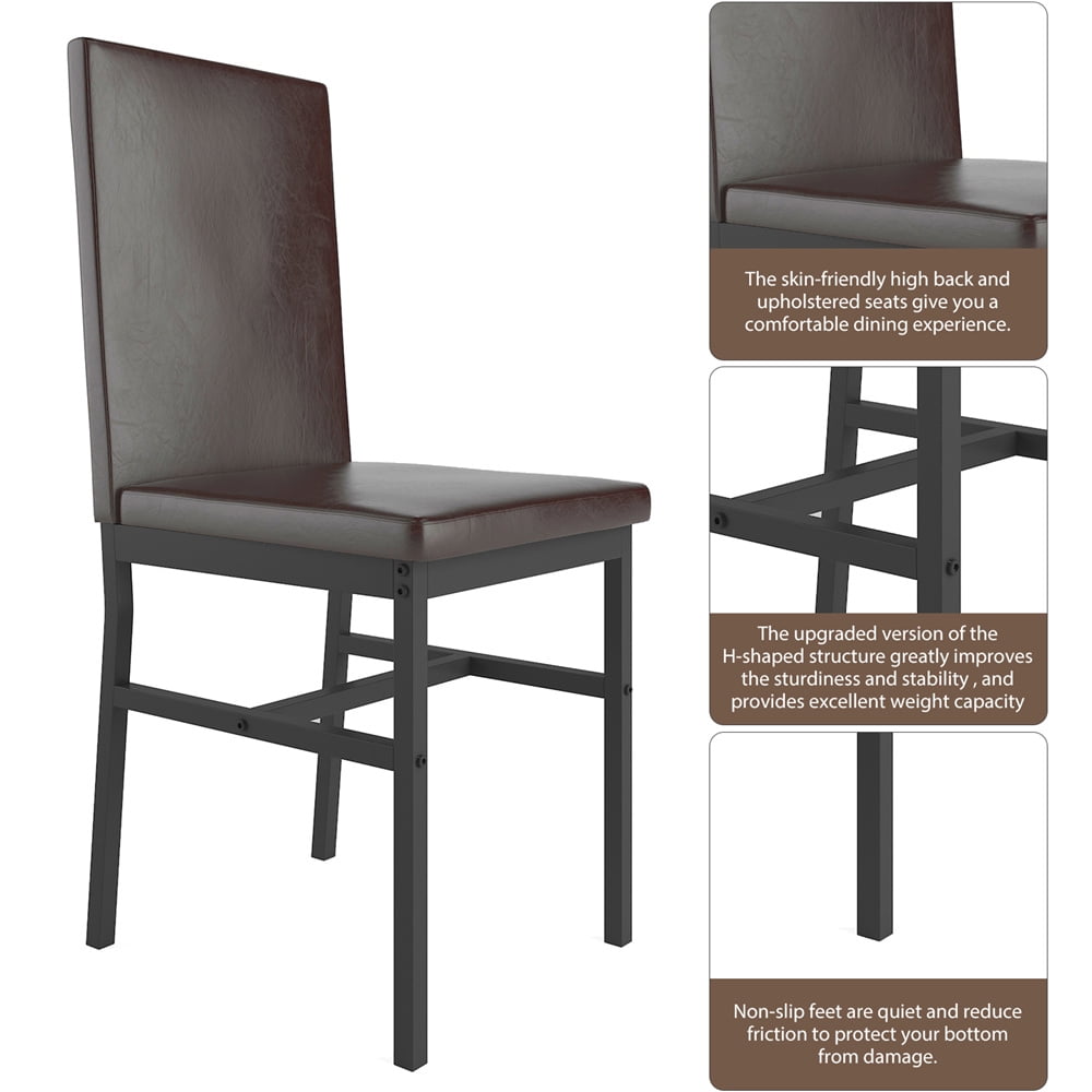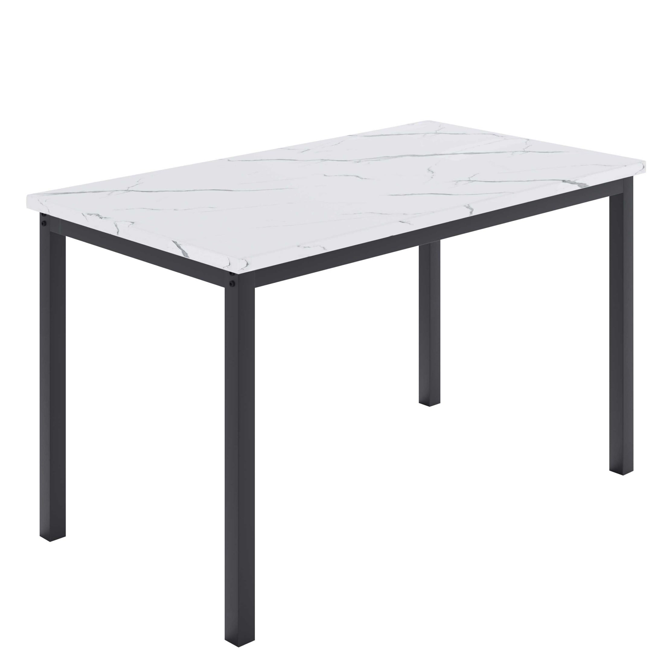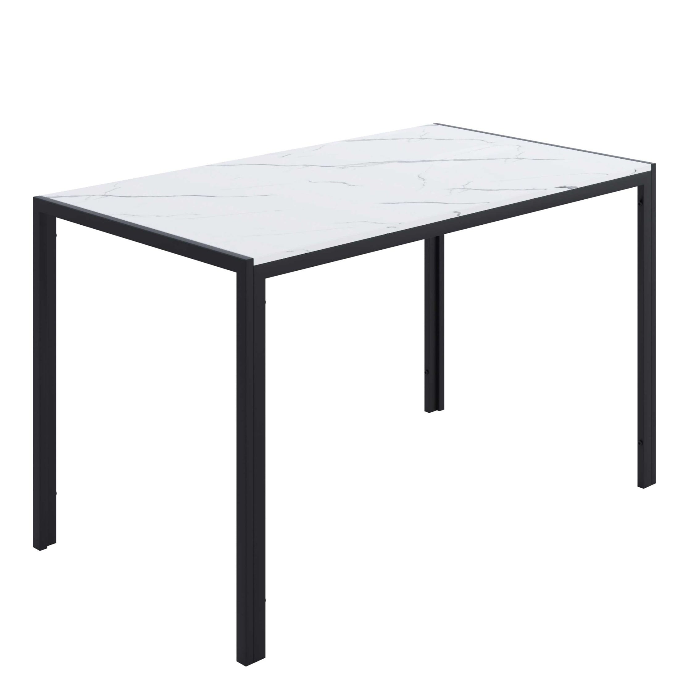 UHOMEPRO’s elegant kitchen dining table set is ideal for dining rooms. The 5-piece faux marble dining room table set is constructed with a heavy-duty steel frame and has been powder-coated to increase its lifespan. It is easy to clean with a damp cloth. The high backrest and slightly curved legs of the dining chairs conform to ergonomic principles, and the middle crossbar is added to improve overall stability and comfort. The rectangular dining table design is more suitable for most home layouts, and the stools can be perfectly hidden under the table when not in use. This dining room table set is an ideal choice for small spaces, apartments, dinettes, kitchens, dining rooms, and restaurants.