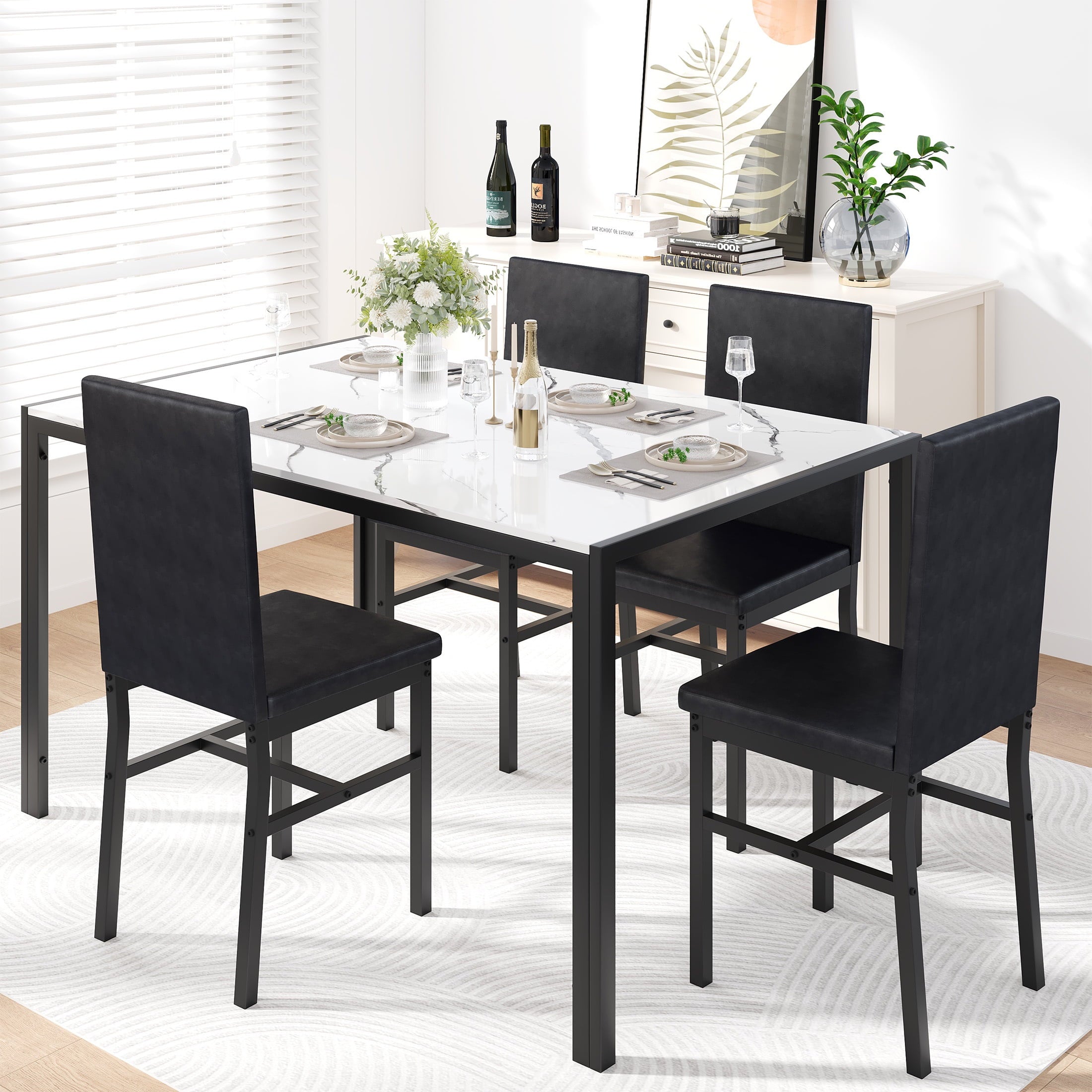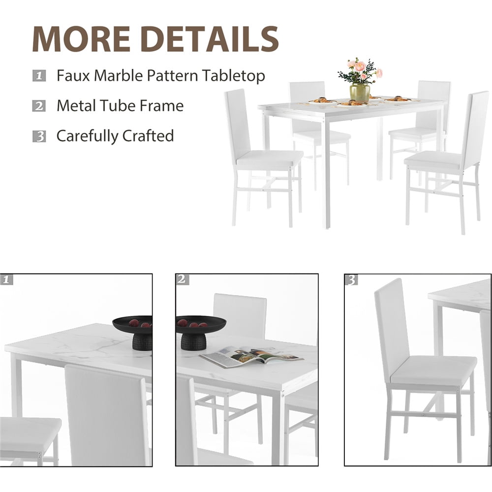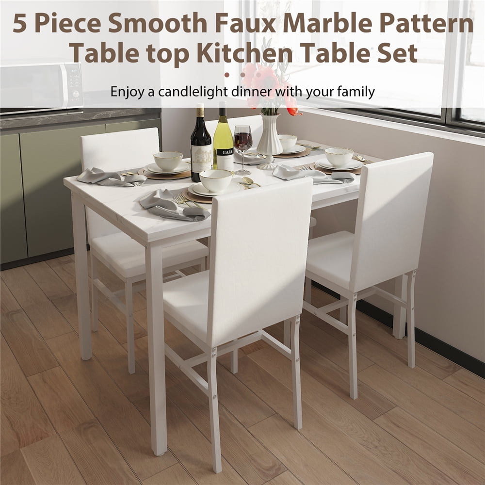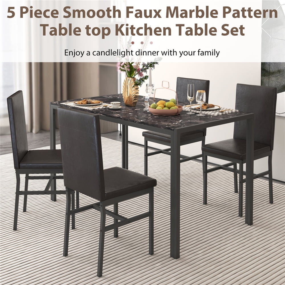 - Product Type: 5-Peice Faux Marble Dining Table Set