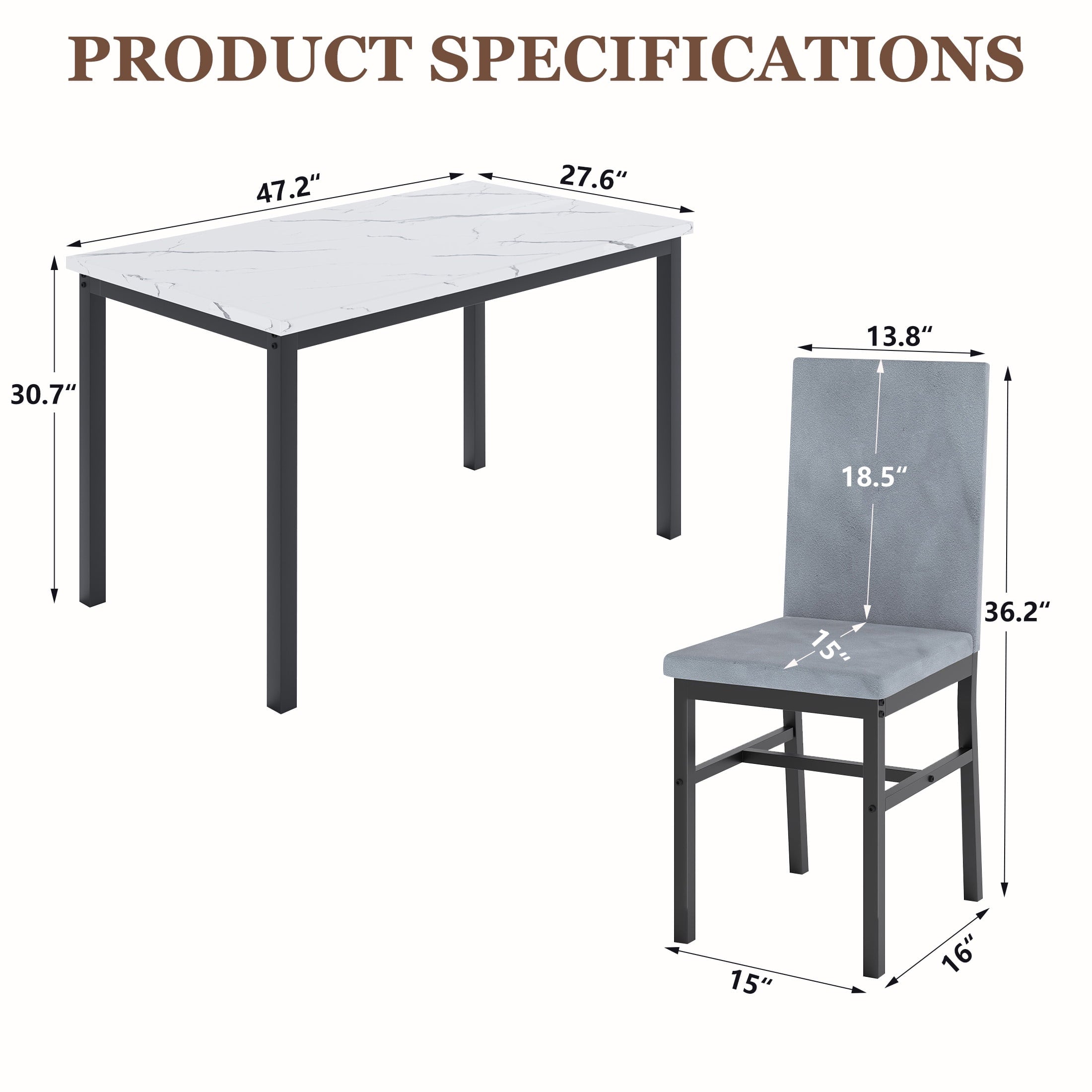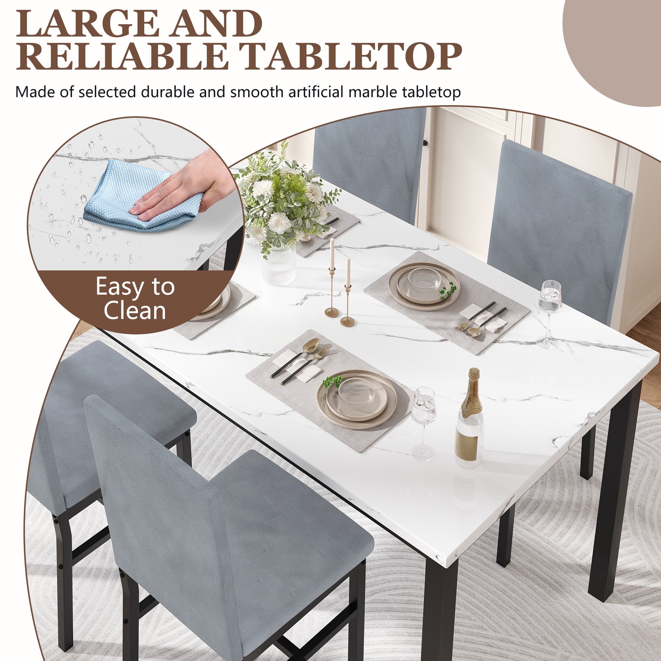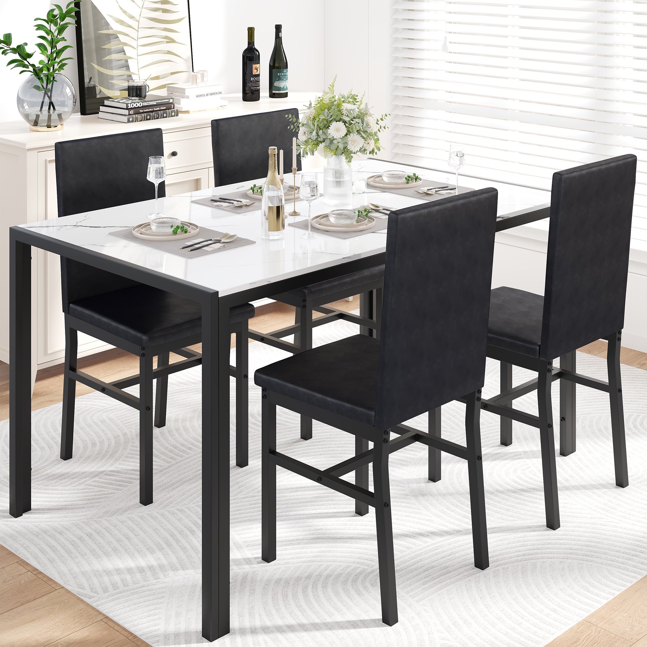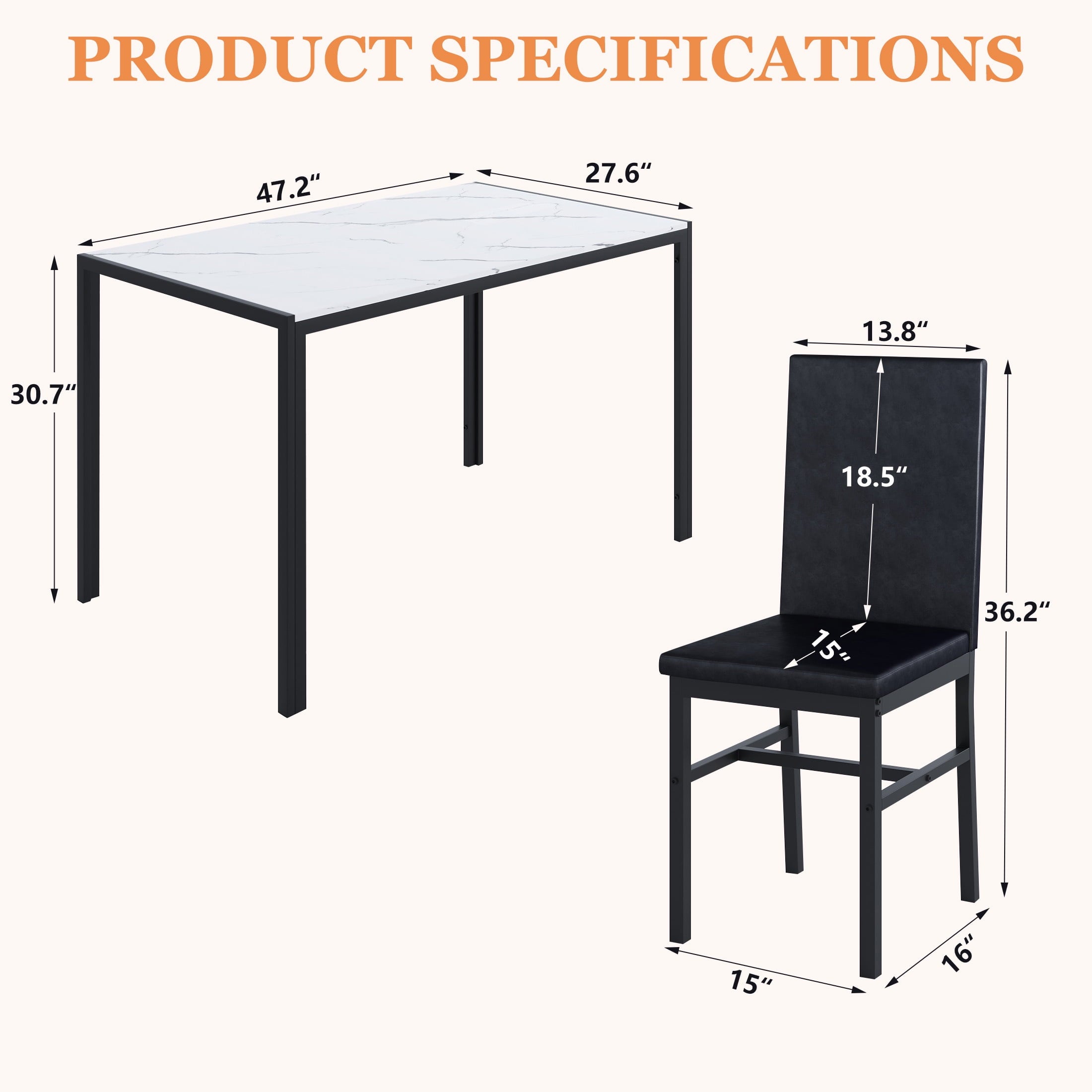 - Product Type: 5-Peice Faux Marble Dining Table Set