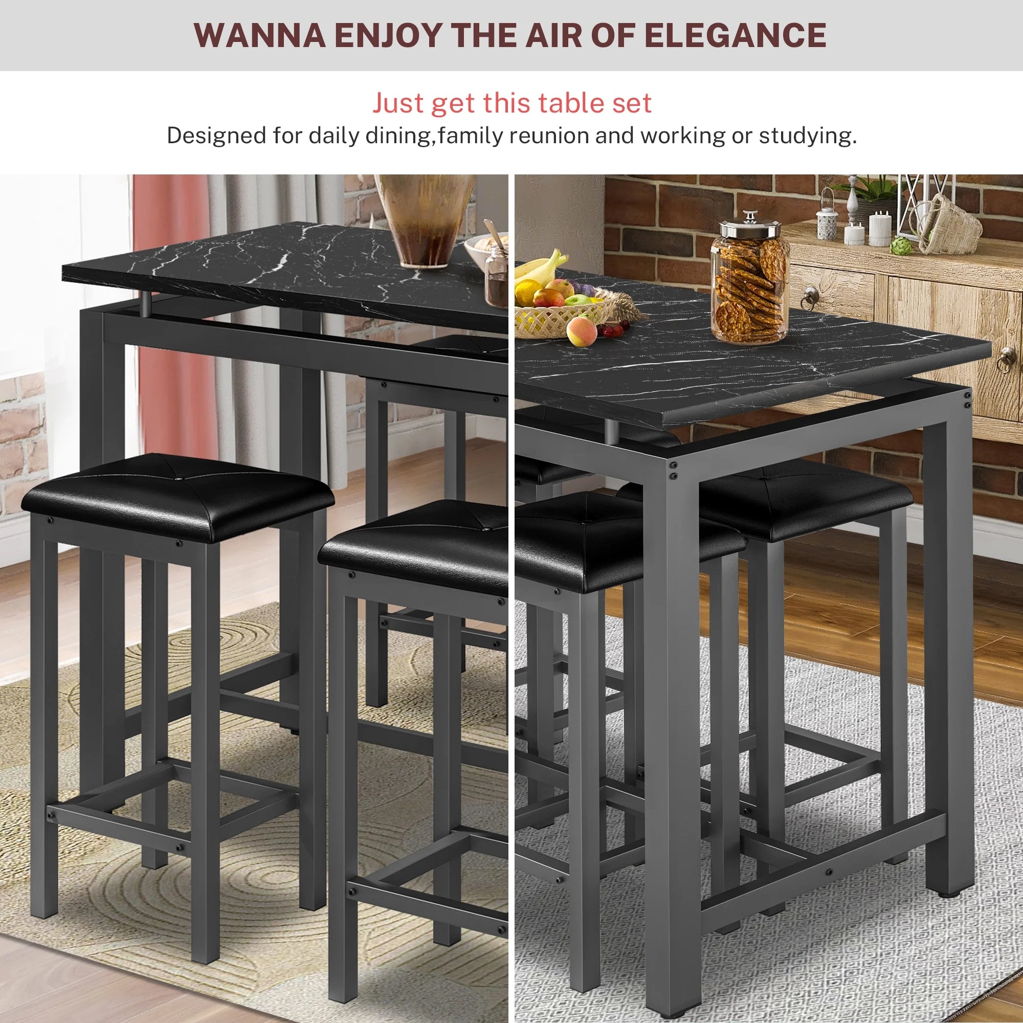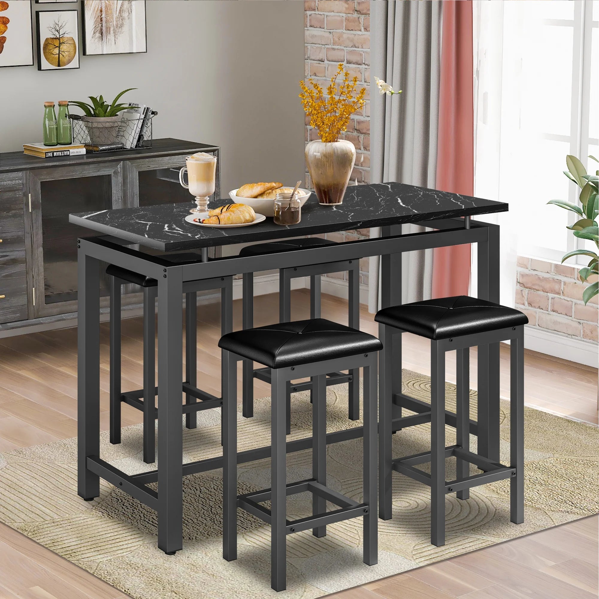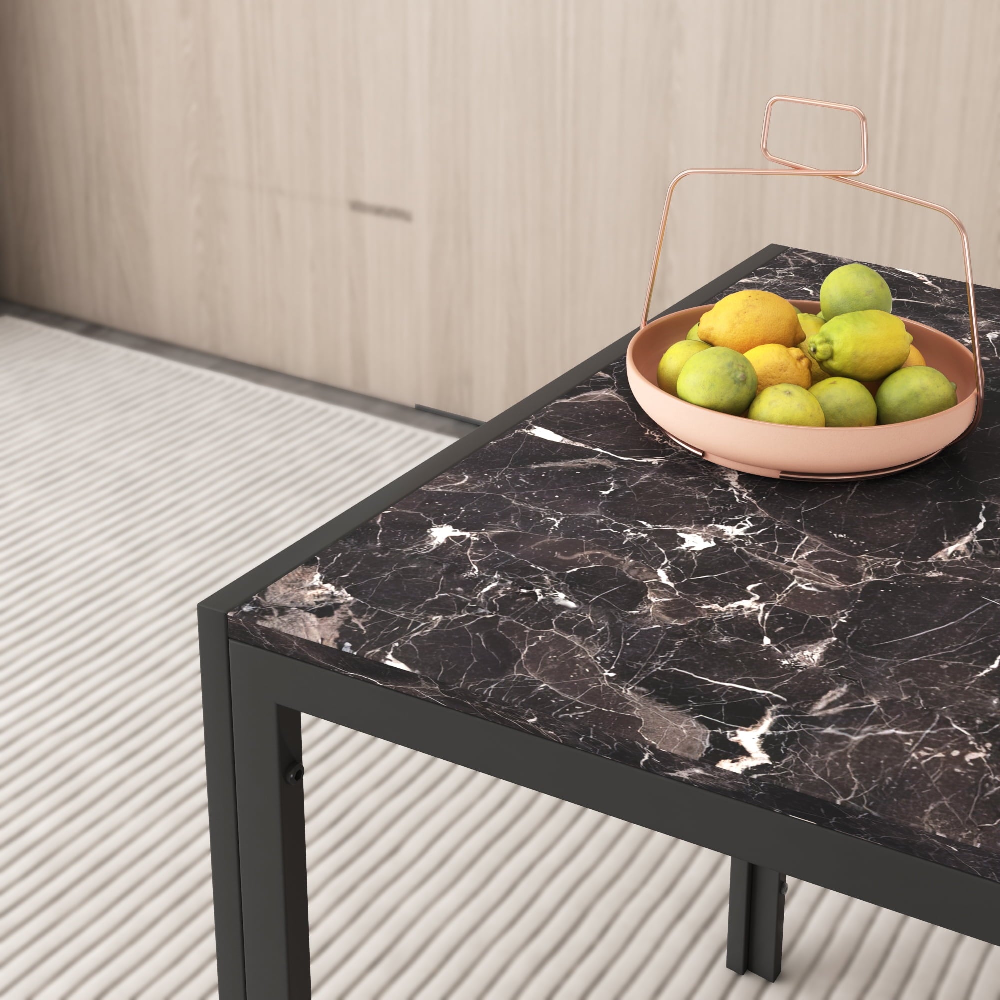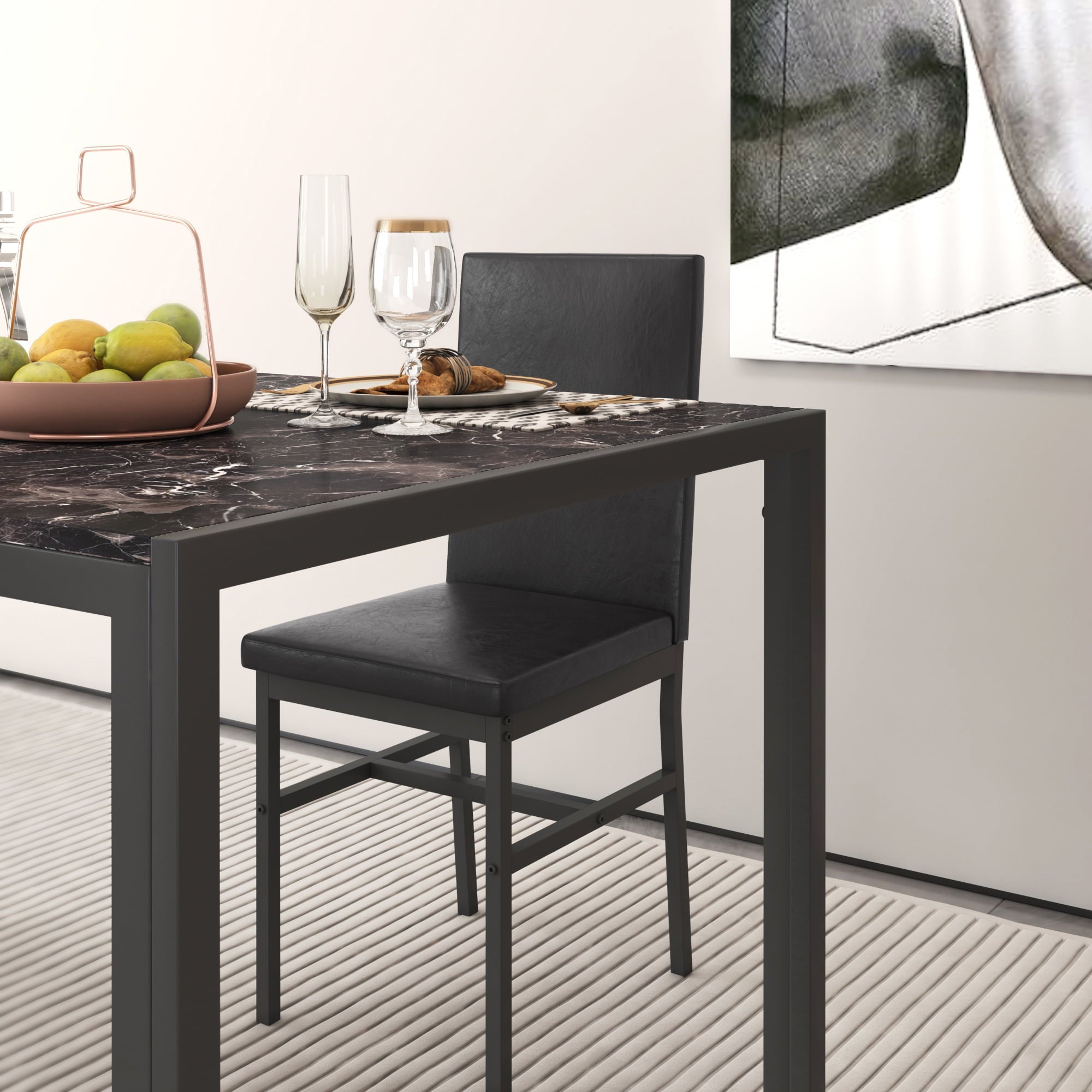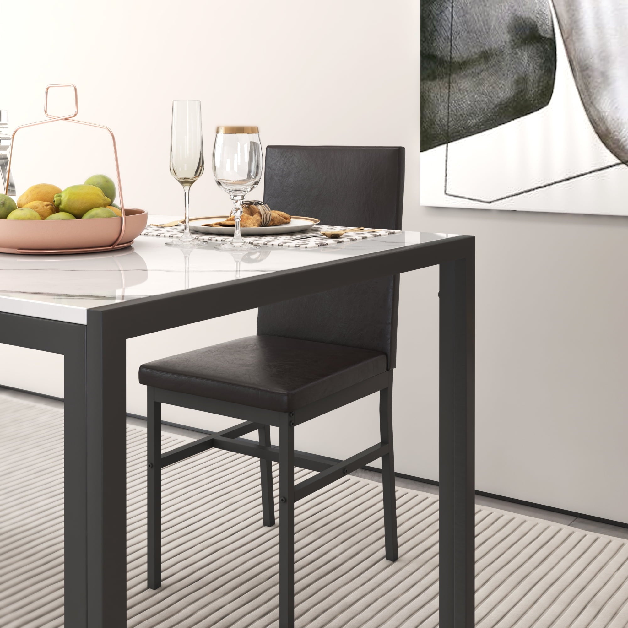 This 5-piece set includes a table with a faux marble top for an elegant touch and a smooth surface to place food and drinks.