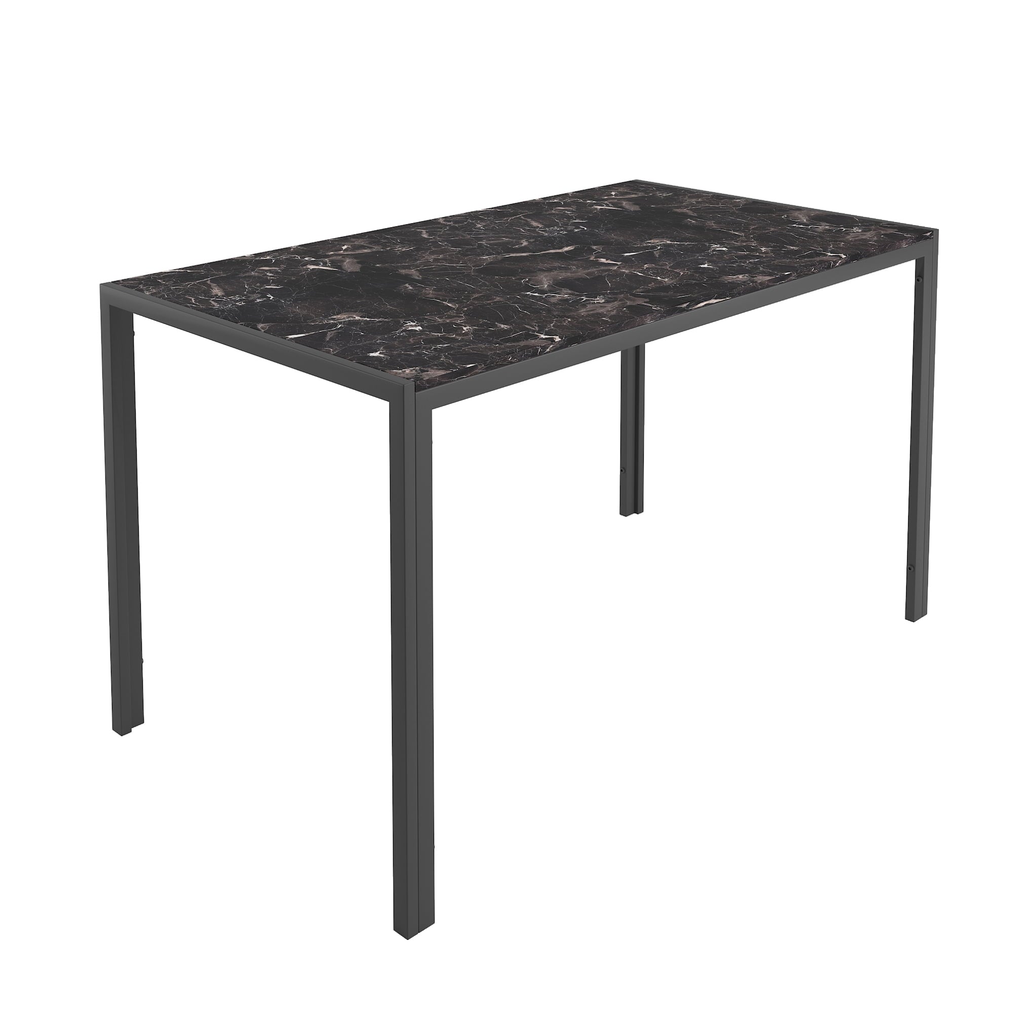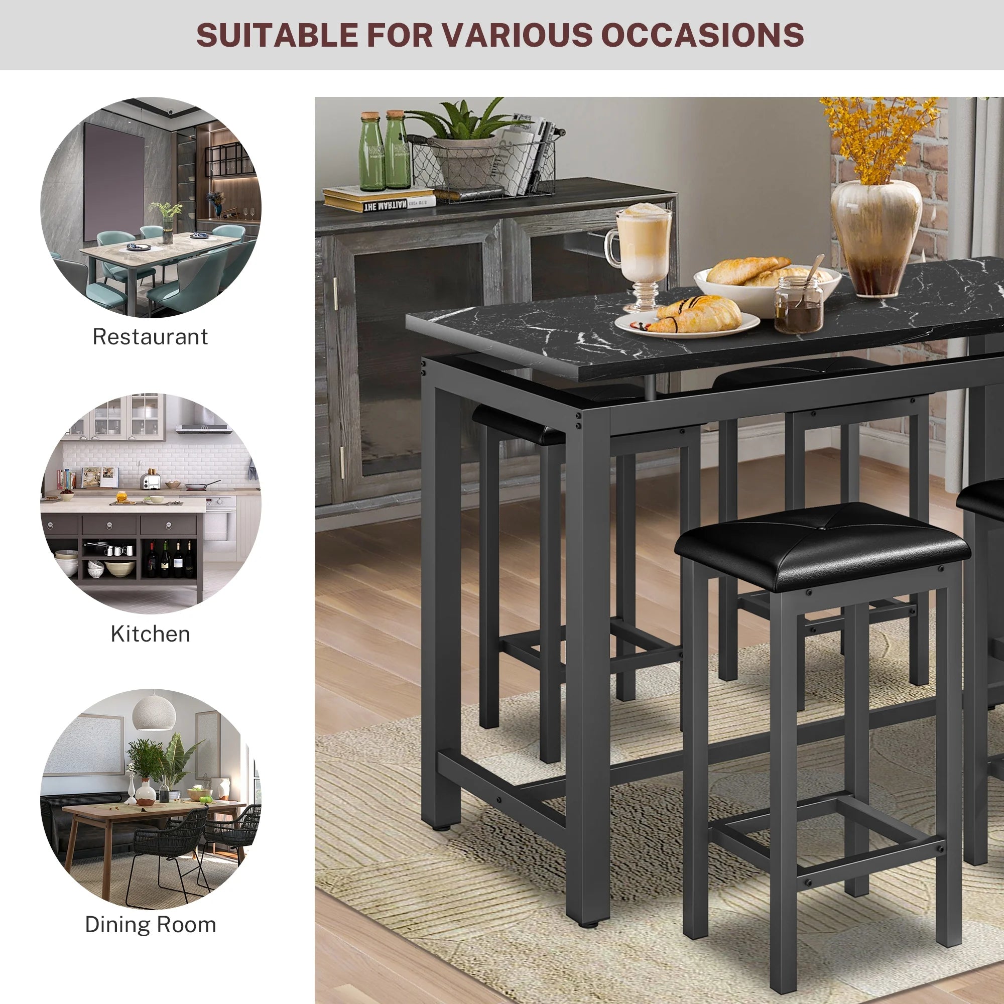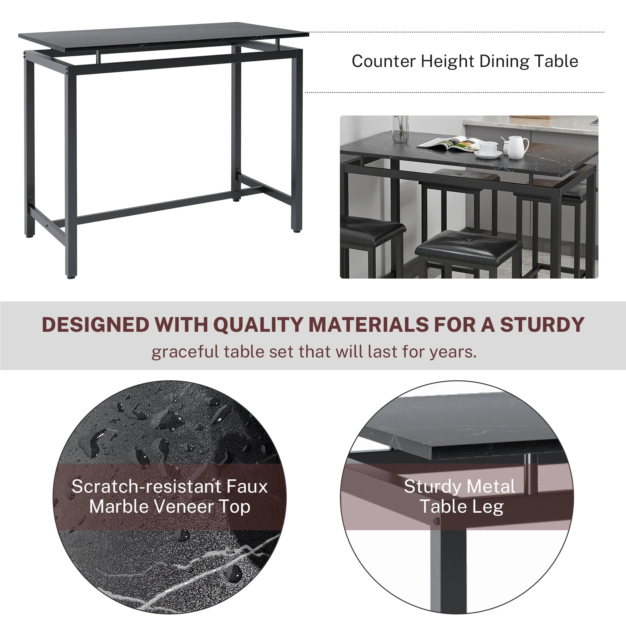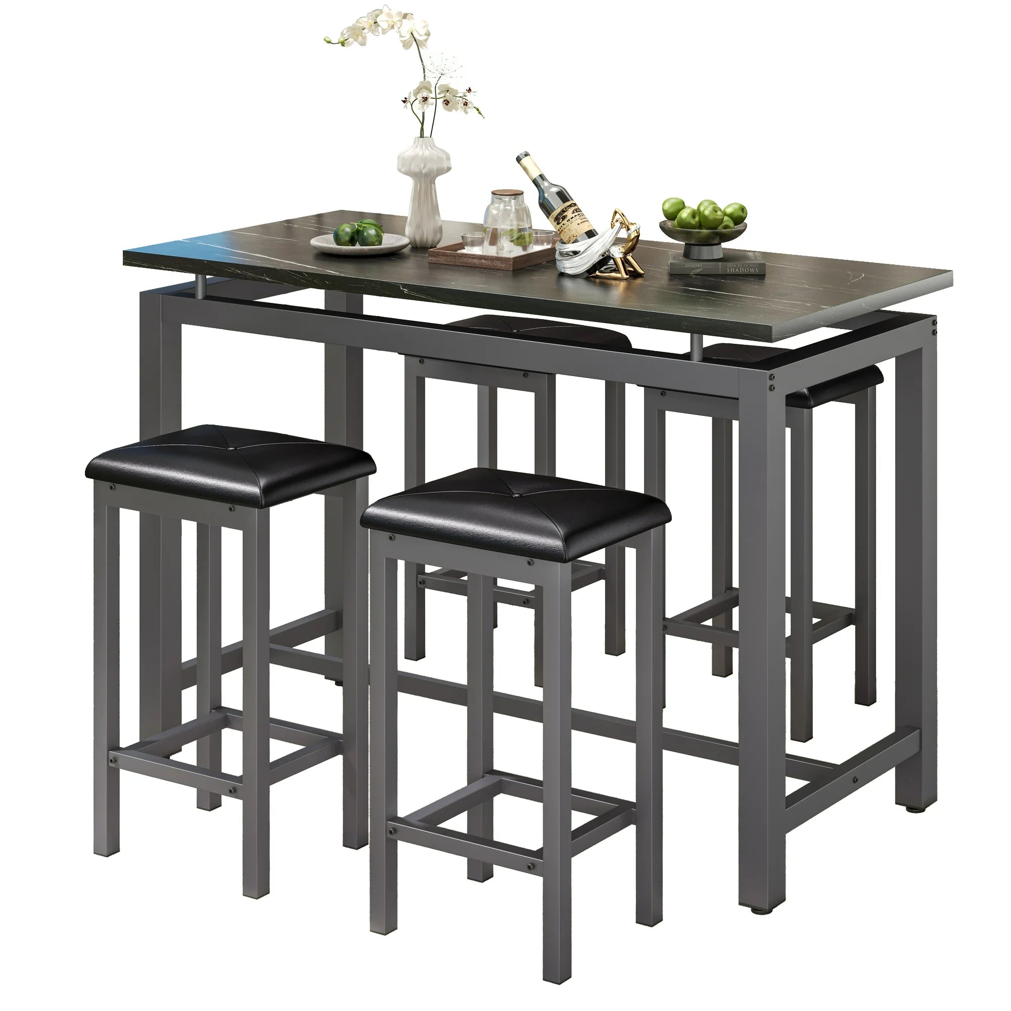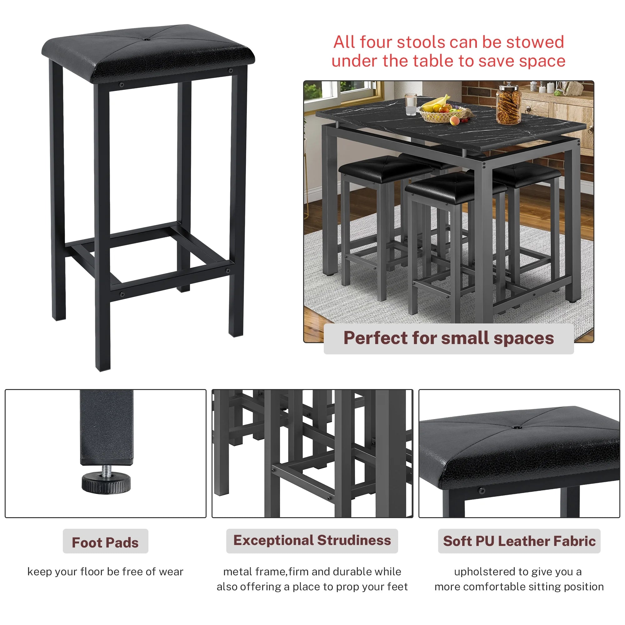 This 5-piece set includes a table with a faux marble top for an elegant touch and a smooth surface to place food and drinks.