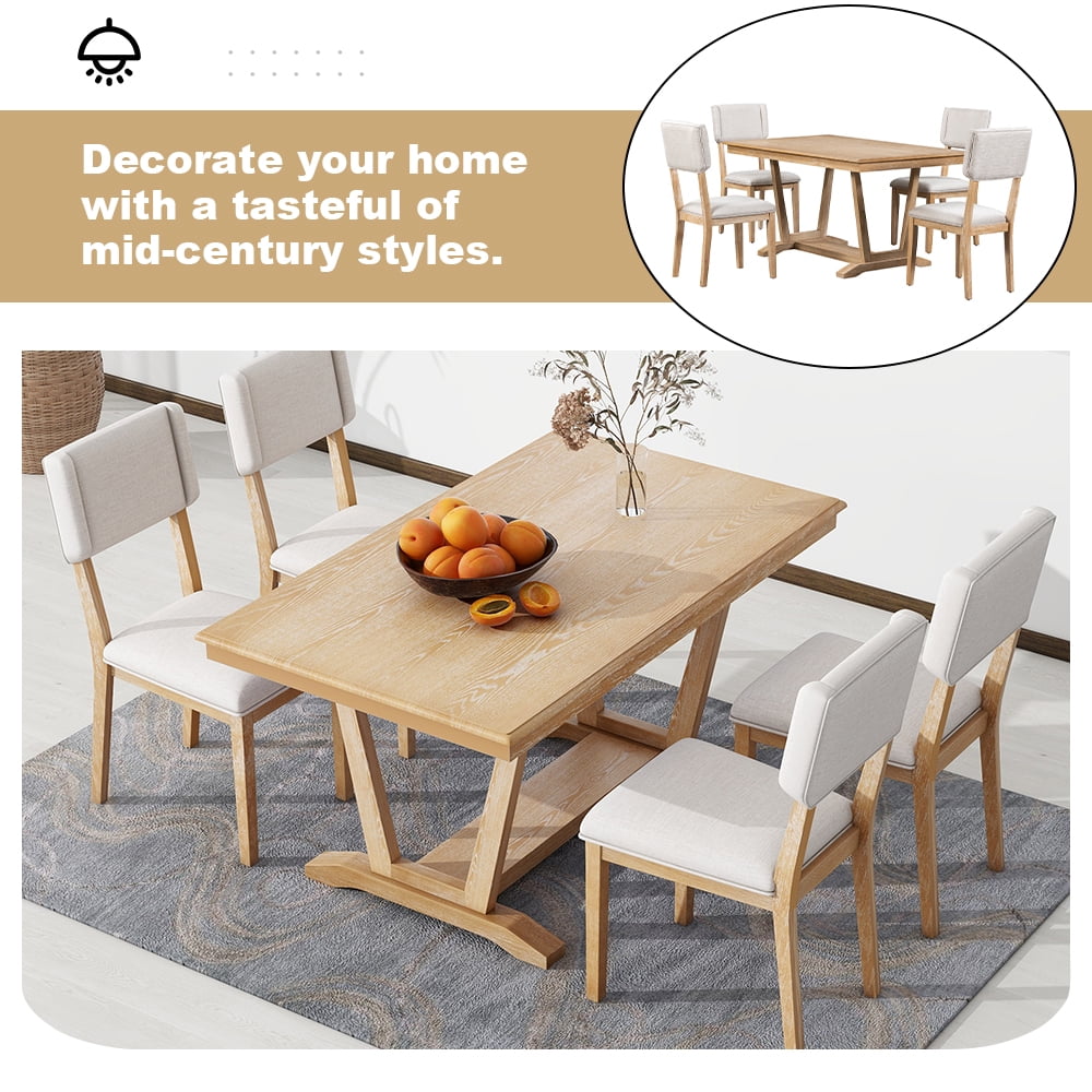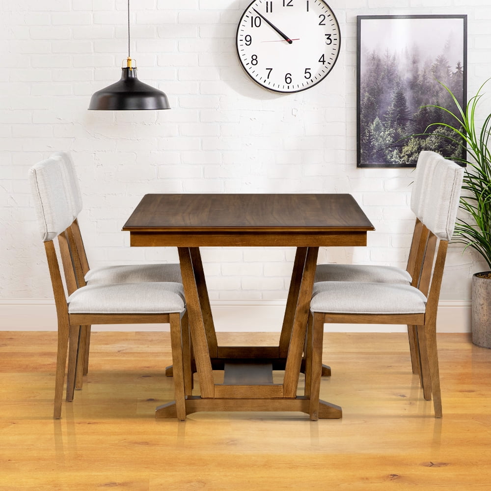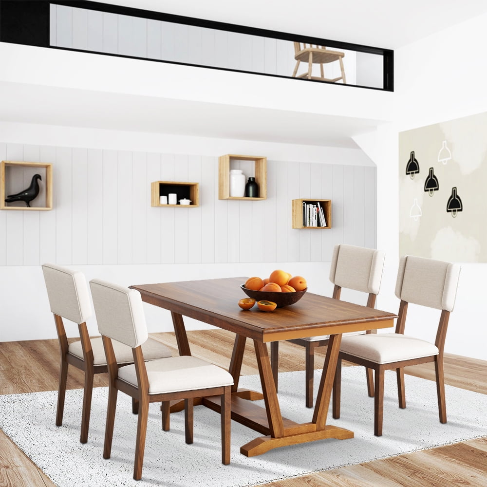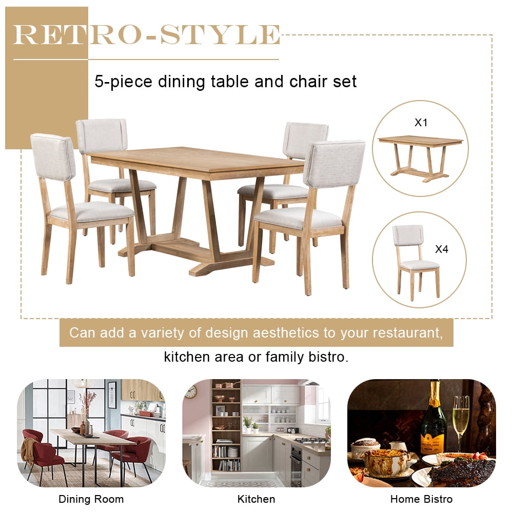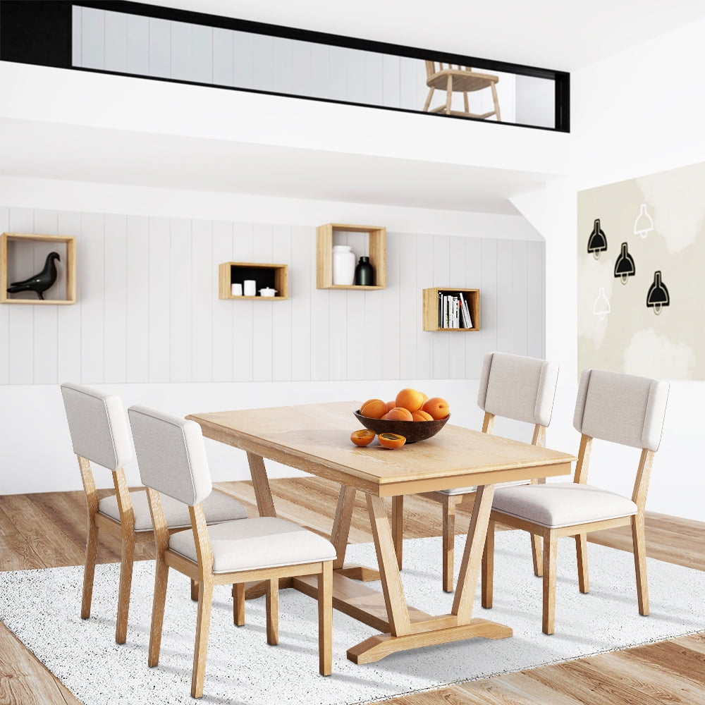 Home Dining Furniture Sets 5 Piece Dining Table Set, Atumon Dining Table Set for 4, Wood Dining Room Set with 1 Table and 4 Upholstered Chairs, Farmhouse Dining Table Set for Kitchen Dining Room Apartment, Natural
