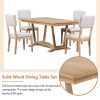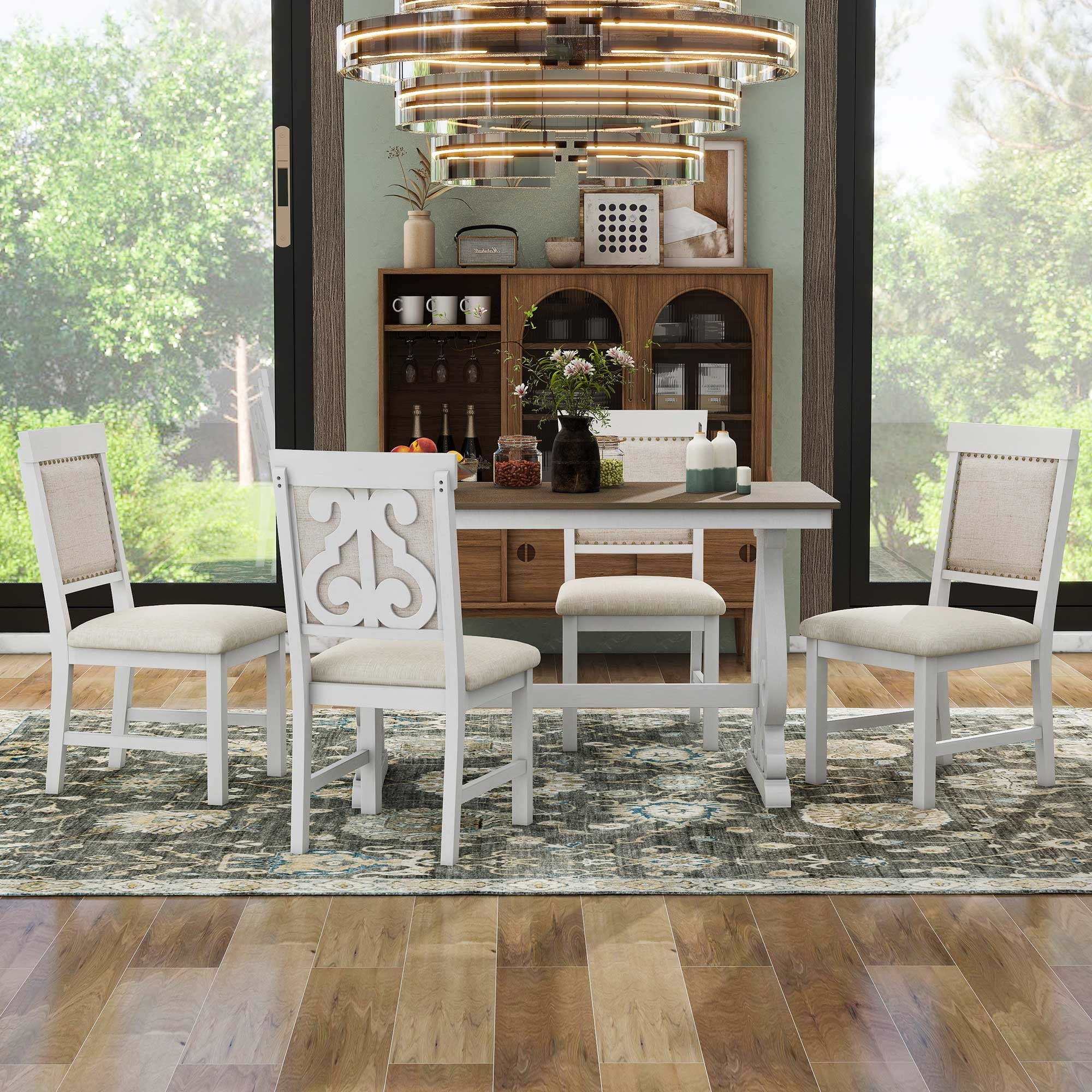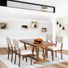 This dining table set has an understated silhouette with clean lines and brings elegant farmhouse flair to your home. Our dining table set will add a variety of design aesthetics to your restaurant, kitchen area, or family lounge. Our dining room set is durable and versatile enough to blend in with any type of home decor, you and your family will absolutely enjoy.