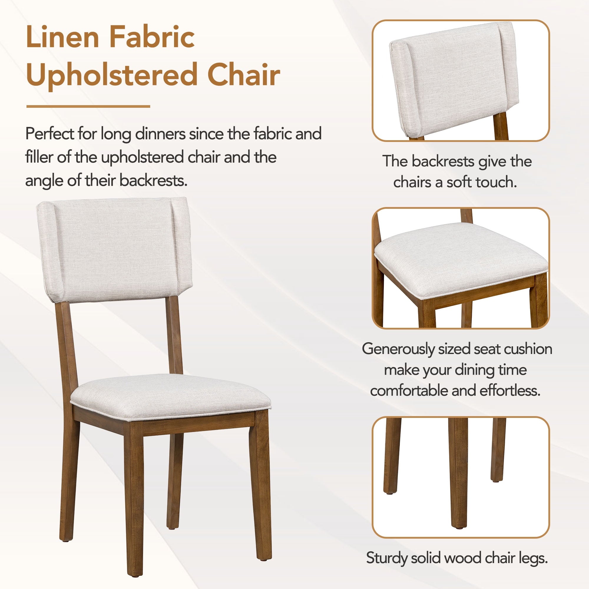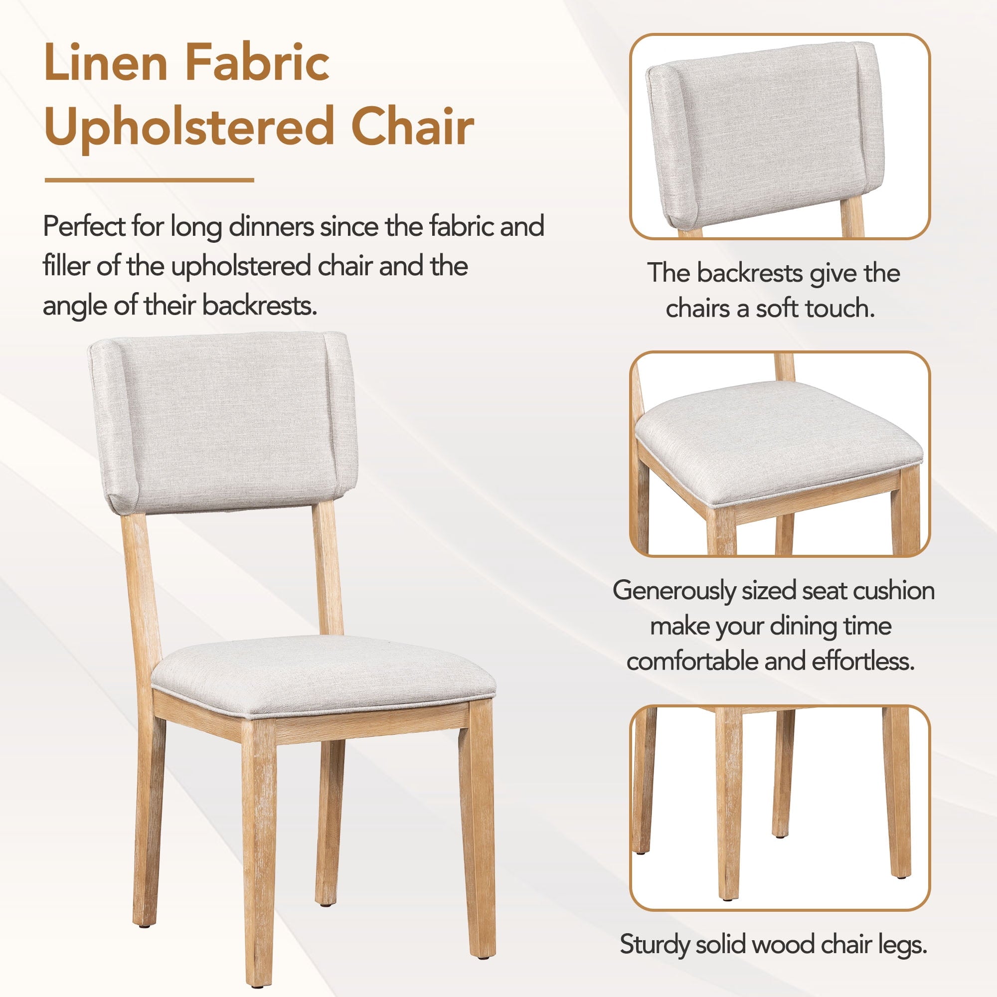 8. Chair Material: Rubber Wood + Foam + Linen Fabric