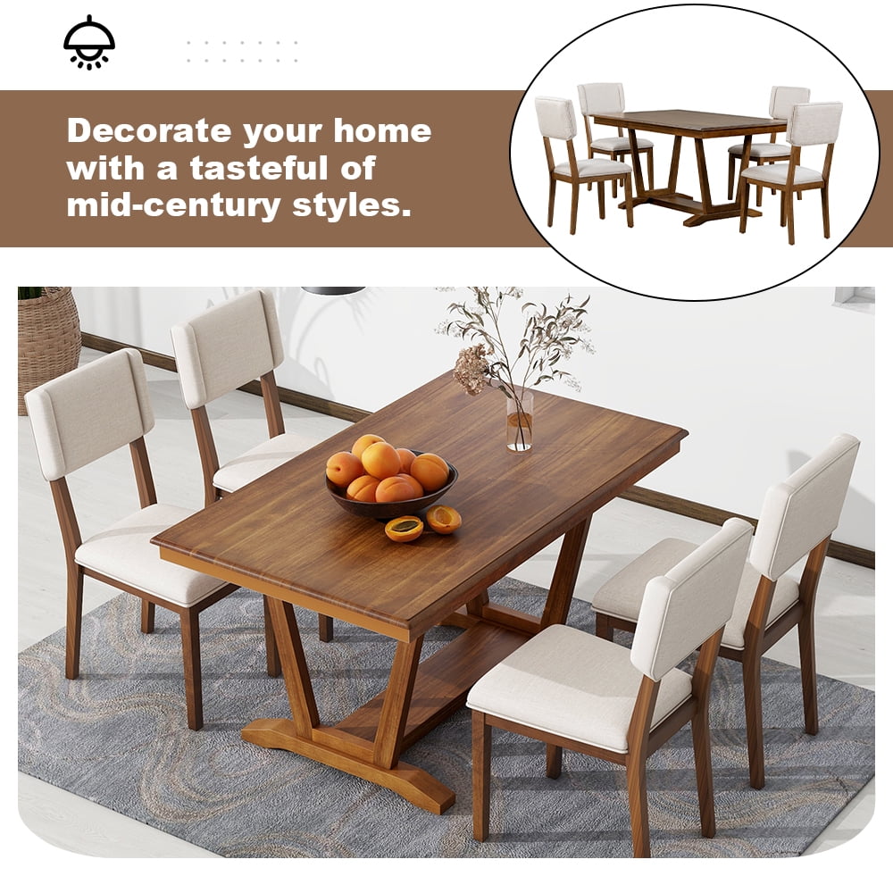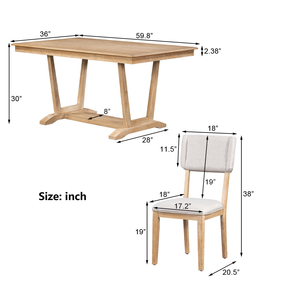 • 【DINING TABLE WITH TRESTLE BASE】The heavy table legs provide superior stability, durability, and strength for a long-lasting lifespan. With a 59.8″L x 36″W tabletop, this spacious table could seat 4-6, perfect for families of all sizes. You can add two chairs for a larger gathering if the need arises. With the table’s trestle base, it adds a sense of rustic fancy to your home while the stable construction makes this set spacious and sturdy. This 5-piece dining table set will be a good choice for your home.