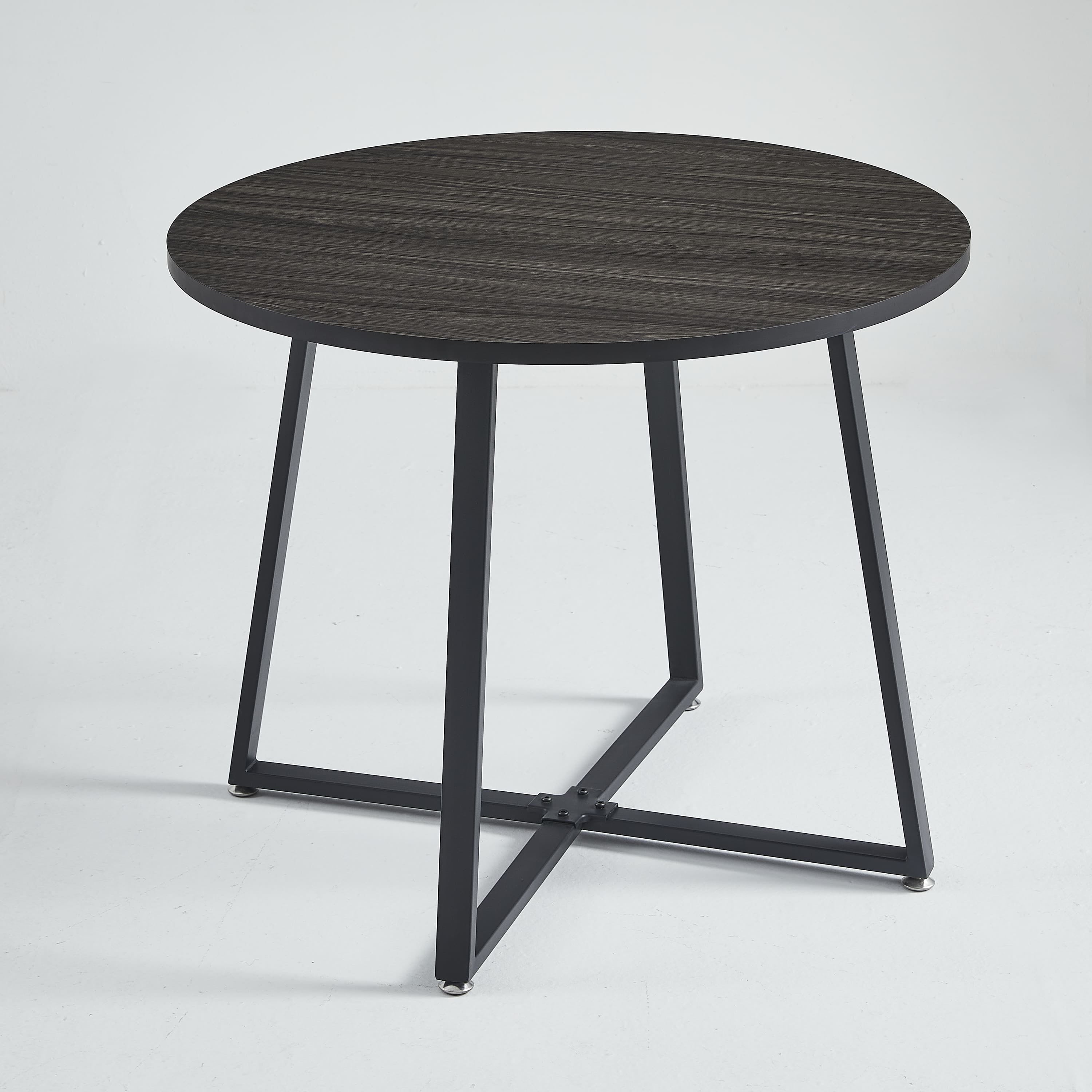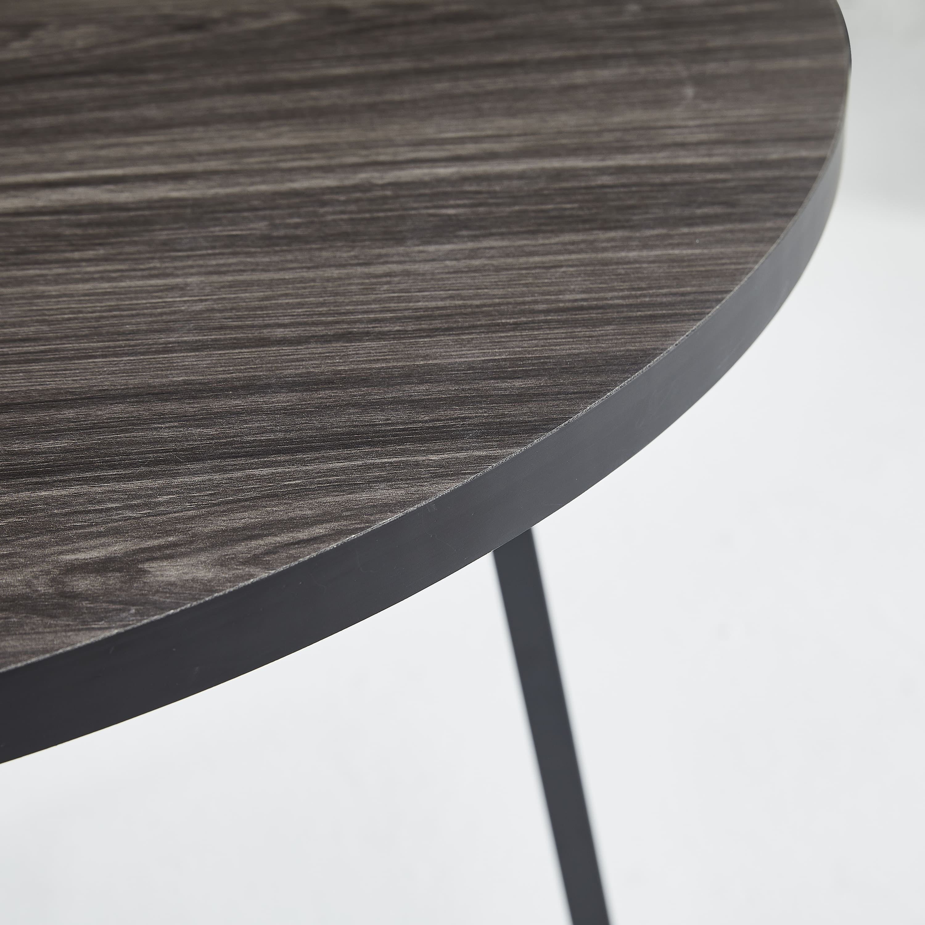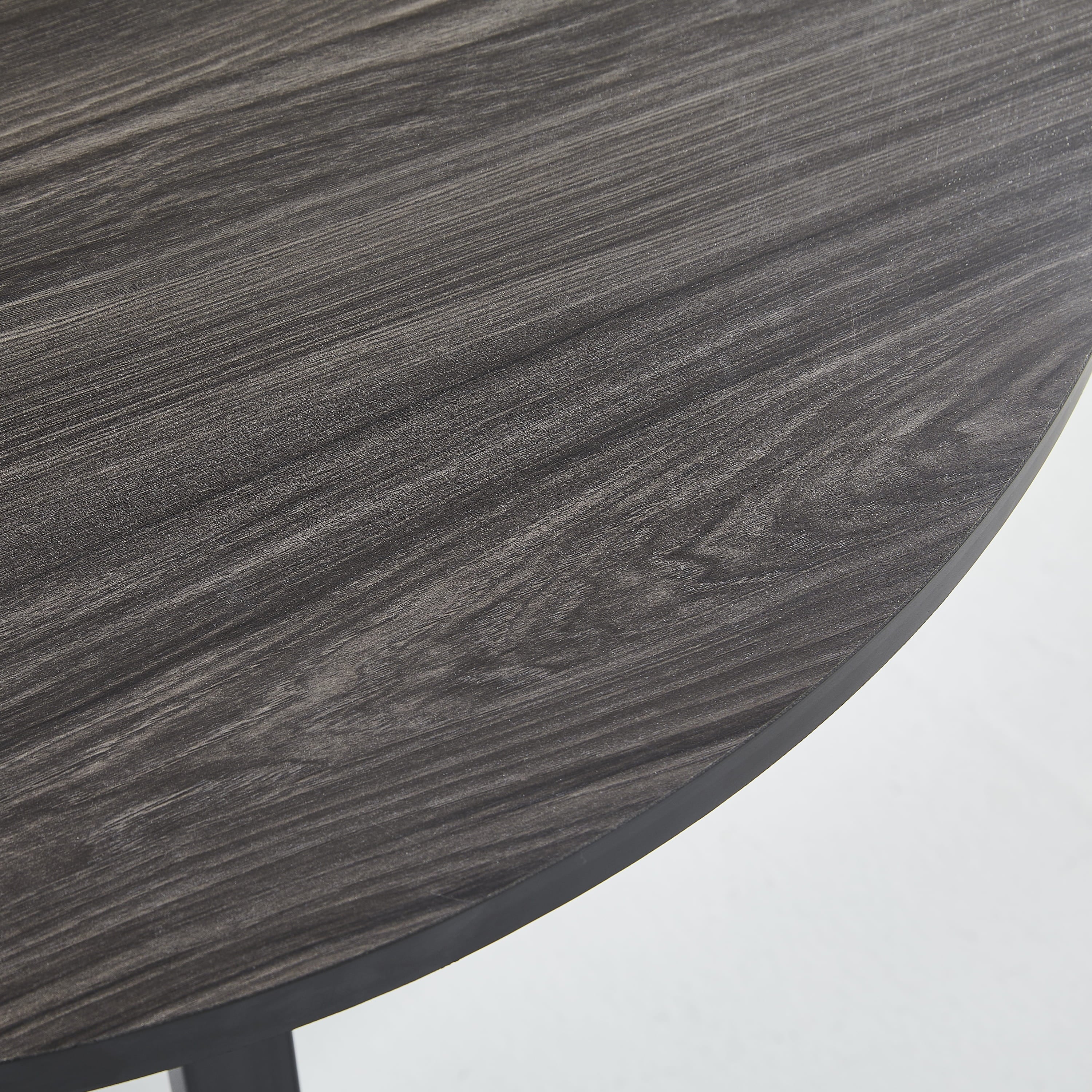• ‌Elegant Round Table Design: 35.4” x 29.5” table with a chic wooden pattern and sturdy black metal legs adds mid-century modern charm.