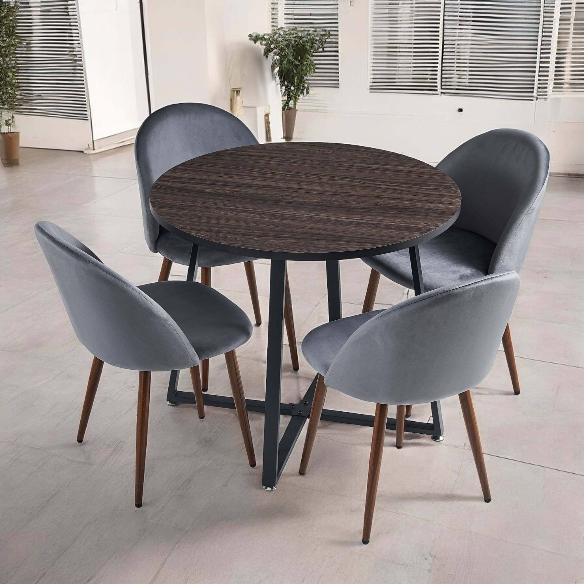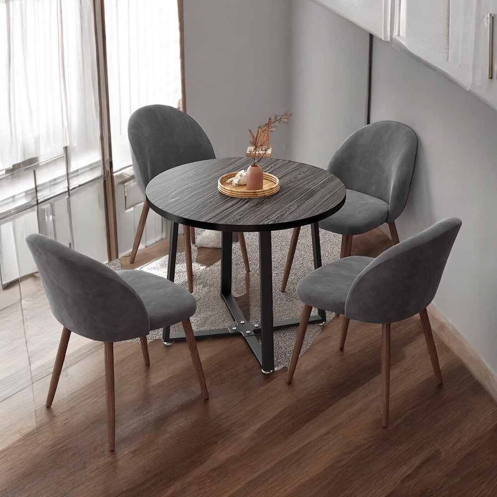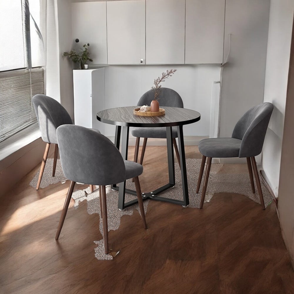 Anchorhome 5-Piece Modern Round Wooden Dining Table Set with 4 Velvet Chairs, 35" Space-Saving Kitchen Furniture for Small Apartments & Coffee Table Set (Gray Top, Gray)