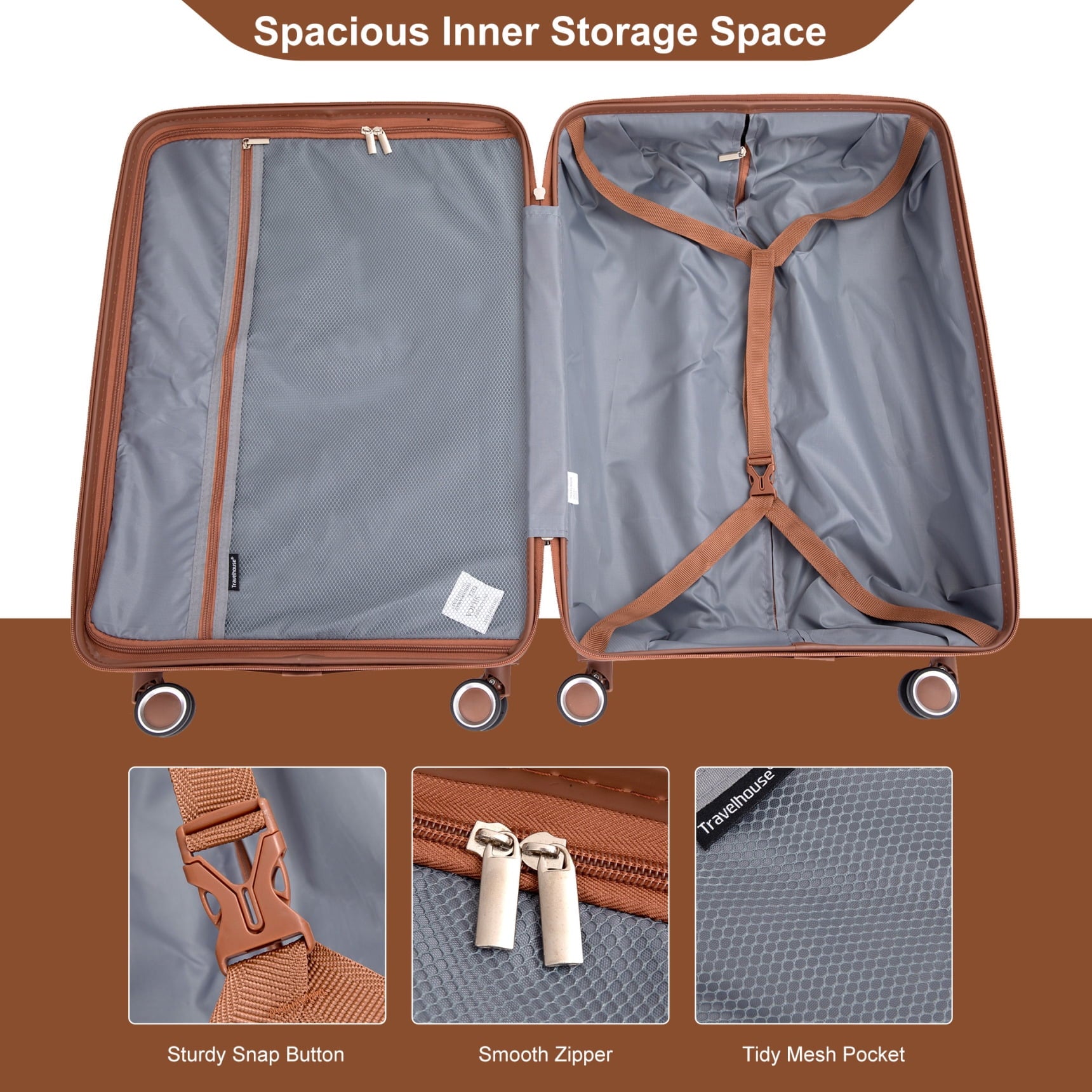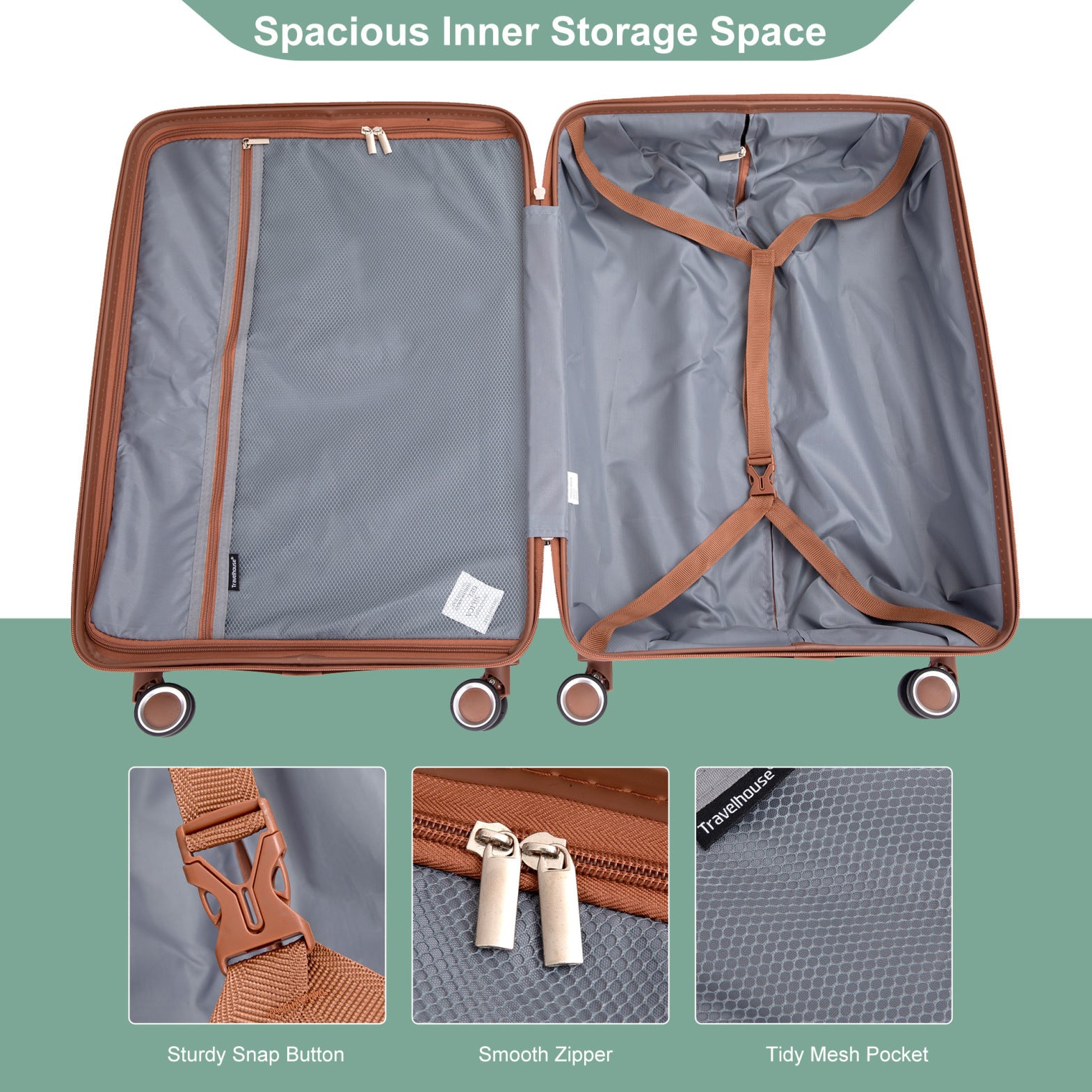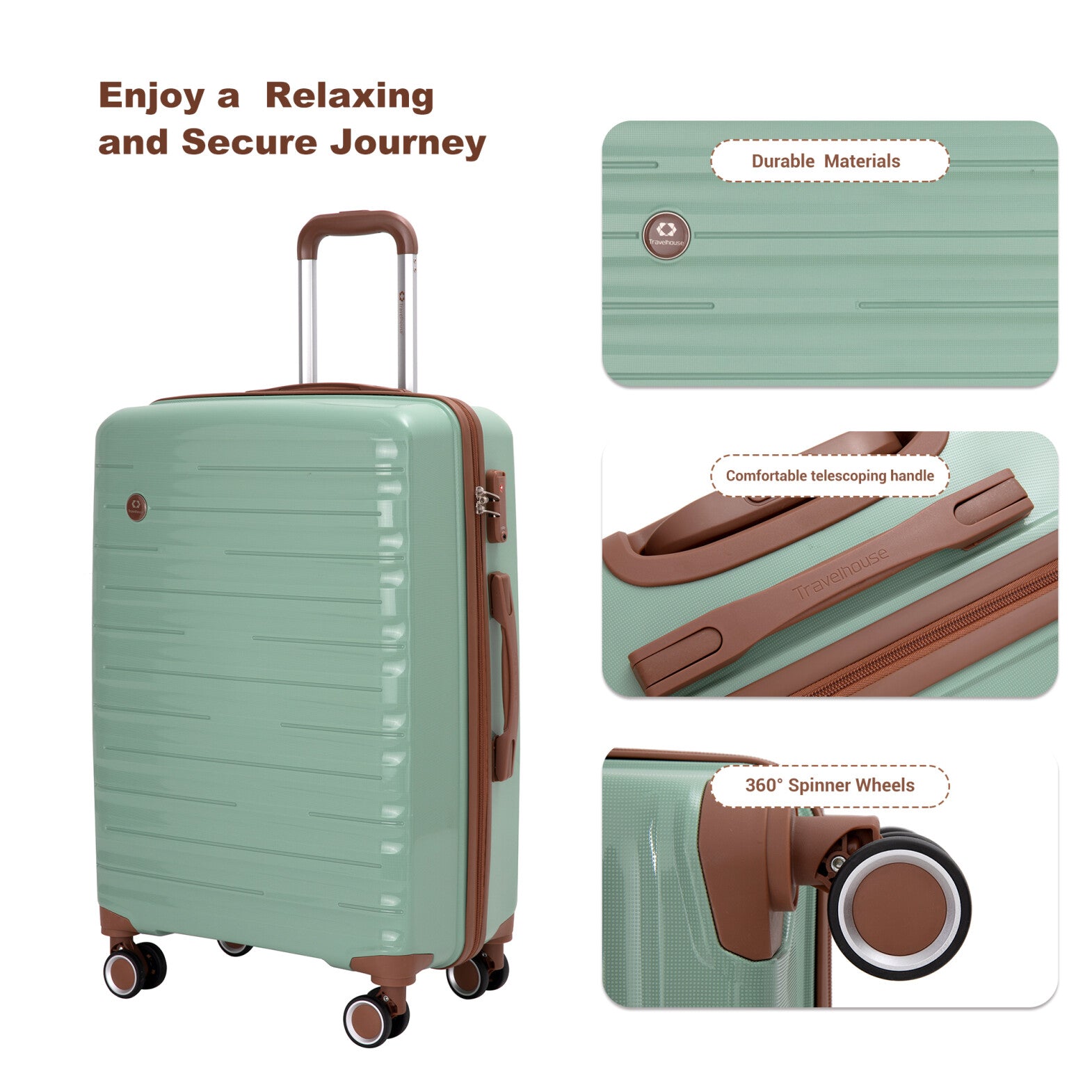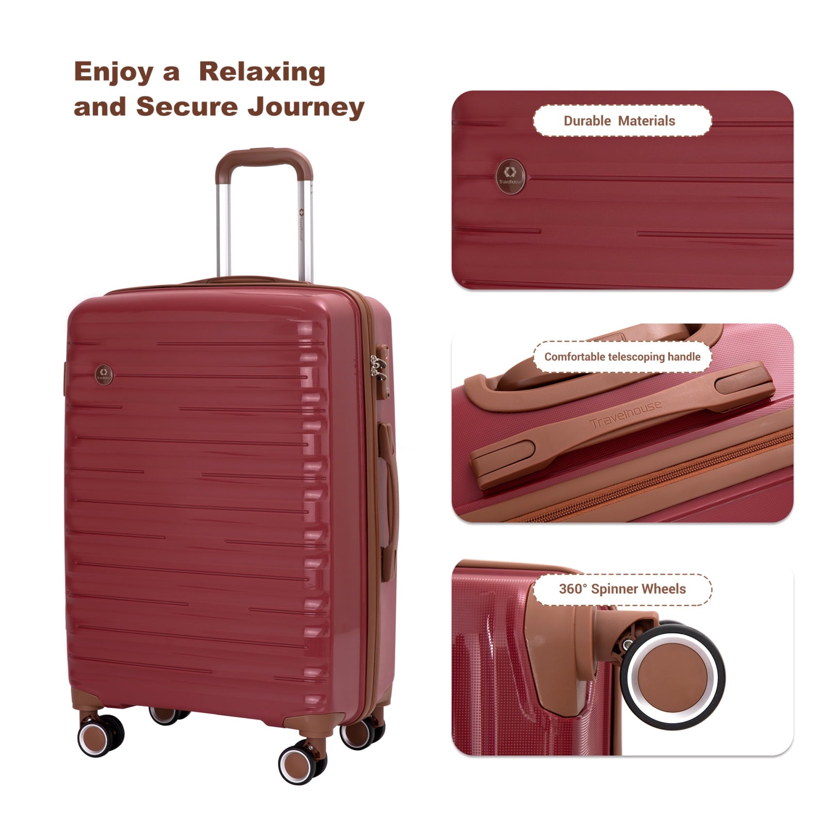 - 360-degree spinner wheels with smooth-rolling design maneuver effortlessly across airports, streets, and uneven surfaces; the easy navigation reduces physical strain, making luggage handling comfortable for all age groups.