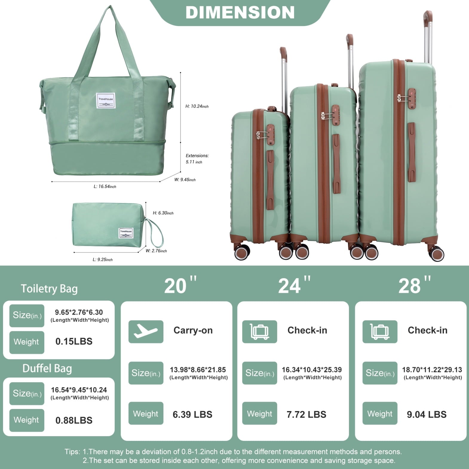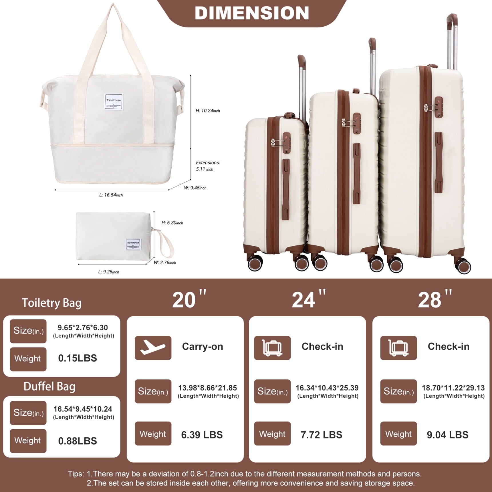 - Complete 5-piece travel system includes a 20-inch carry-on and check-in suitcases with coordinating bags, providing versatile packing solutions for trips of all durations; this organization helps travelers efficiently manage belongings, reducing stress and enhancing journey enjoyment.