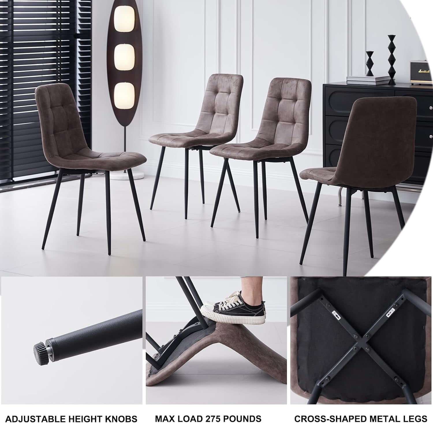 4 Dinning Leather Chairs: The 4 set dining chairs are made of durable and comfortable faux leather fabric,which is stain-resistant and waterproof to resist spills and stains during dining. The seat cushions of chairs are filled with high-density sponge, which provides exceptional comfort and support, even after extended periods of sitting.