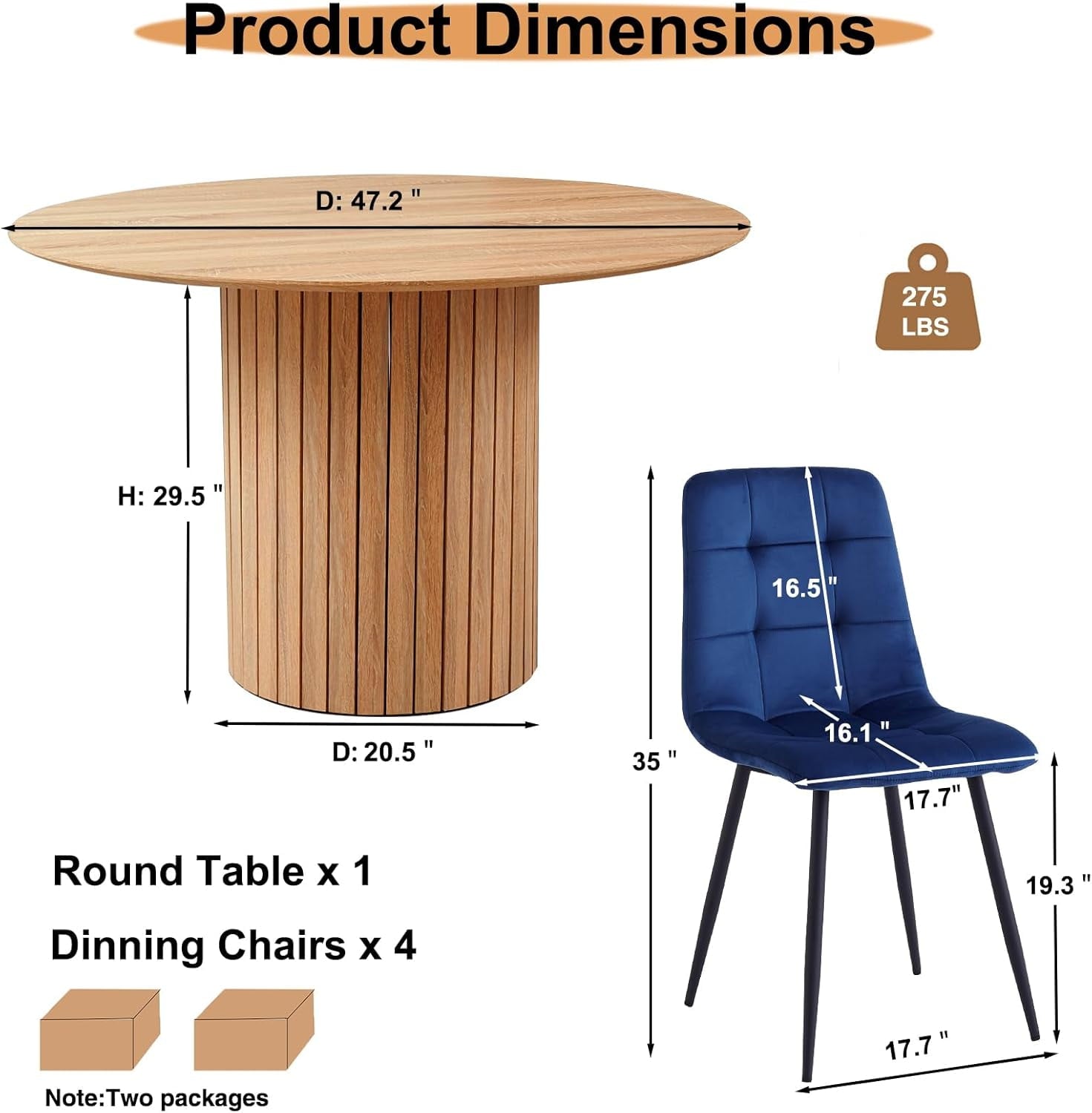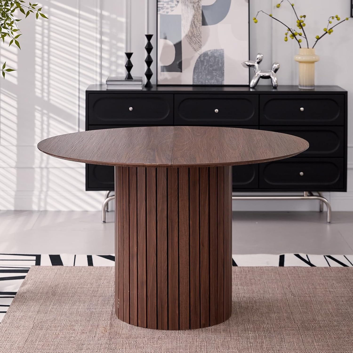 Large Round Table: This round dining table is perfect for cozy dining areas. With its 47.2 inch tabletop, it is comfortably seated 4-6 people and can be paired with various styles of dining chairs,making it an ideal choice for both family meals and small gatherings.