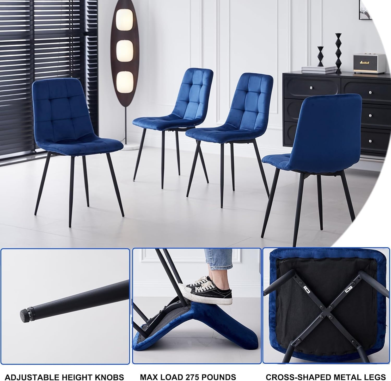 Stable Metal Frame Chairs: The robust metal frame with crosswise installation enhances stability, supports up to 275 pounds. Adjustable height knobs are included to ensure the chairs remain level and protect your floors from damage.