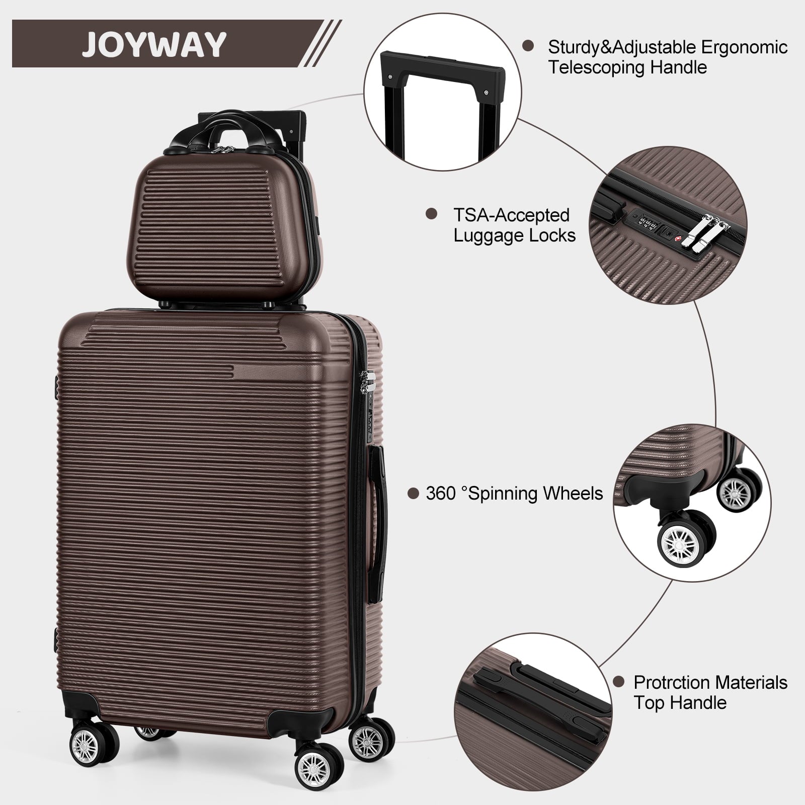 • [Top Quality Hardshell Luggage Set]: Crafted with strong ABS for durability and versatility, the luggage is lightweight and built to last, while the addition of 2 corner protectors safeguards your belongings against damage.