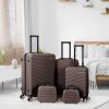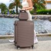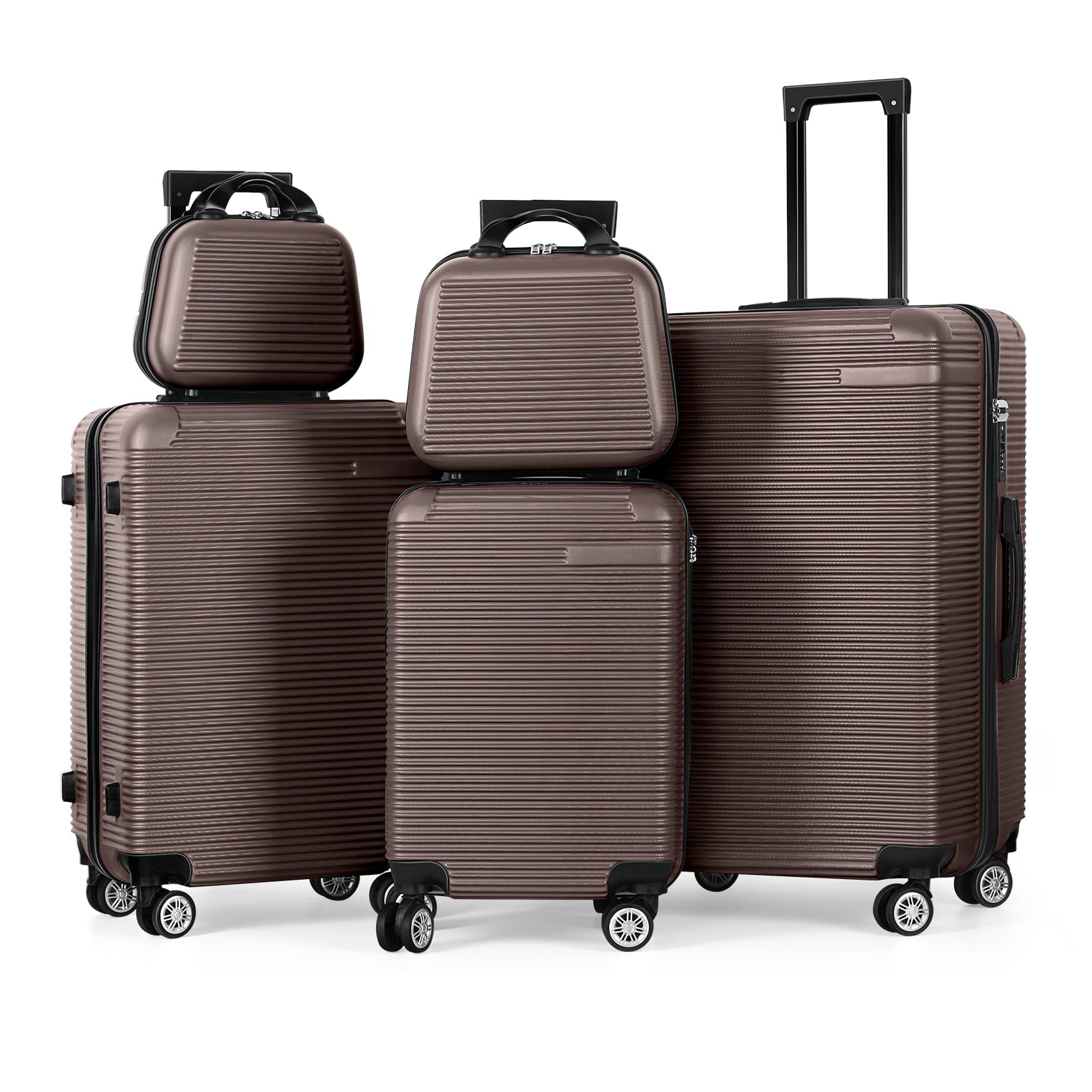 5 Piece Travel Luggage Set, 12" 14" 20'' 24" 28'' Expandable Lightweight Suitcase with Noise-free Double Spinner Wheels & TSA Lock, ABS Hardshell Suitcase for Vacation, Brown