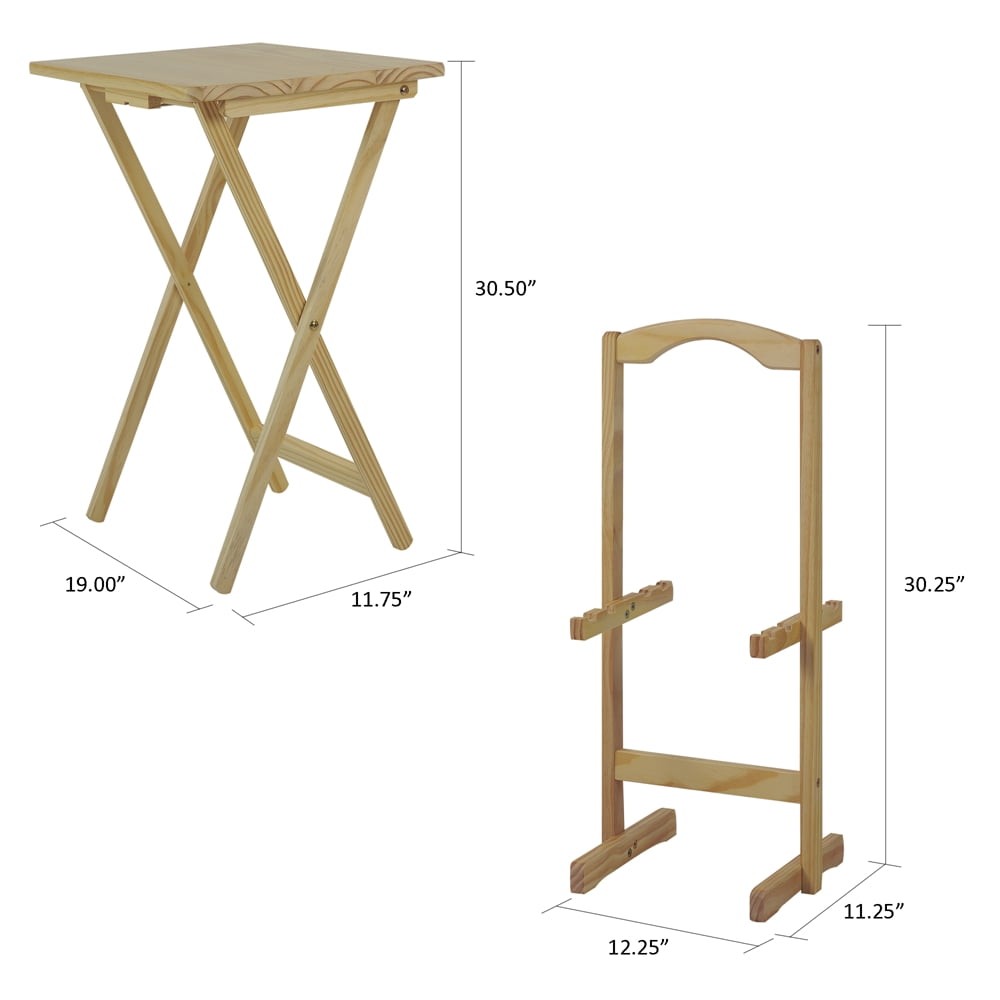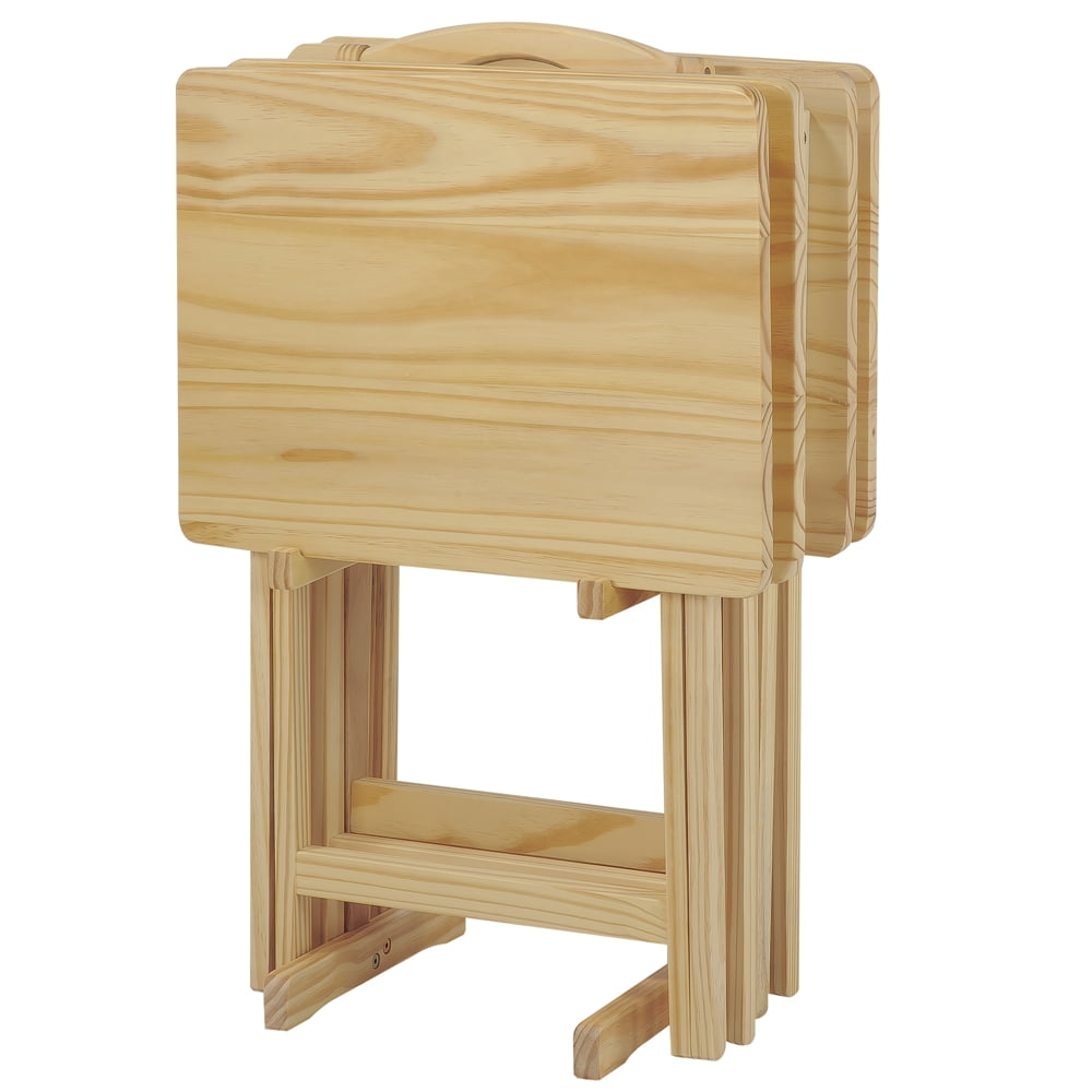 With this 5-piece Folding Table Set you can have a table anywhere in your home. Made of 100-percent solid wood, this set includes 4 folding tables and a convenient storage stand, which is great for transportation. Perfect for TV meals or family meals that make their way out of the kitchen or dining room.