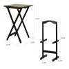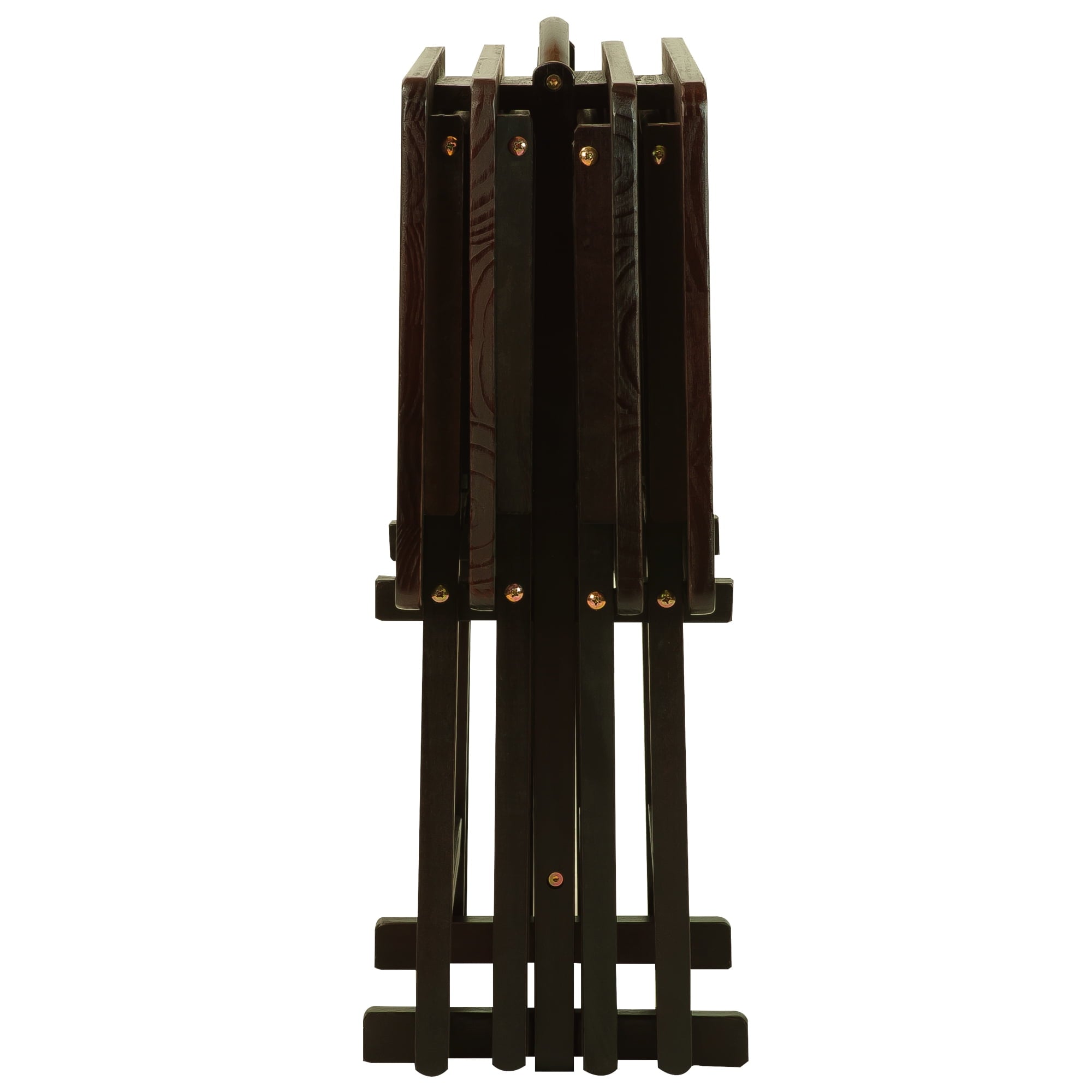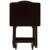 - Includes a matching wooden storage stand that holds all 5 of the tables in a convenient, out-of-the way manner