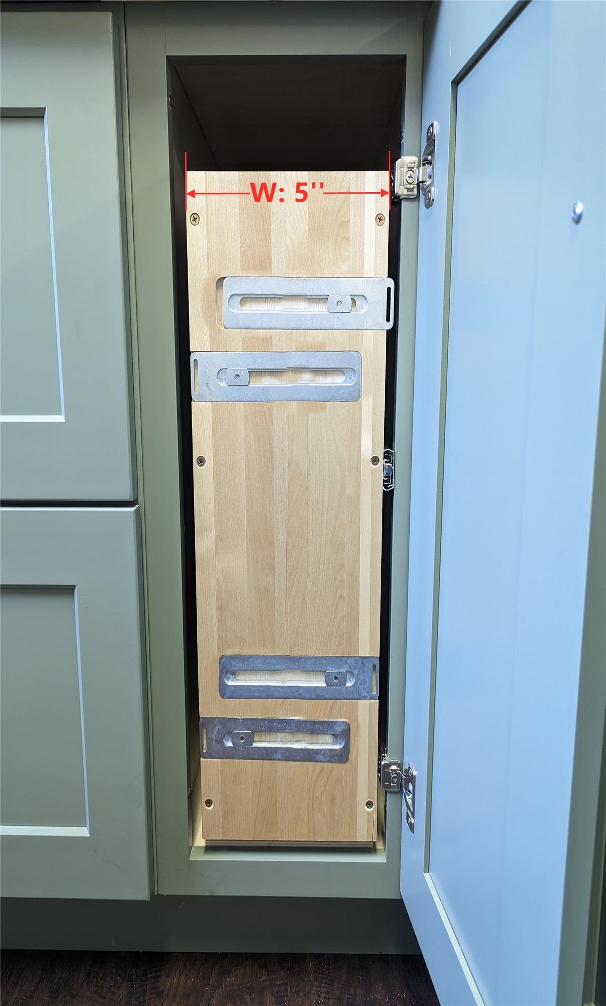 - 1. Dimensions & Installation Space:Fits base cabinets without drawers. Drawer width: 5″. Cabinet opening must be at least 5.5″ wide, 24.5″ high, and 21.5″ deep.