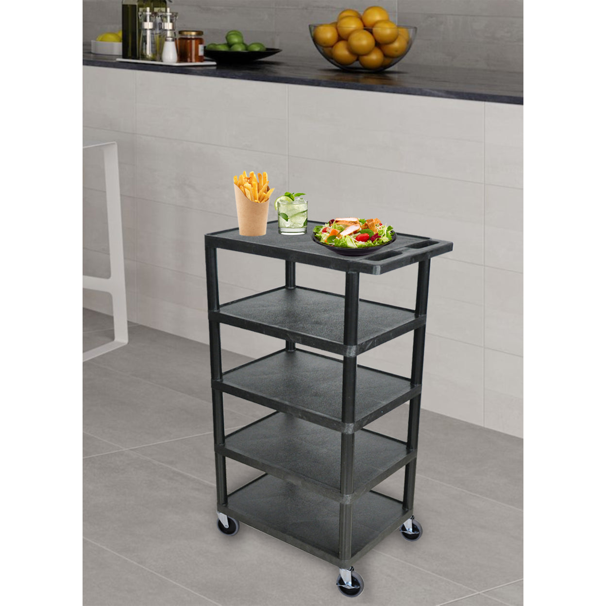 5 Shelf Multipurpose Mobile Rolling Kitchen Hotel Banquet Utility Service Cart – Black Description: