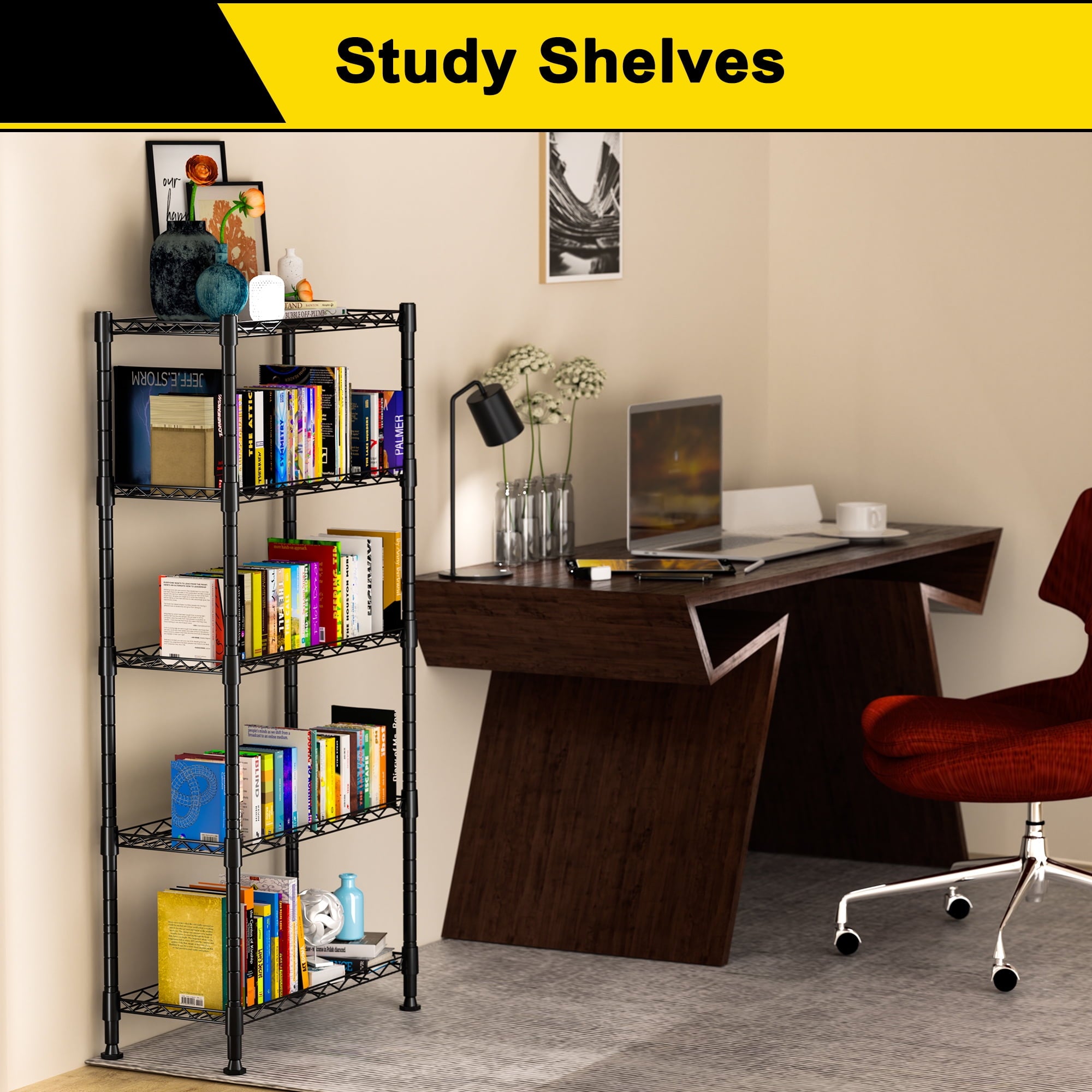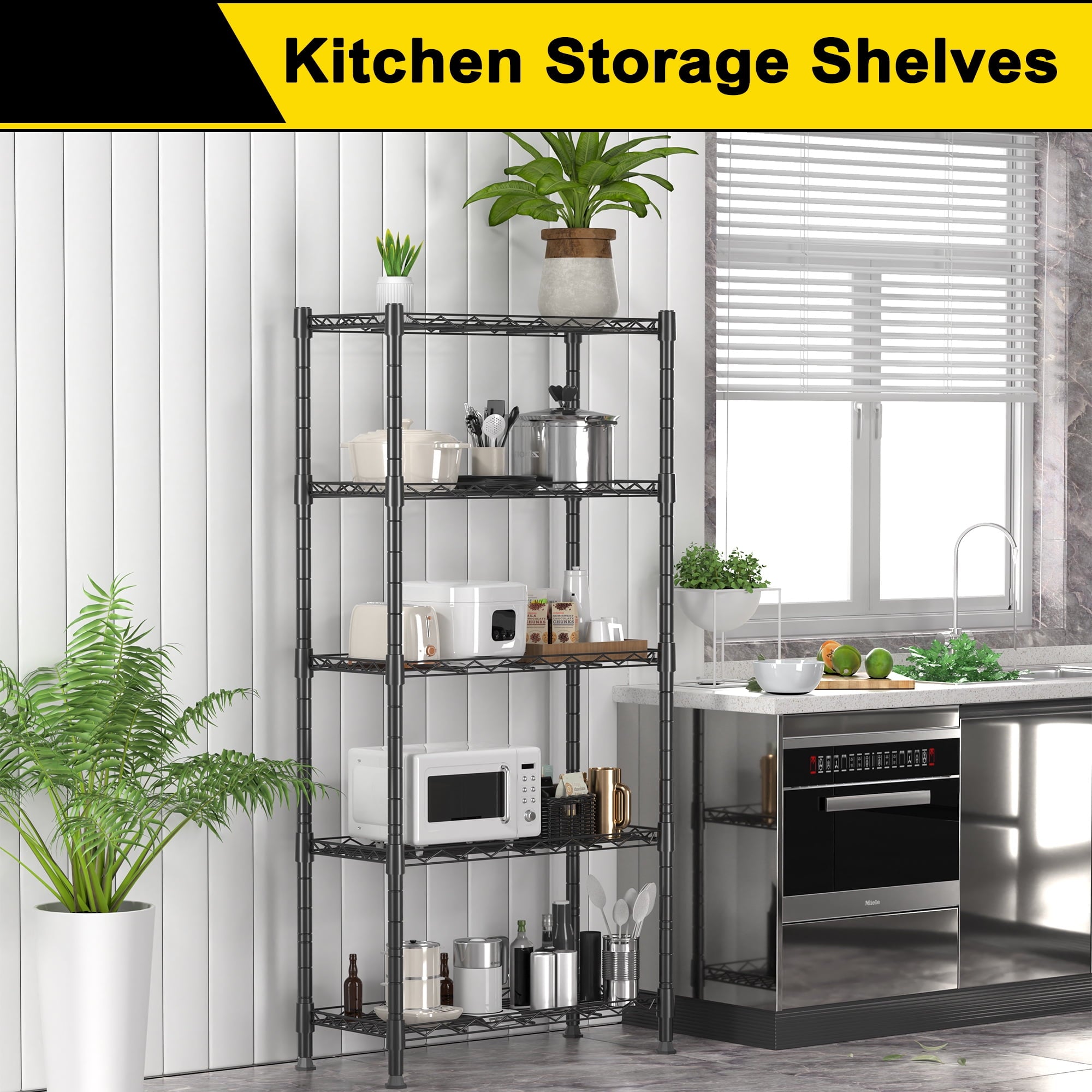 Home Shelves & Shelf Units 5-Tier Heavy Duty Wire Shelving Unit – 500lb Capacity Adjustable Metal Shelves, 21″L x 11.8″W x 53.8″H for Garage, Pantry & Bathroom (Black)