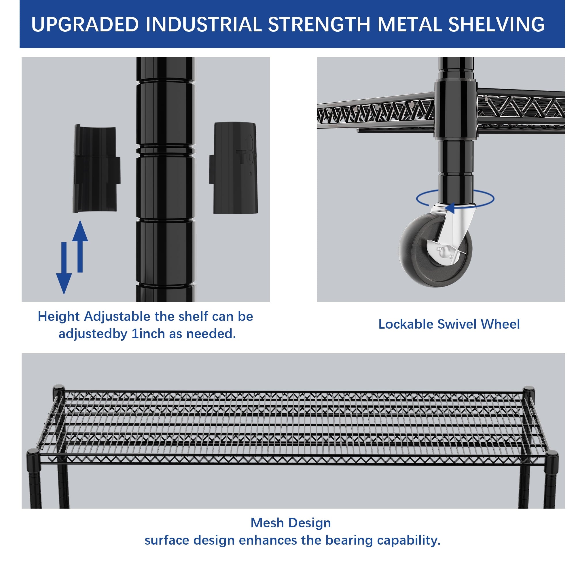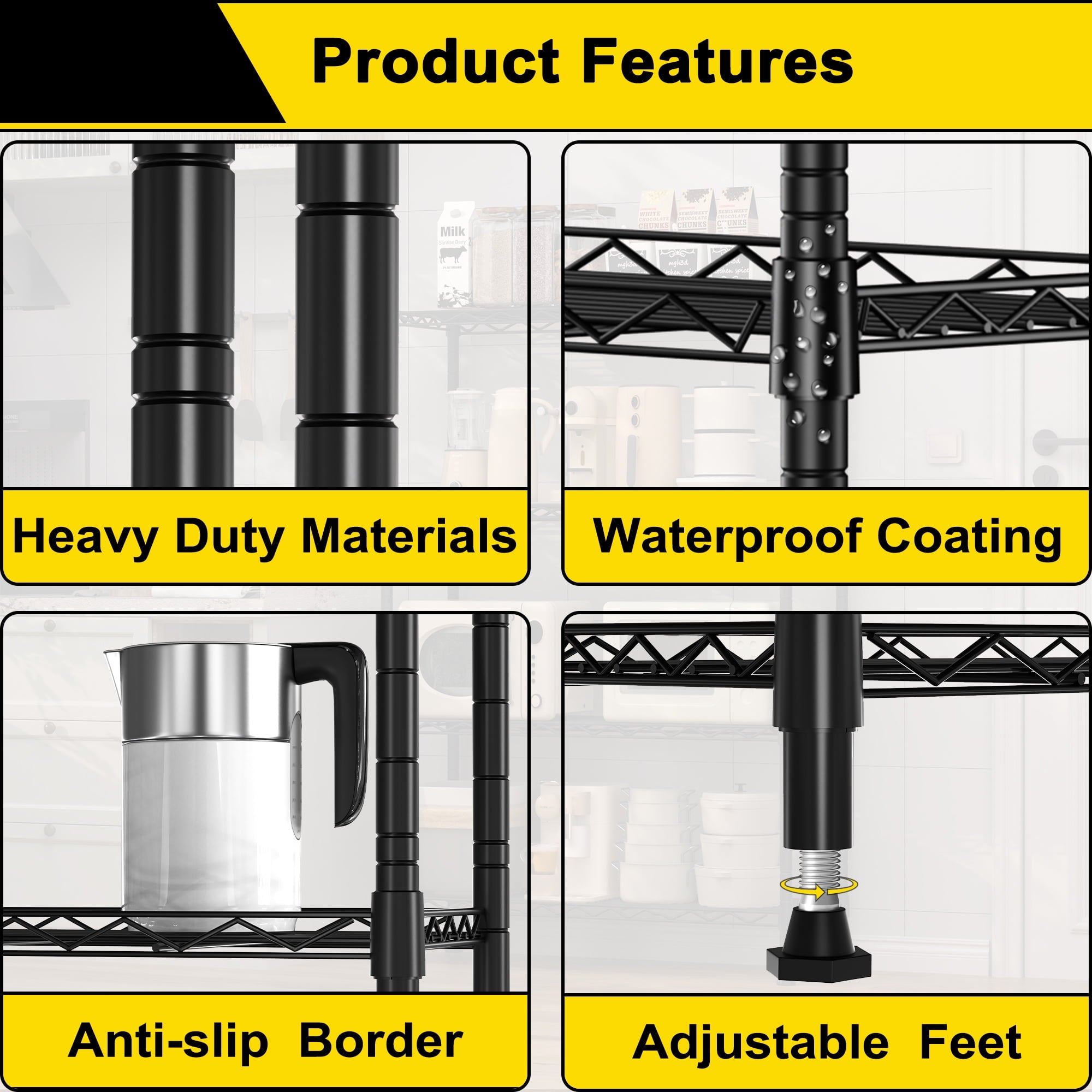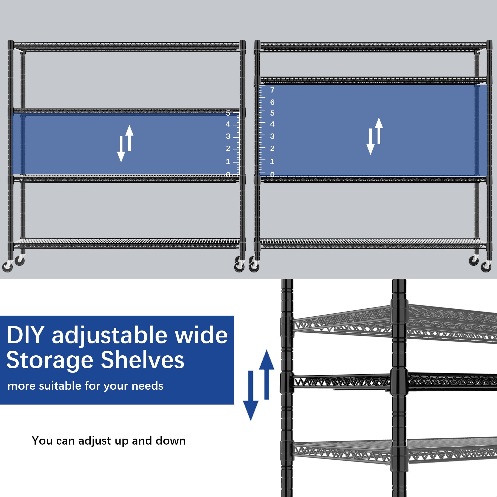 • ‌Industrial 500lb Weight Capacity: Constructed with high-strength steel tubing and reinforced mesh shelves. Holds 125lbs per tier (500lbs total) – perfect for tools, appliances, or pantry supplies.
