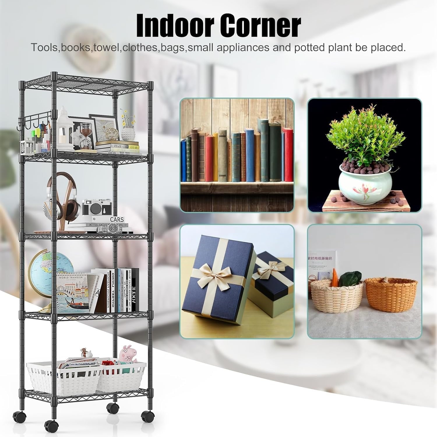 - 【Adjustable Height Design】Each layer of this metal shelf can be adjusted,you can adjust the height of the storage shelf according to the size of the item