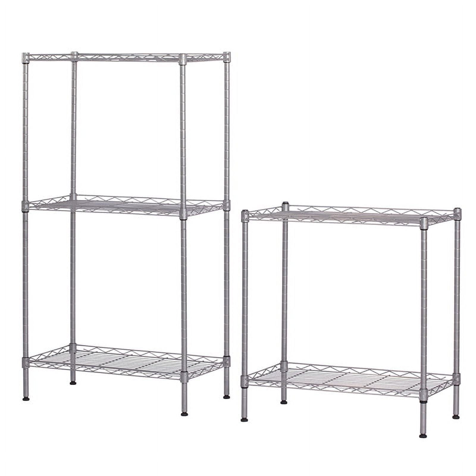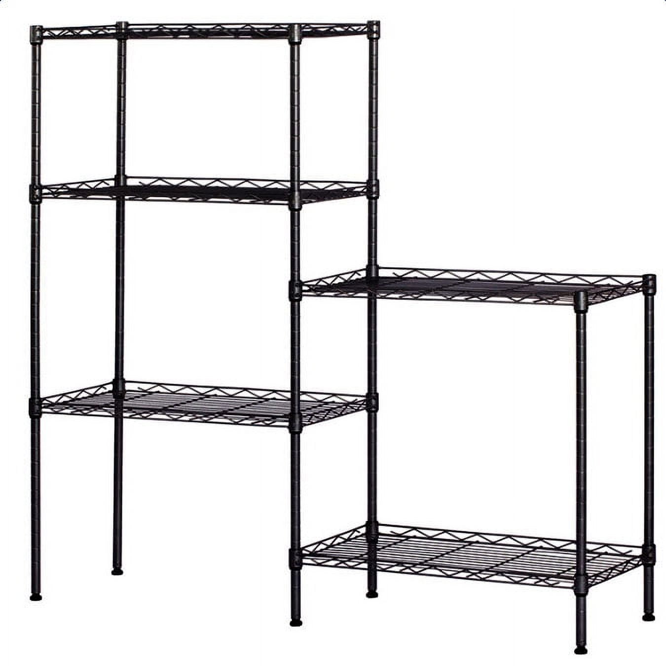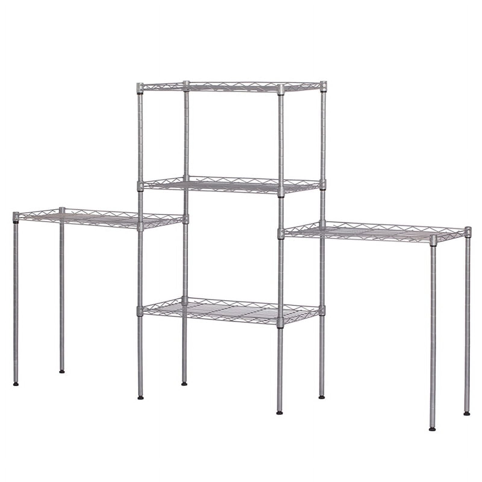 Stylish wire shelving unit provide valuable vertical space and no occupy too much space, which helps keep items dry and reduce odors. This shelving unit offers remarkable strength, convenience and versatility. It is a household essential and space saver for kitchen, bedroom, bathroom, laundry room, garage, basement, office and more living space.