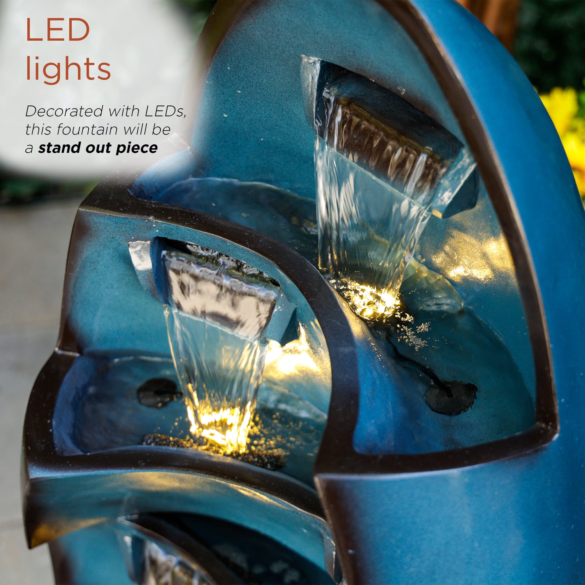 - LED LIGHTING EFFECT: The built-in LED lights illuminate the cascading water, enhancing the visual appeal of the fountain at night. The soft glow adds a mesmerizing effect, creating a serene atmosphere perfect for evening relaxation or gatherings.