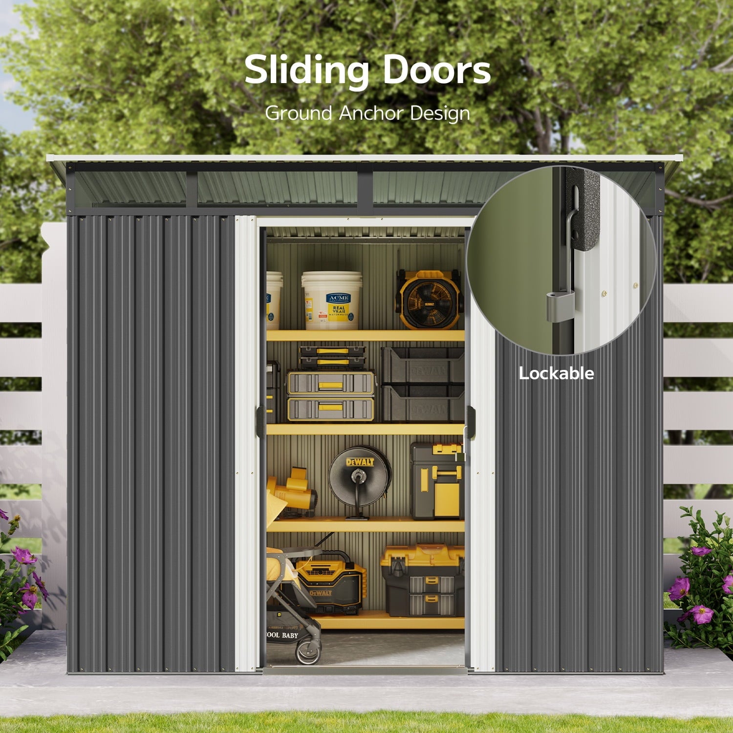 This Asofer 8’x6′ multifunctional metal garden shed. It provides great storage space for various tools, such as farm equipment, lawn mowers, gardening tools, snow blowers, shovels, pesticides, etc. With the sliding door design, it is a breeze to get in and out, and the wide door makes it convenient to get in and out without taking up space. The lockable door can effectively prevent unauthorized access, ensuring the safety of your stored items. Don’t let clutter occupy your living space. Let our outdoor storage shed help you, so that you can buy with confidence and enjoy easy use.