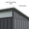 🌼【Sturdy and durable】This metal storage shed is made of thick galvanized steel plates, and the roof is tilted at 45 degrees for easy drainage. It is equipped with anti-UV and waterproof coatings, and the top corner protection caps reinforce the roof, making it waterproof, rust-proof, and UV-resistant, so it can easily cope with various harsh weather conditions.