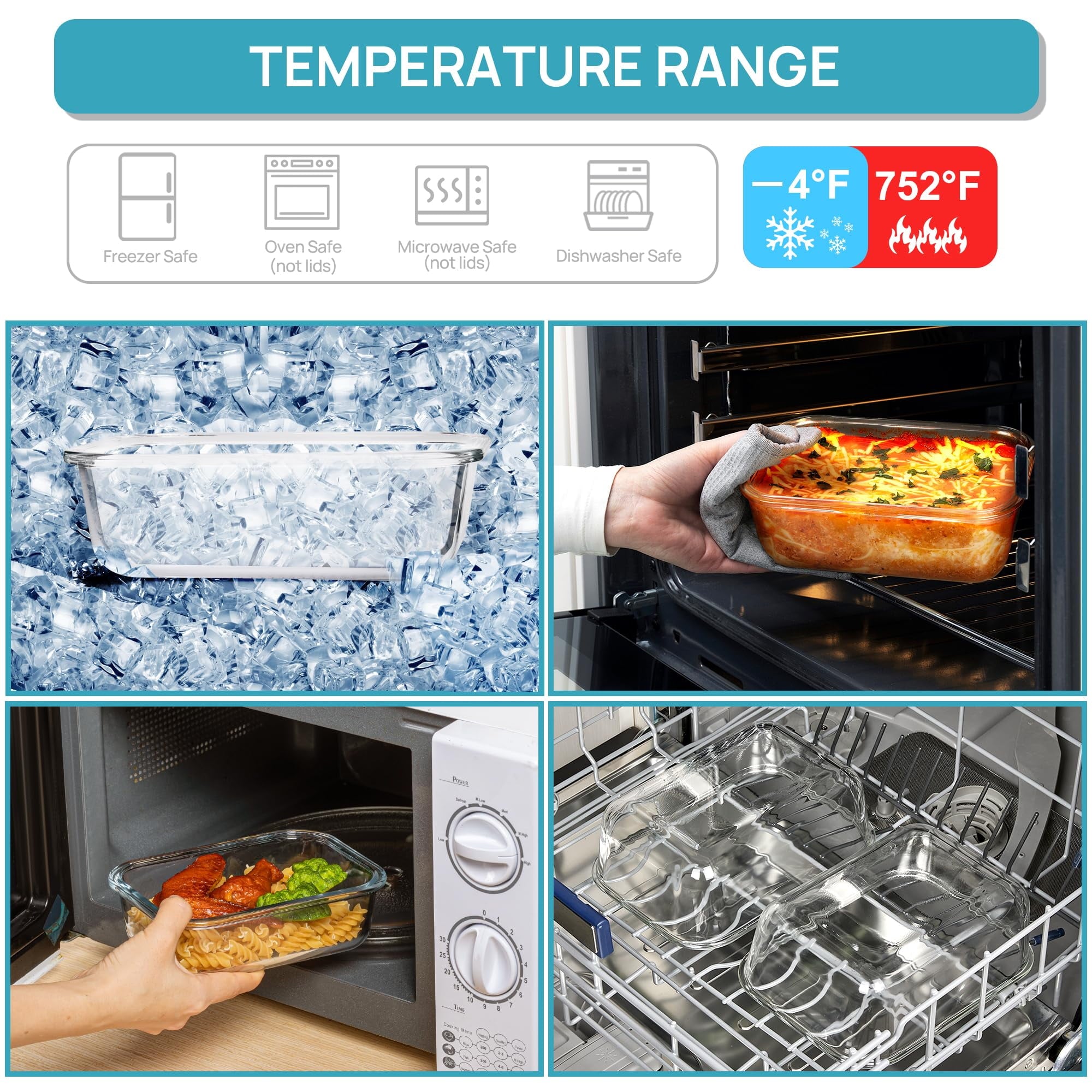 - All the containers are refrigerator, freezer, and microwave safe. Remove the lid and use the reusable container (under 5 min, under 700 Watts, *at least half-full container) to heat food. Place in the refrigerator with lid for freezing soups or stocks. These lunch containers resist stains and are dishwasher safe for easy cleaning.
