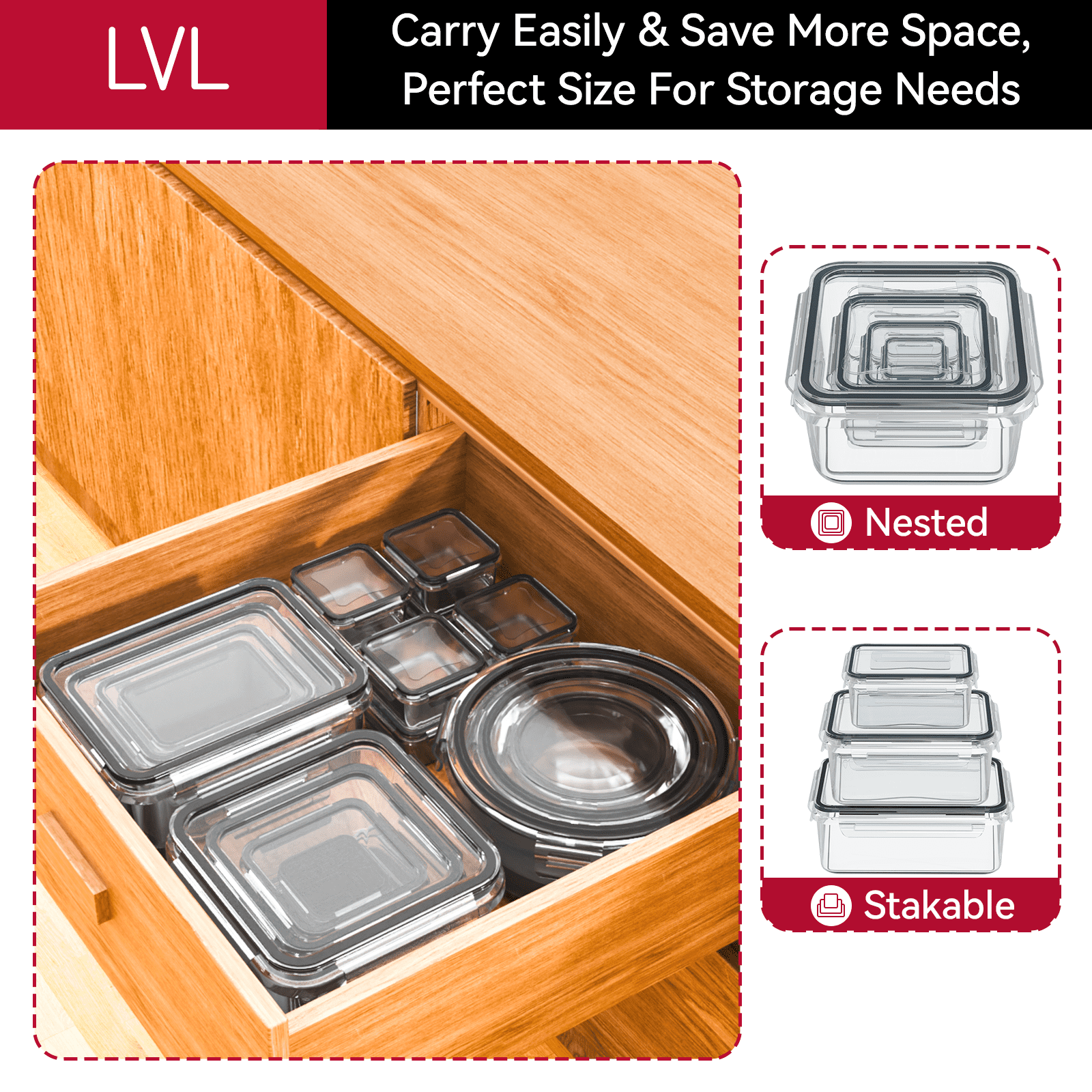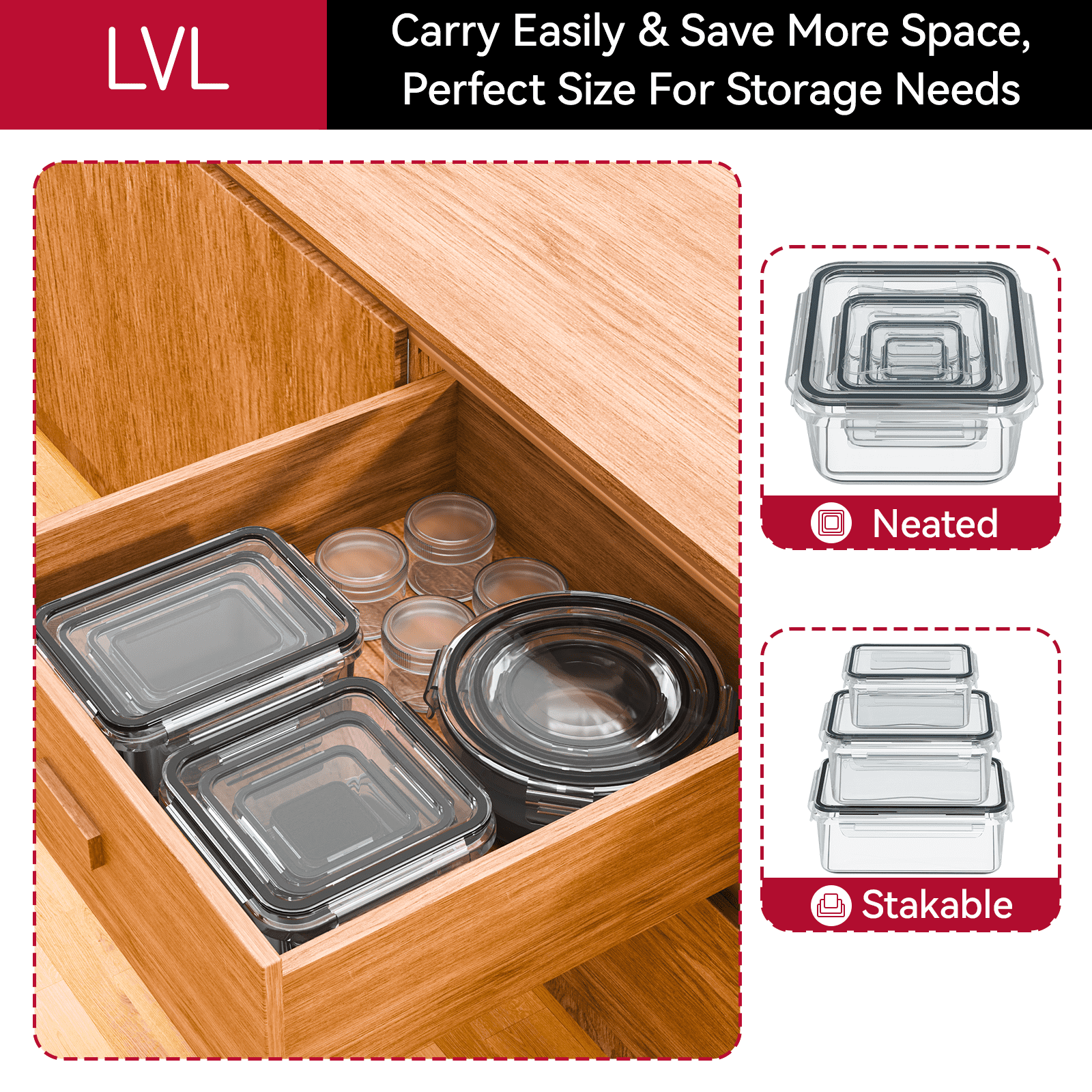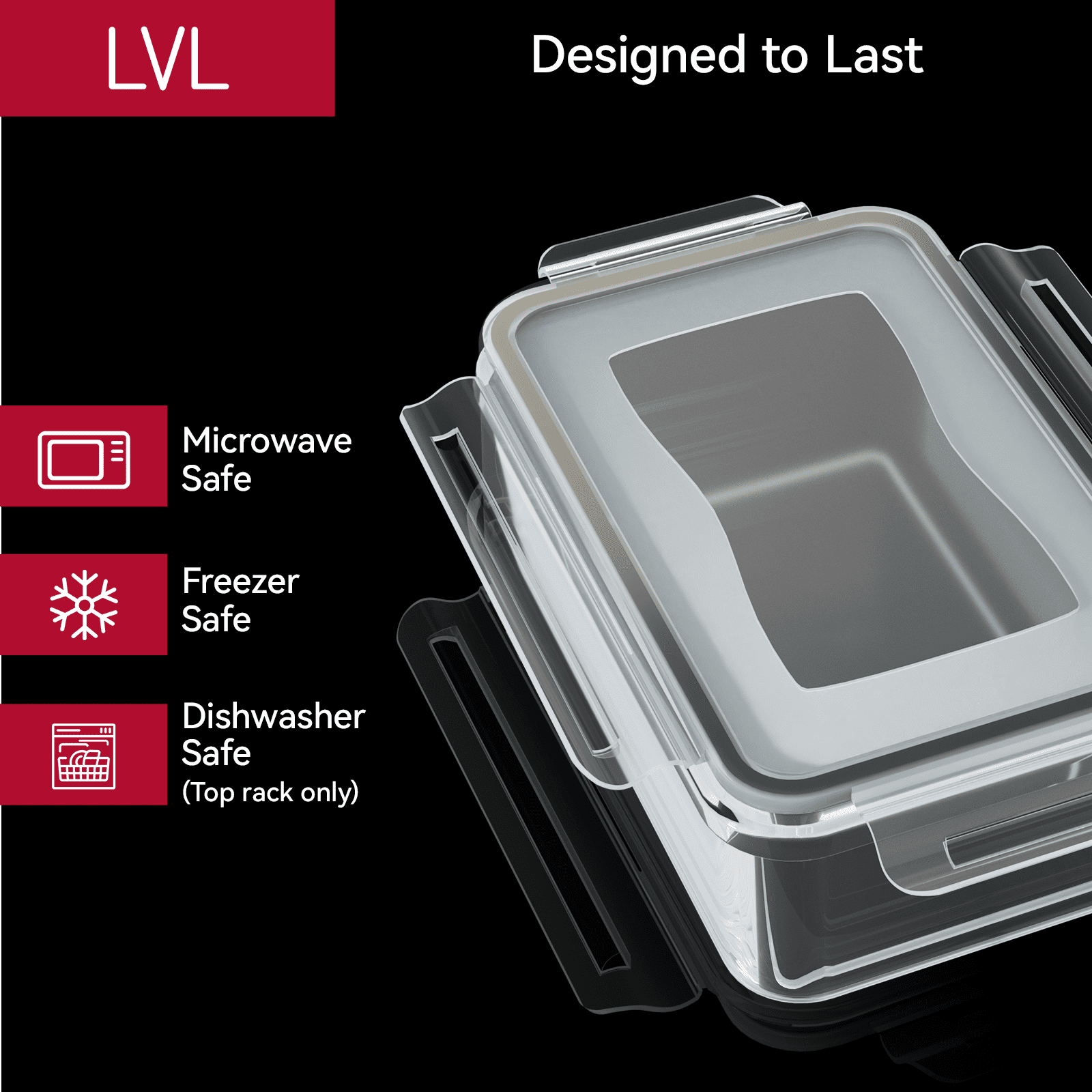 - Thanks to a leakproof 4-hinge snap-lock system, our food containers with lids form an airtight and secure seal for storage. Carry soups and sauces in your bag without worrying about spills. Store food in your fridge without smells leaking. With our plastic storage containers, your food stays fresh for longer. Stacks neatly in the pantry or fridge.