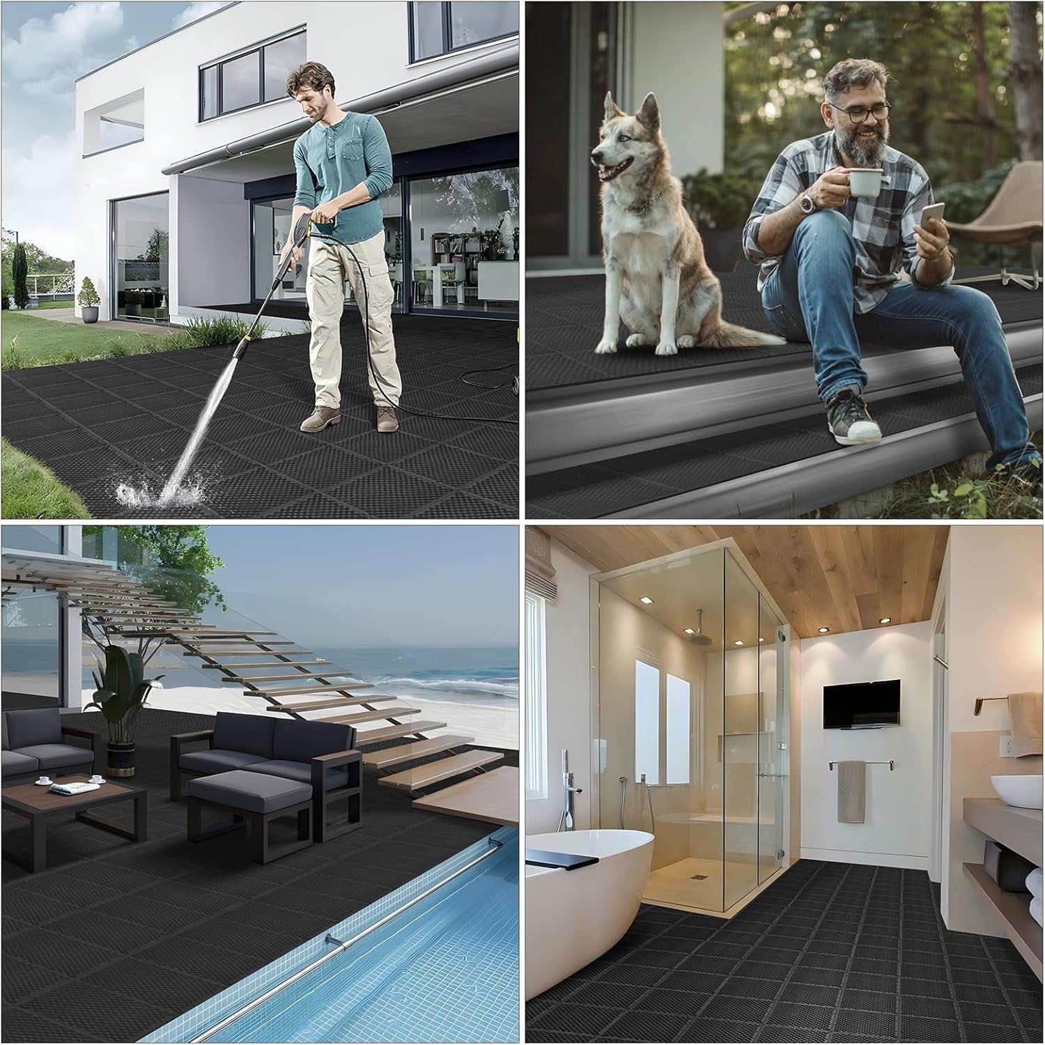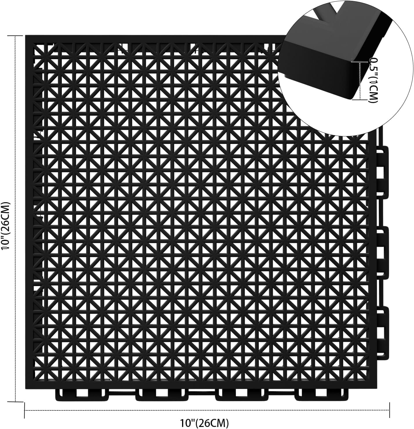 50 PCS Modular Interlocking Cushion Interlocking Floor Tiles with Hole Drainage Tiles Mat 10" x 10" Non Slip Pool Deck Mat Outdoor for Drain Deck Pool Patio Shower Kitchen Balcony(Black)
