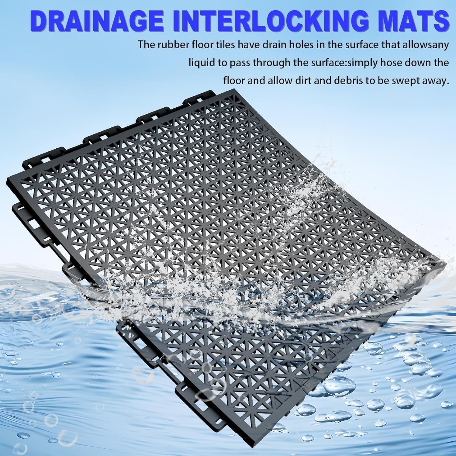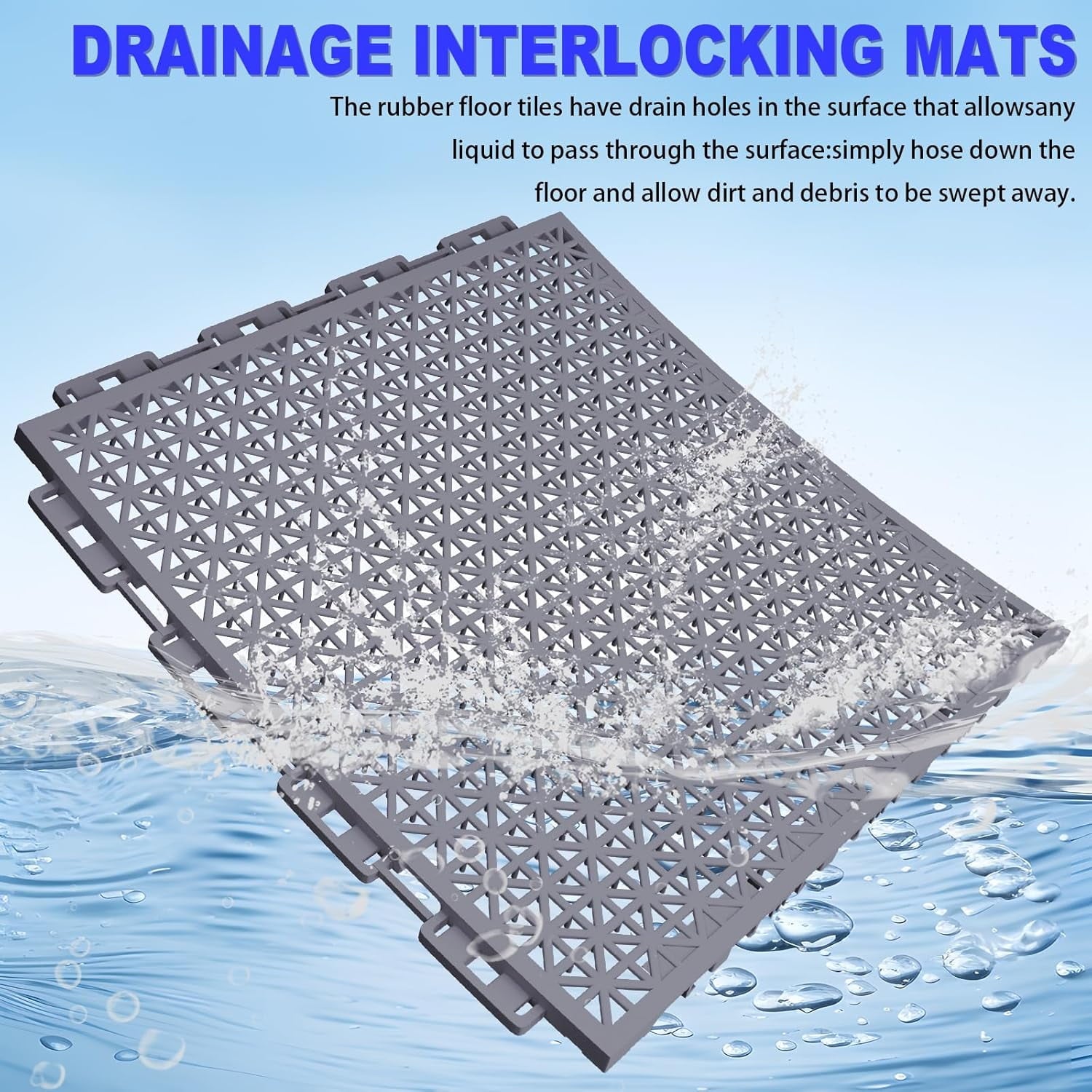 • Safety and Non-slip: This anti-slip splicing waterproof pad has good grip, anti-slip, good drainage at the bottom, and the interlocking tile on the front side of the floor has a non-slip bump design, so that you will not slip when walking on the floor mat, relieving your foot fatigue, it not only ensures safety, but also takes comfort into account