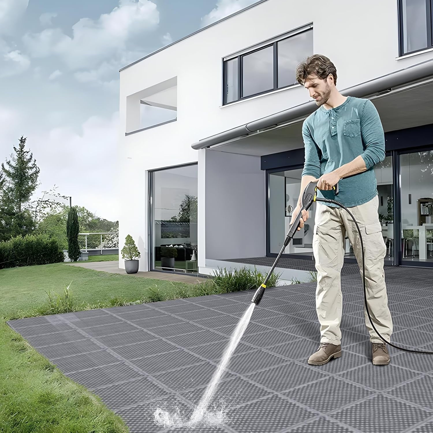 • Easy To Clean: The interlocking floor deck mat with drainage holes is drained, dust and dirt will fall directly into the ground through these holes, you only need to rinse with water, saving time and effort