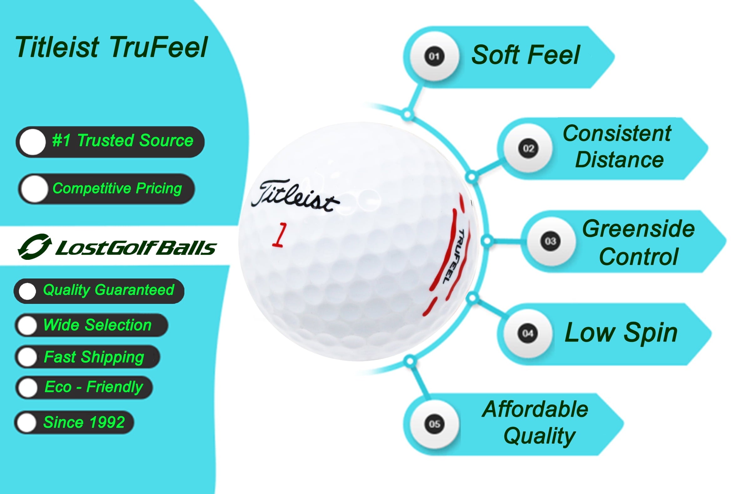 Every golfer knows the pure, effortless feeling of a well-struck golf shot. At impact, you immediately know you’ve hit the ball to the best of your ability. Ultimately, though, you want to be rewarded for your best swings, and it’s how the golf ball performs after a good swing that builds trust between the player and the golf ball. You want your golf ball to feel soft, but you also want performance and consistency. Look no further than TruFeel to deliver that trust, because it’s a Titleist.