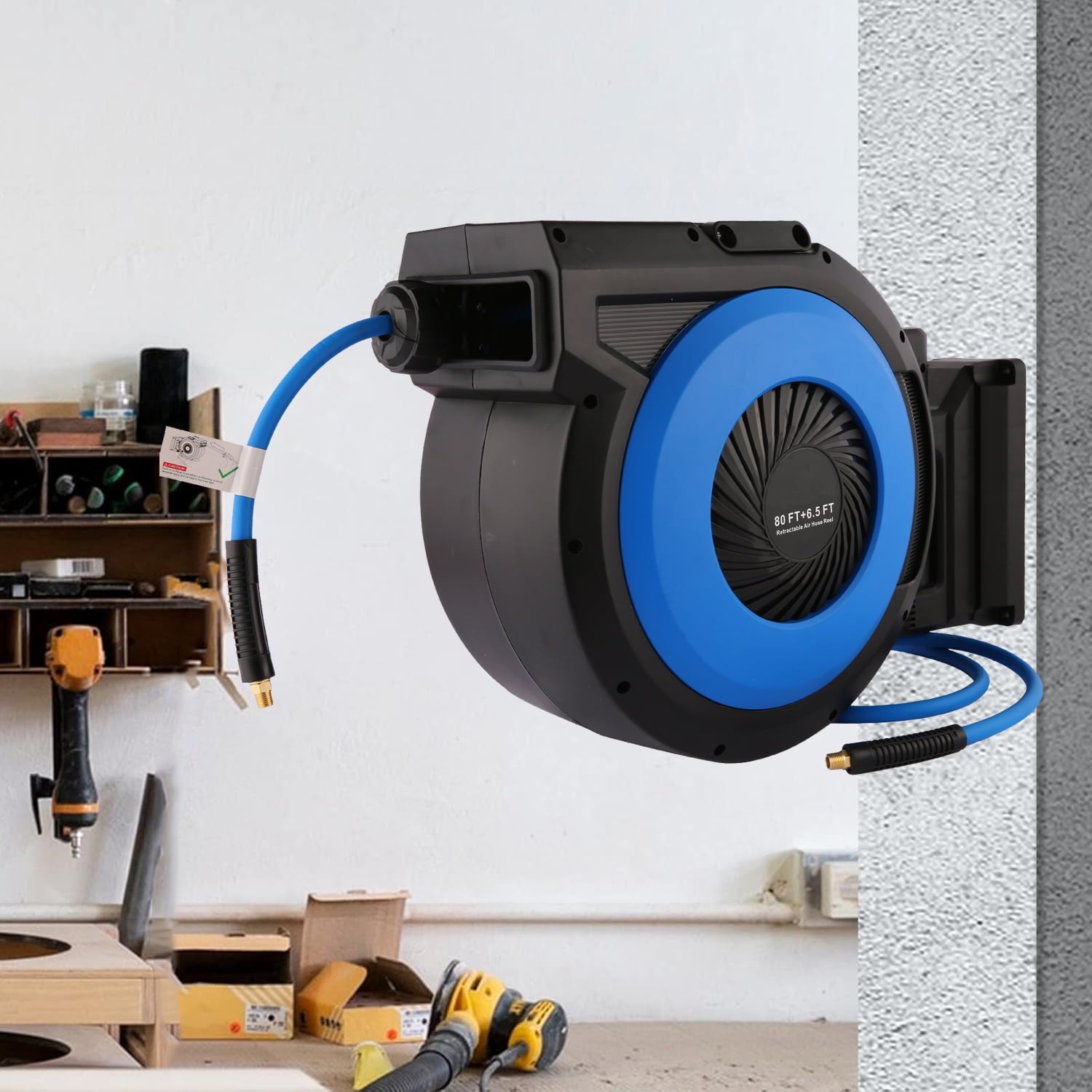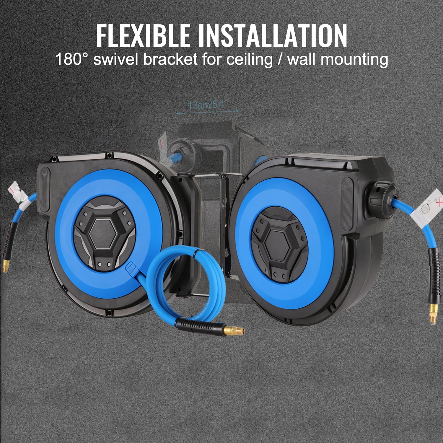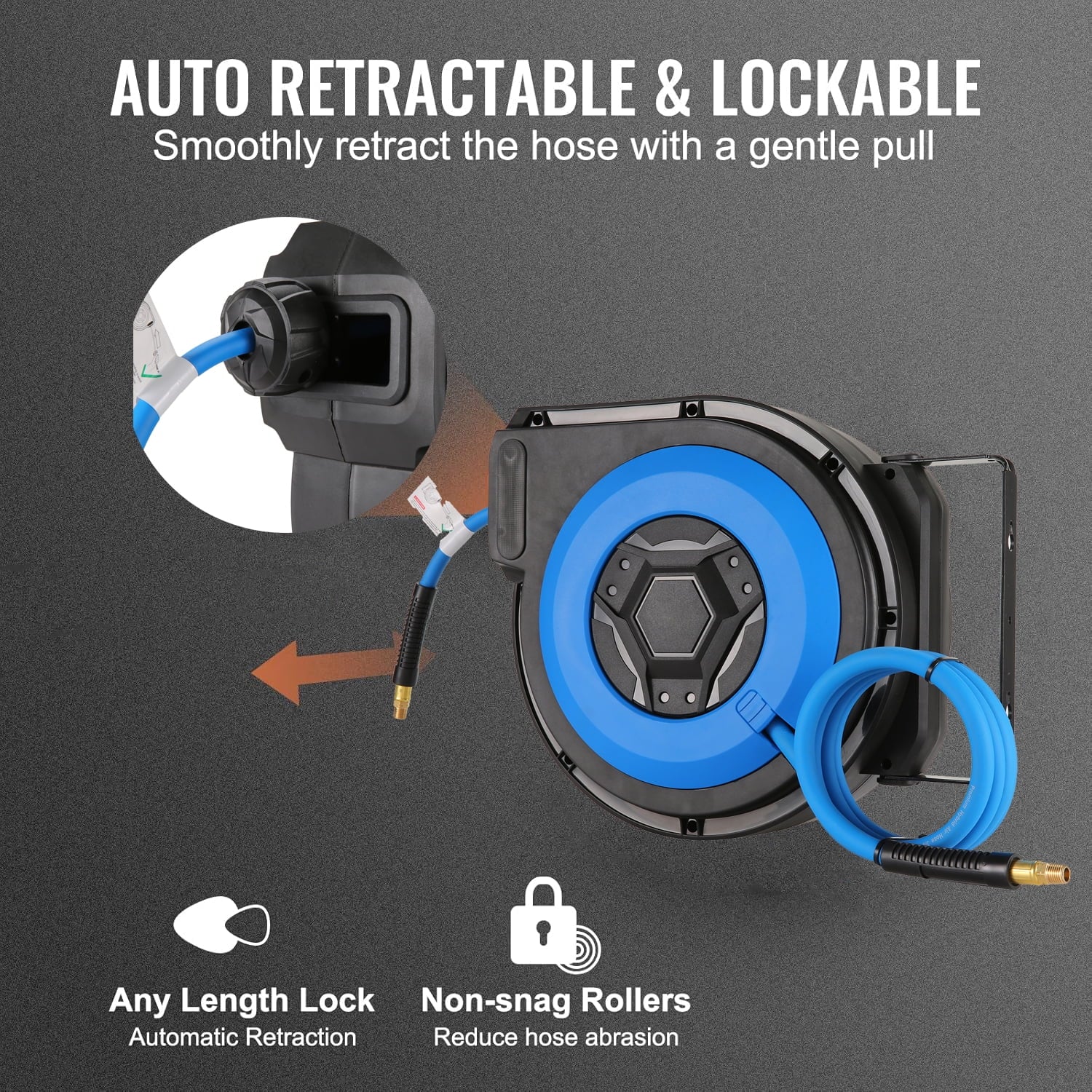 【Automatic Rewind】Simply give the air hose a gentle tug, and the air compressor hose reel will retract effortlessly, eliminating tangled hoses.