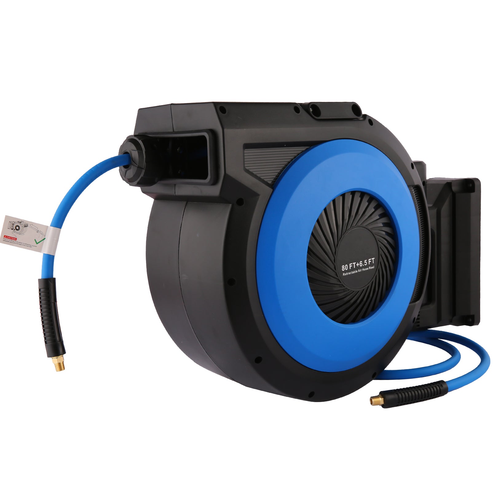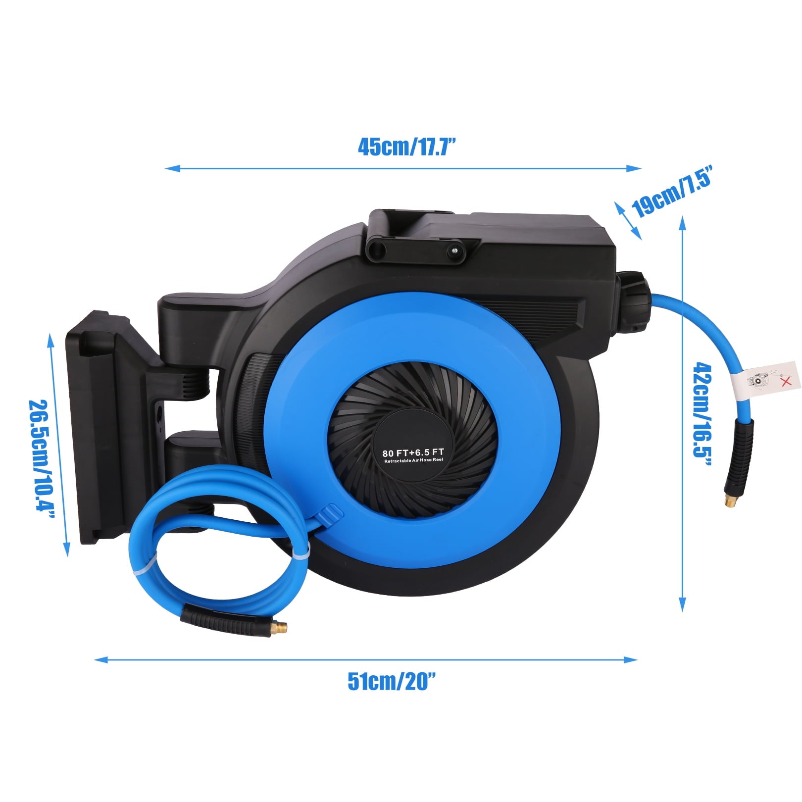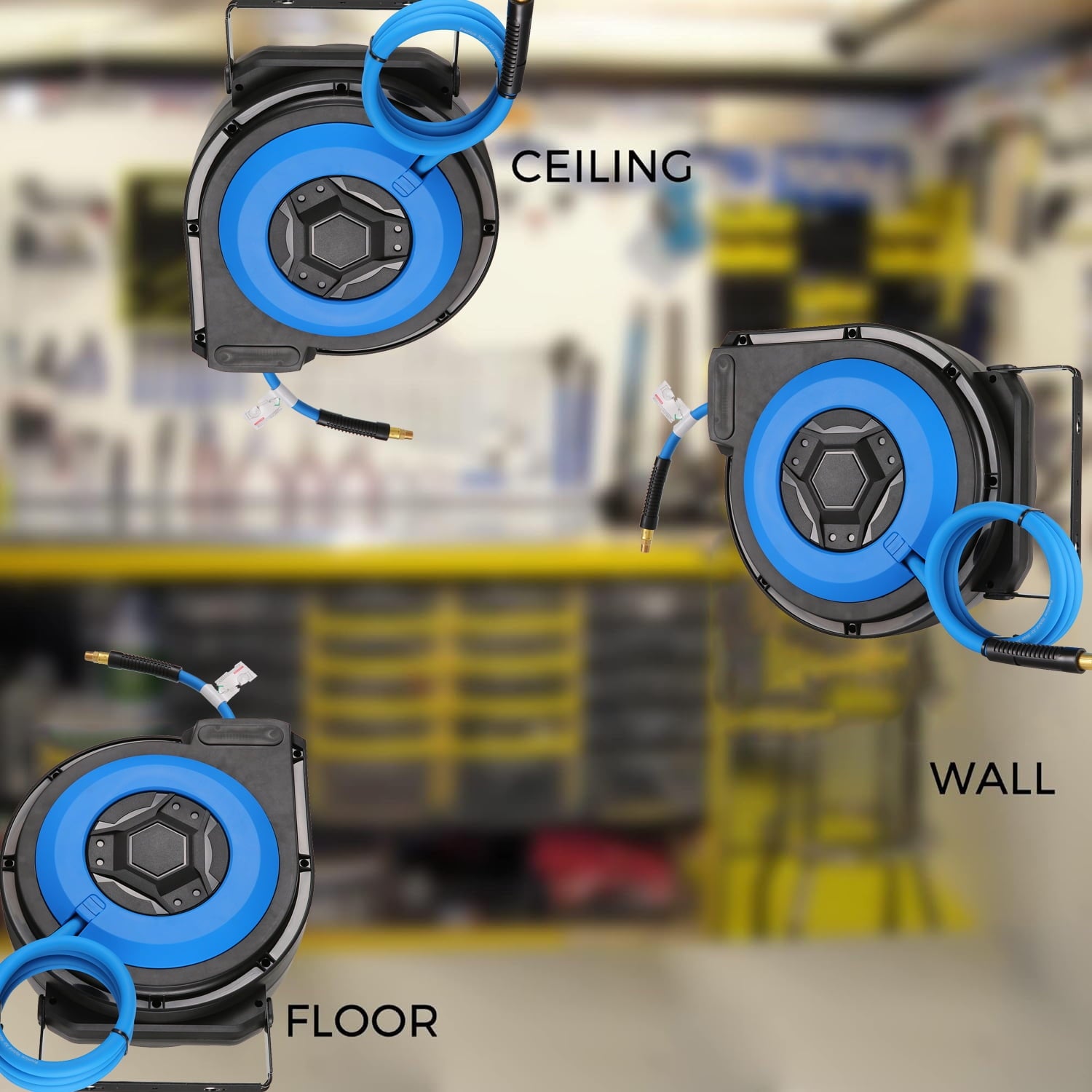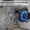 - 【Firm and Durable Enclosed Housing】The air compressor hose reel retractable is constructed with an impact-resistant, lightweight and durable polypropylene housing. Superior-quality assurance ensures that it will be securely fastened to your home’s ceilings or walls and is virtually indestructible.