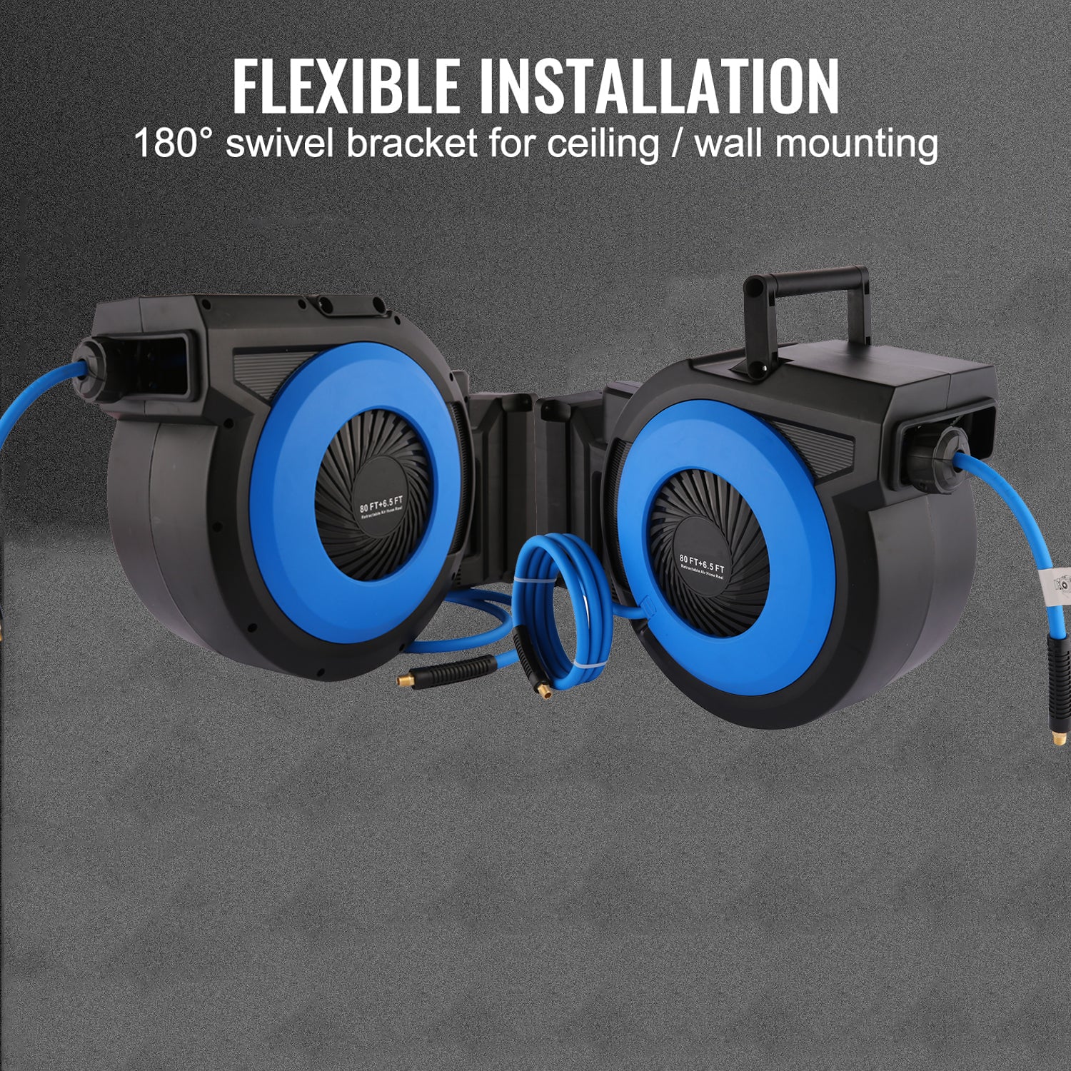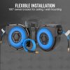 - 【180°Swivel Bracket】The swivel bracket can be rotated 180° in the working direction, bringing you a comfortable stretching experience and a more comprehensive range of use. Air hose on reel can be mounted on the wall or ceiling easily with a separate bracket.