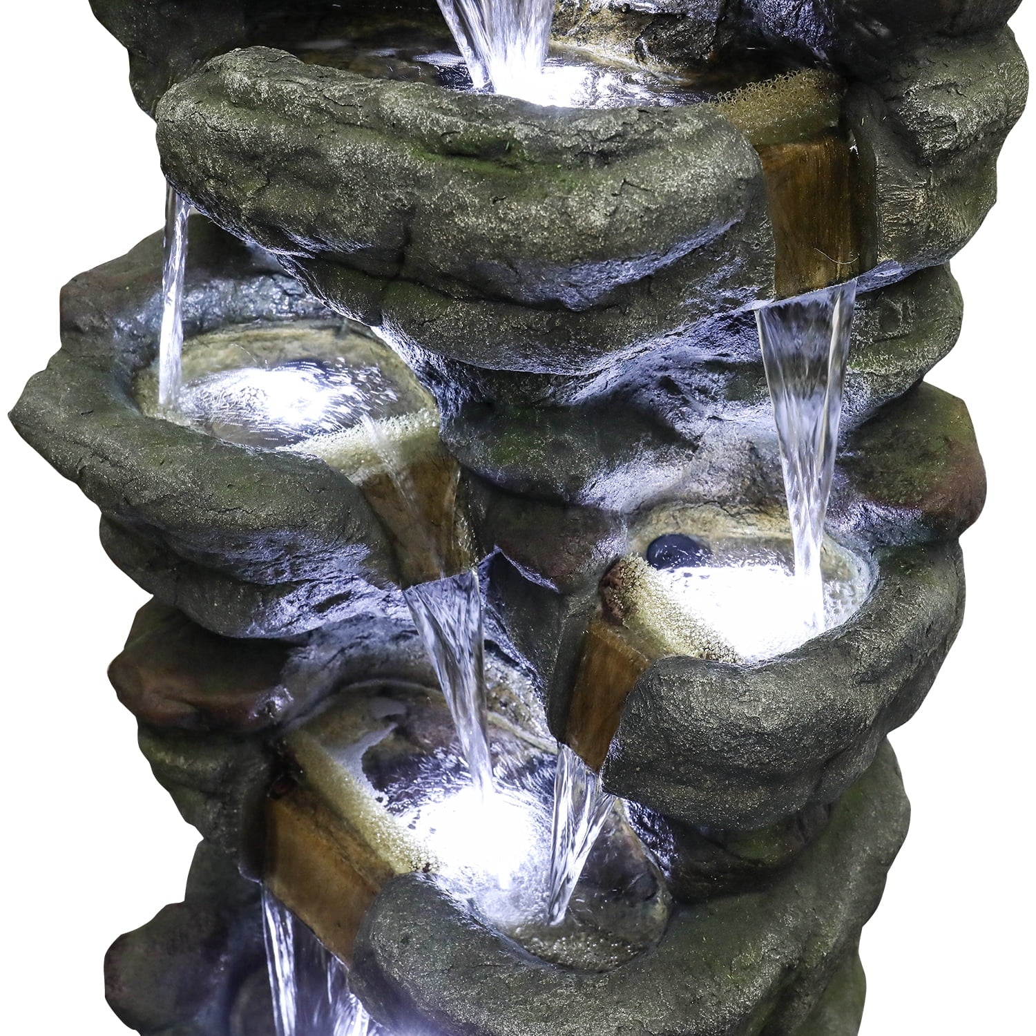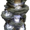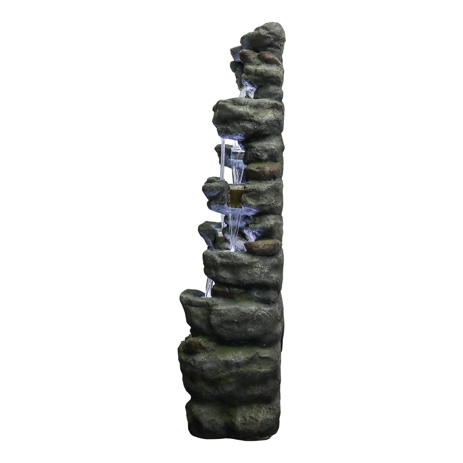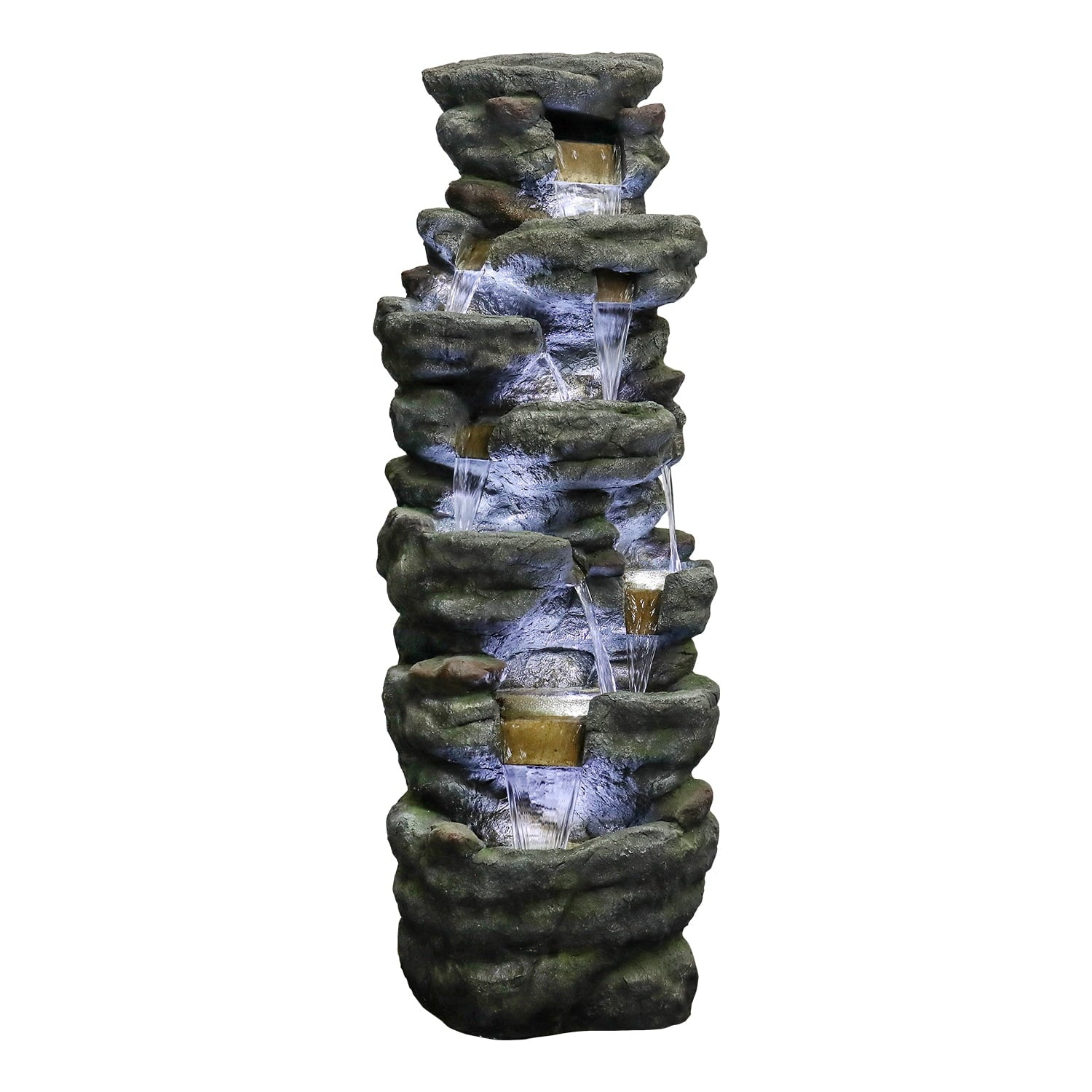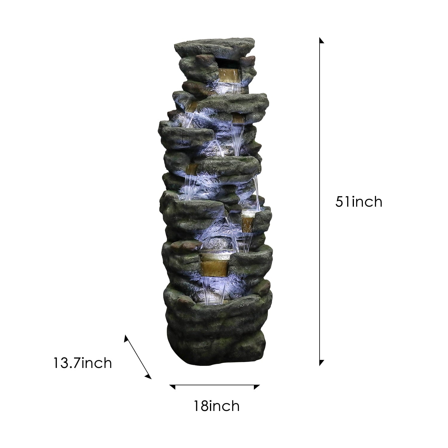 51″ H Outdoor Water Fountain – 7-Tiers Rock Waterfall Fountain with LED Lights for Home Garden Decor