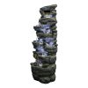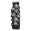 51" H Outdoor Water Fountain - 7-Tiers Rock Waterfall Fountain with LED Lights for Home Garden Decor
