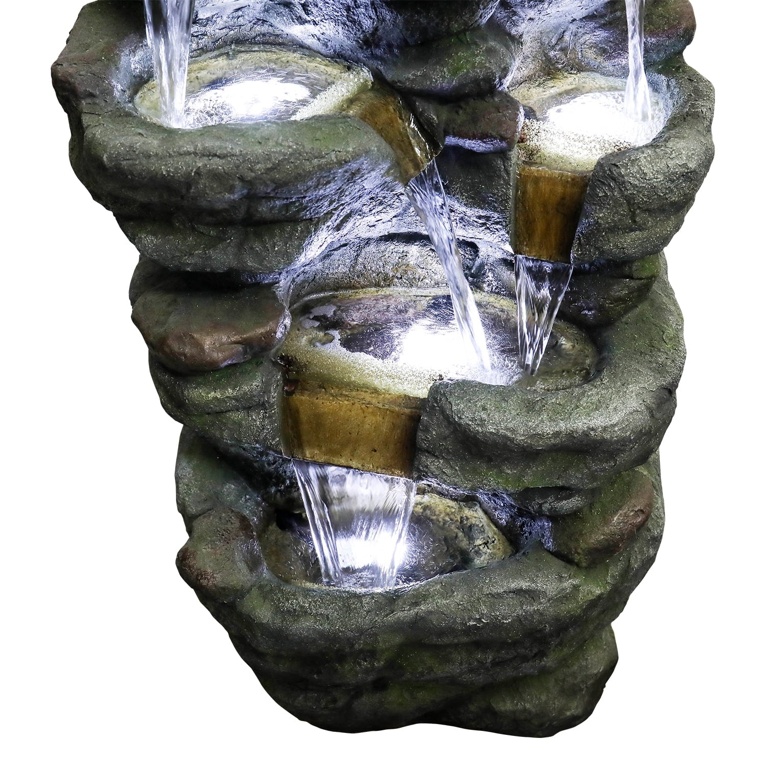 • Water trickles from each tier to imitate the sounds of a real waterfall. Realistic rock-shape brings a touch of natural beauty to your space.