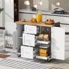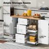 - 【Mobile & Stationary Kitchen Island】Our kitchen island on wheels is designed with 5 360-degree wheels, including two locking wheels to meet your desire to move everywhere smoothly and stabilize. Additionally, we offer five sturdy solid wood cabinet feet as an alternative option if you prefer a stationary cabinet setup.