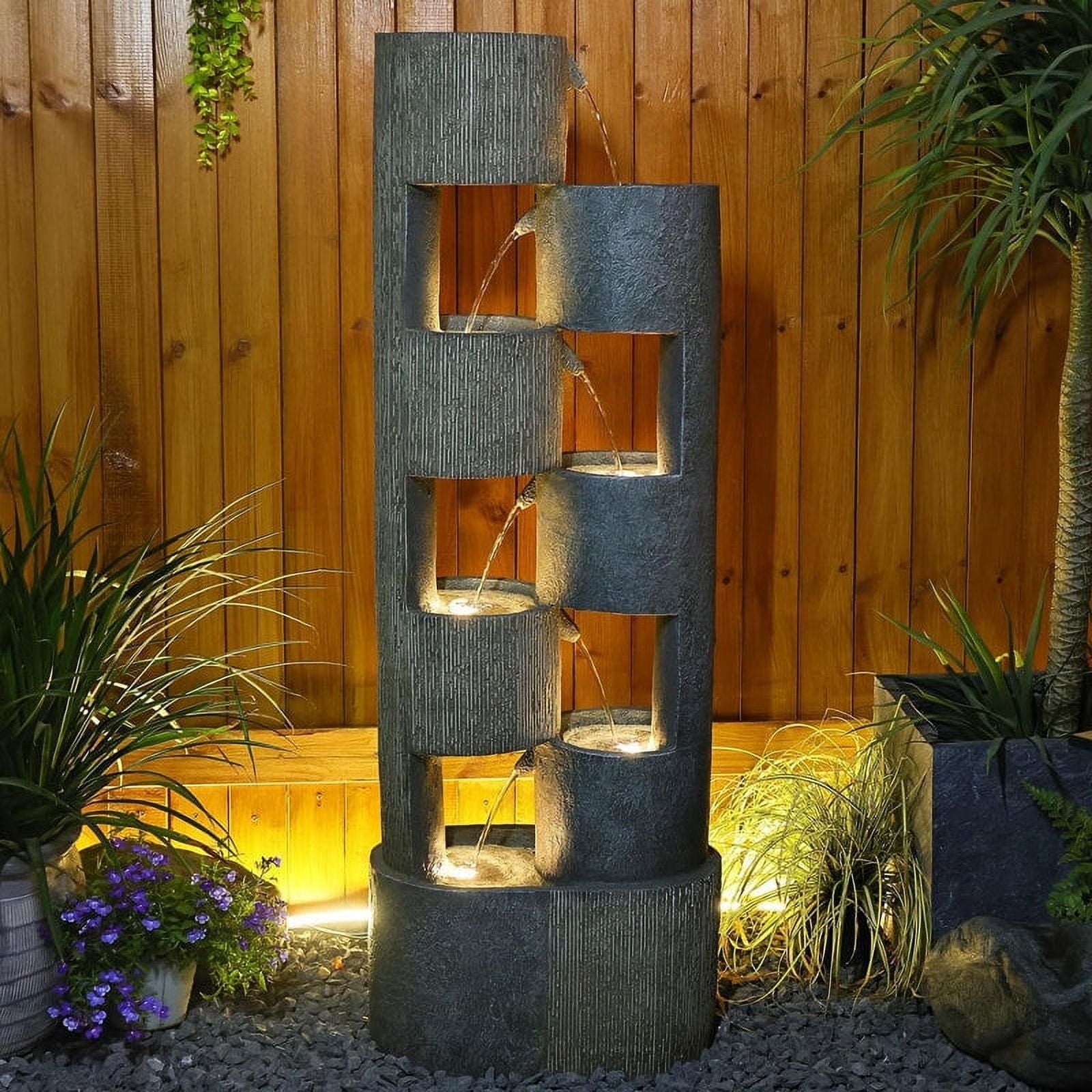 Introducing our exquisite Outdoor Fountain with Decorative Lighting, meticulously designed to transform your garden into a enchanting retreat. This stylish fountain is not only a sight to behold during the day but also a luminous centerpiece at night, thanks to its vibrant LED lighting. Ideal for adding a touch of luxury and creating a soothing atmosphere in any outdoor space, it promises to be a conversation starter for all who enter your garden. With its easy installation and low maintenance requirements, this decorative fountain is the perfect choice for those seeking both beauty and functionality in their outdoor decor. Elevate your gardening experience today and make every evening a magical one with this must-have garden accessory.