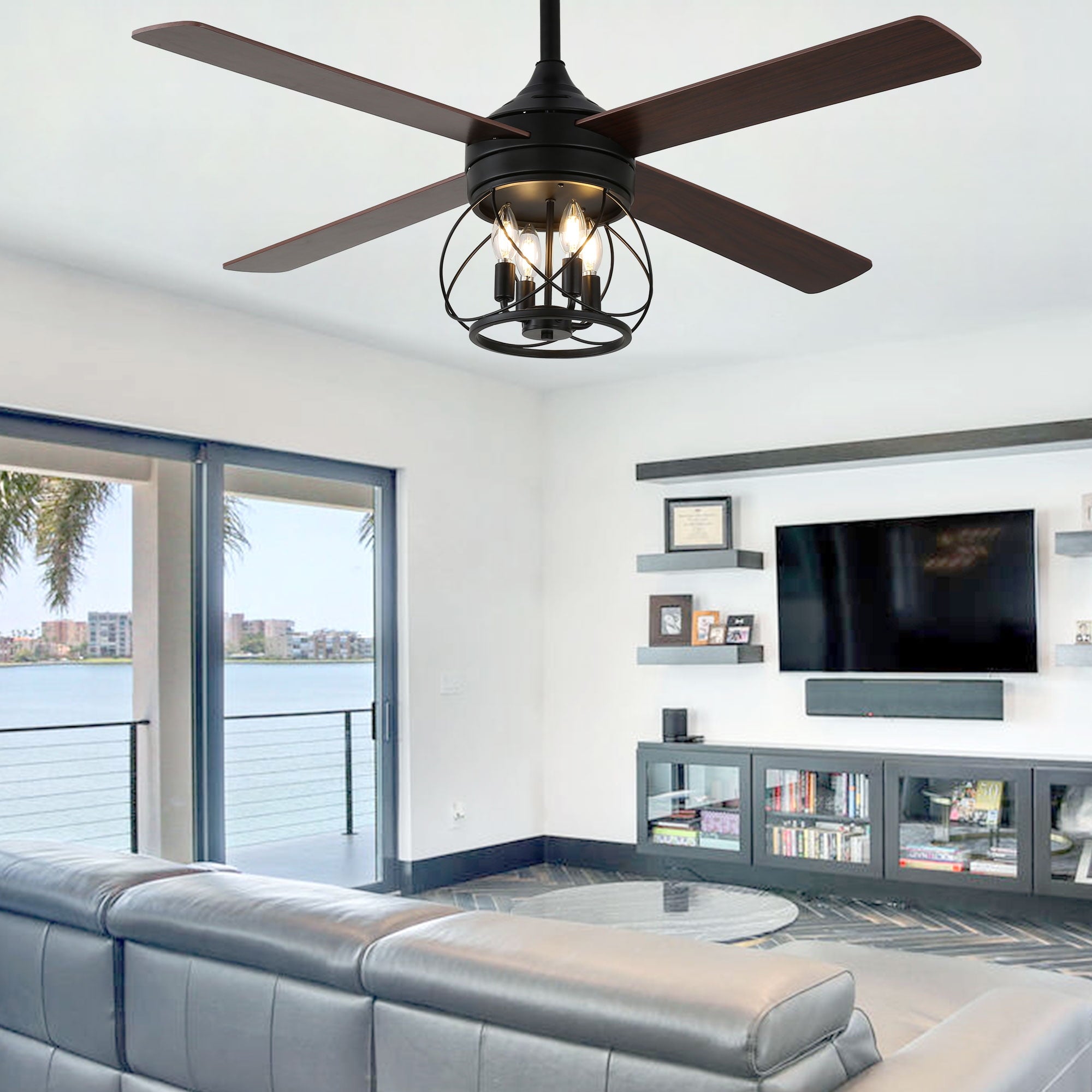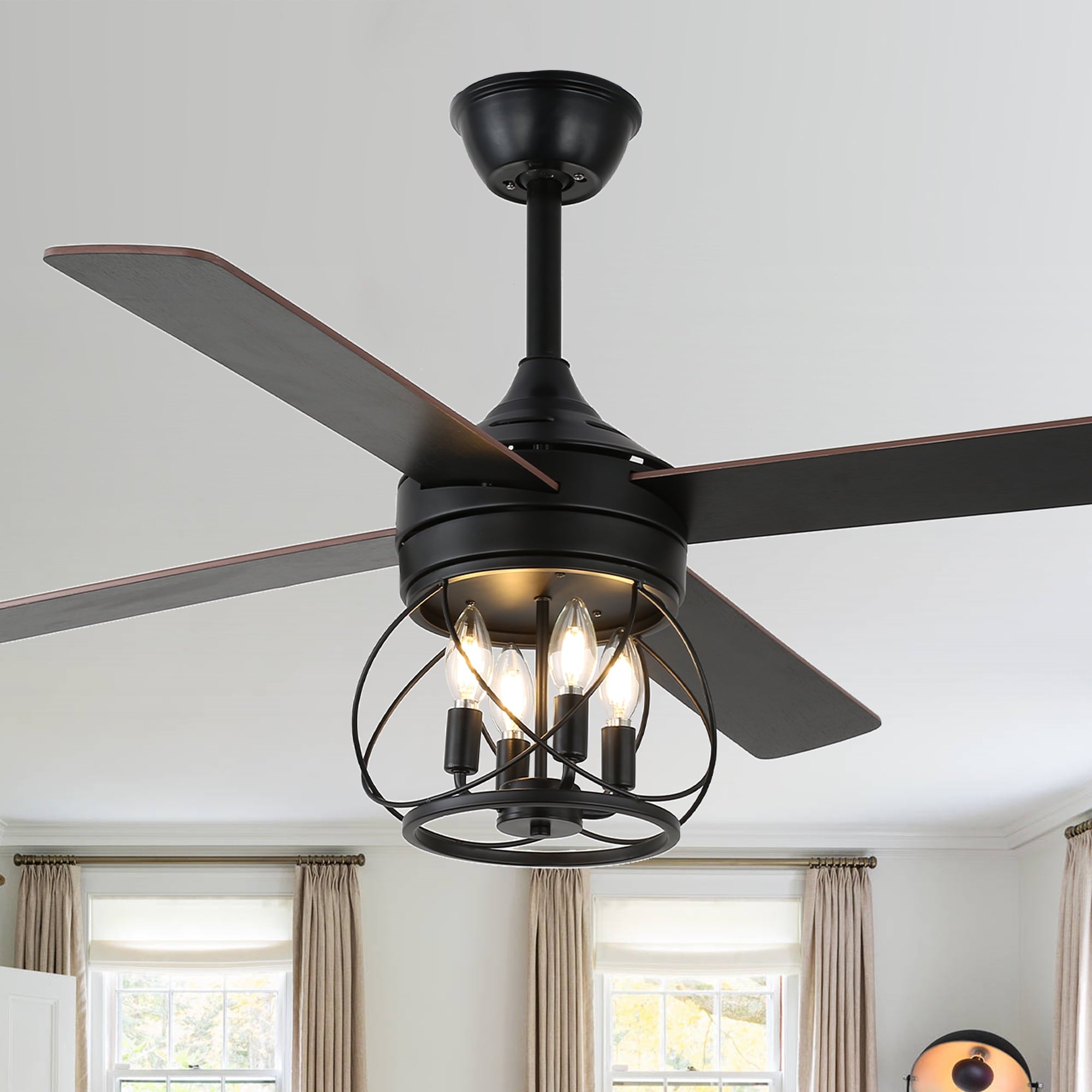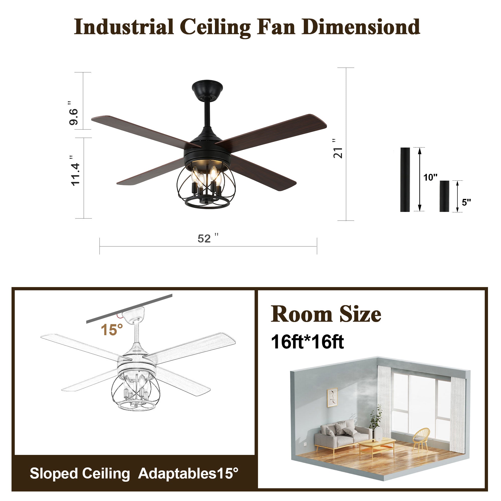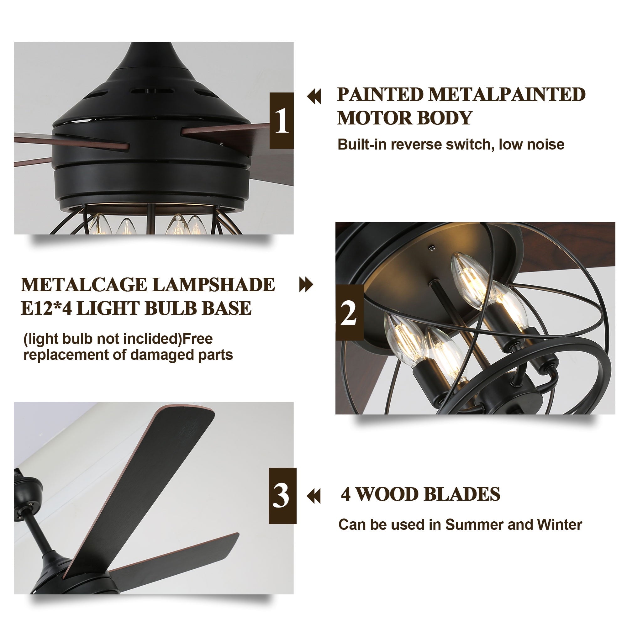 Enhance your space with the installation of this cage-style fan light, a versatile choice that complements a range of interior decoration styles including modern, industrial, and retro themes. Ideal for bedrooms, living rooms, dining rooms, and more, this fan light stands out for its unique cage design that adds a touch of character to any room.