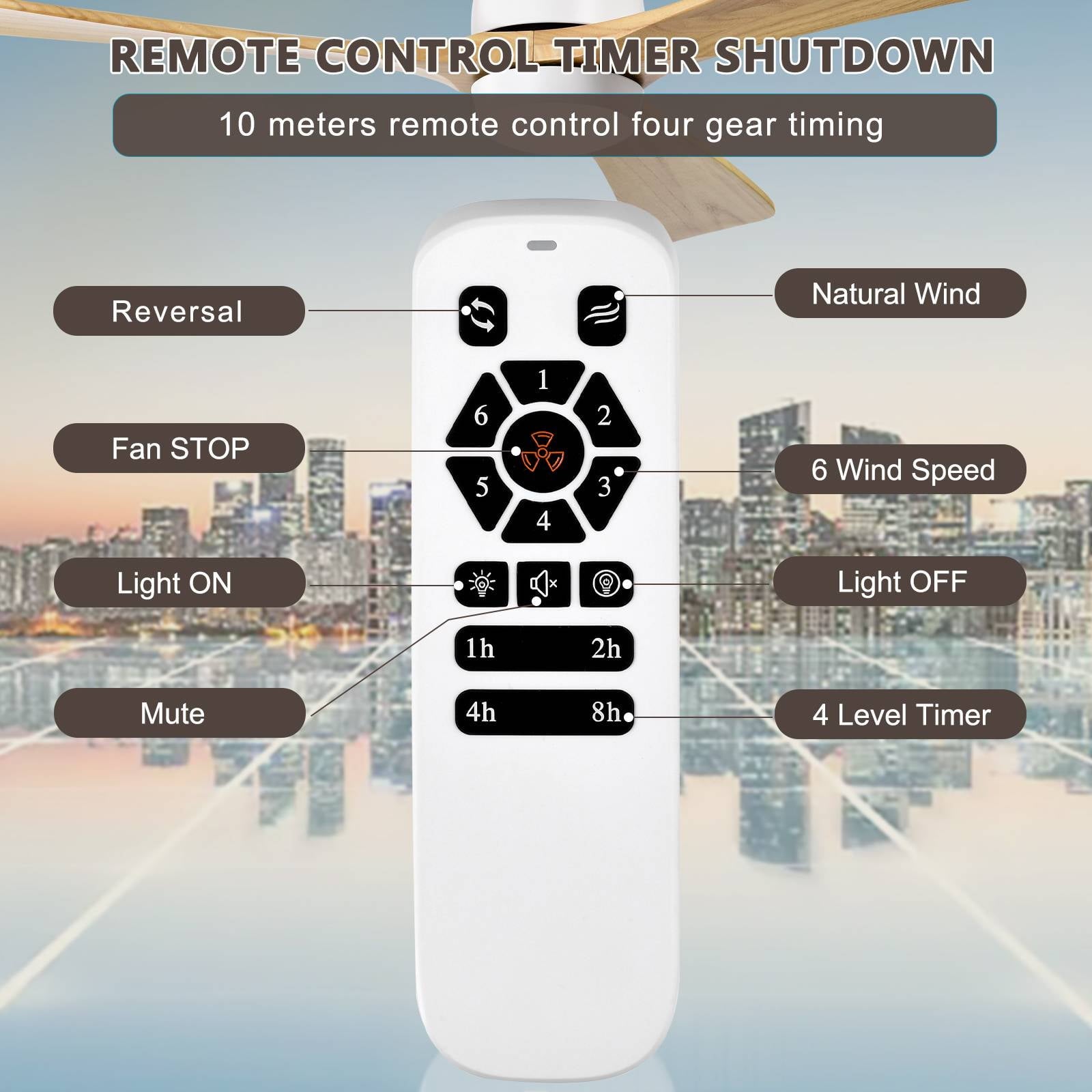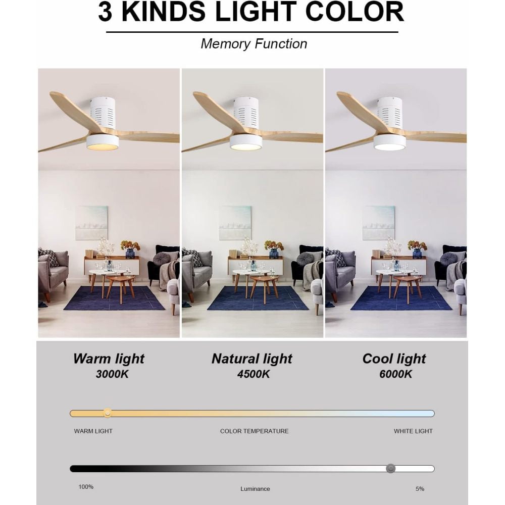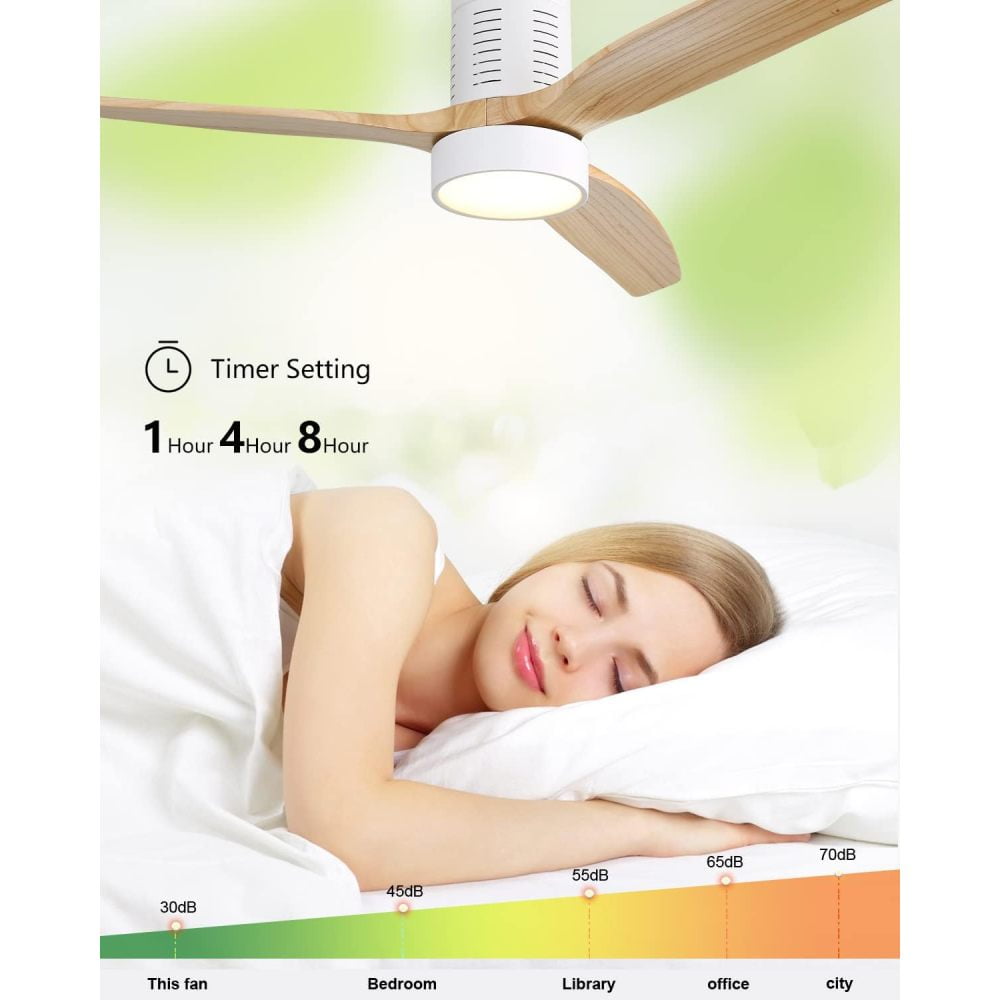 Wood Ceiling Fan: High Quality Ceiling Fan with light are made of carefully selected sycamore wood, integrated in a modern design. This is a modern and industrial style solid wood ceiling fan. Stylish and minimalist raw wood color, match your different decor styles. This is ceiling fan with light suitable for living rooms, offices, bedrooms, kitchens, etc.Multi Function Remote Control: Indoor Ceiling fan with light with a multi-function remote control, support 6 fan speeds, timing setting (1/4/8H) and memory function, all can be controlled by remote control easily. Easily to create a smart home, make your life more convenient and simple.Easy to Install: The Modern ceiling fan with light comes with detailed instructions and install video, to help you easily install it, and ceiling fans is height adjustable via the included 4.98″, 10″, to ensure proper distance from the ceiling and optimize air movement. It can be installed on a pitched ceiling at a max angle of 15 degrees.DC motor, remote control with positive and negative two-way rotation